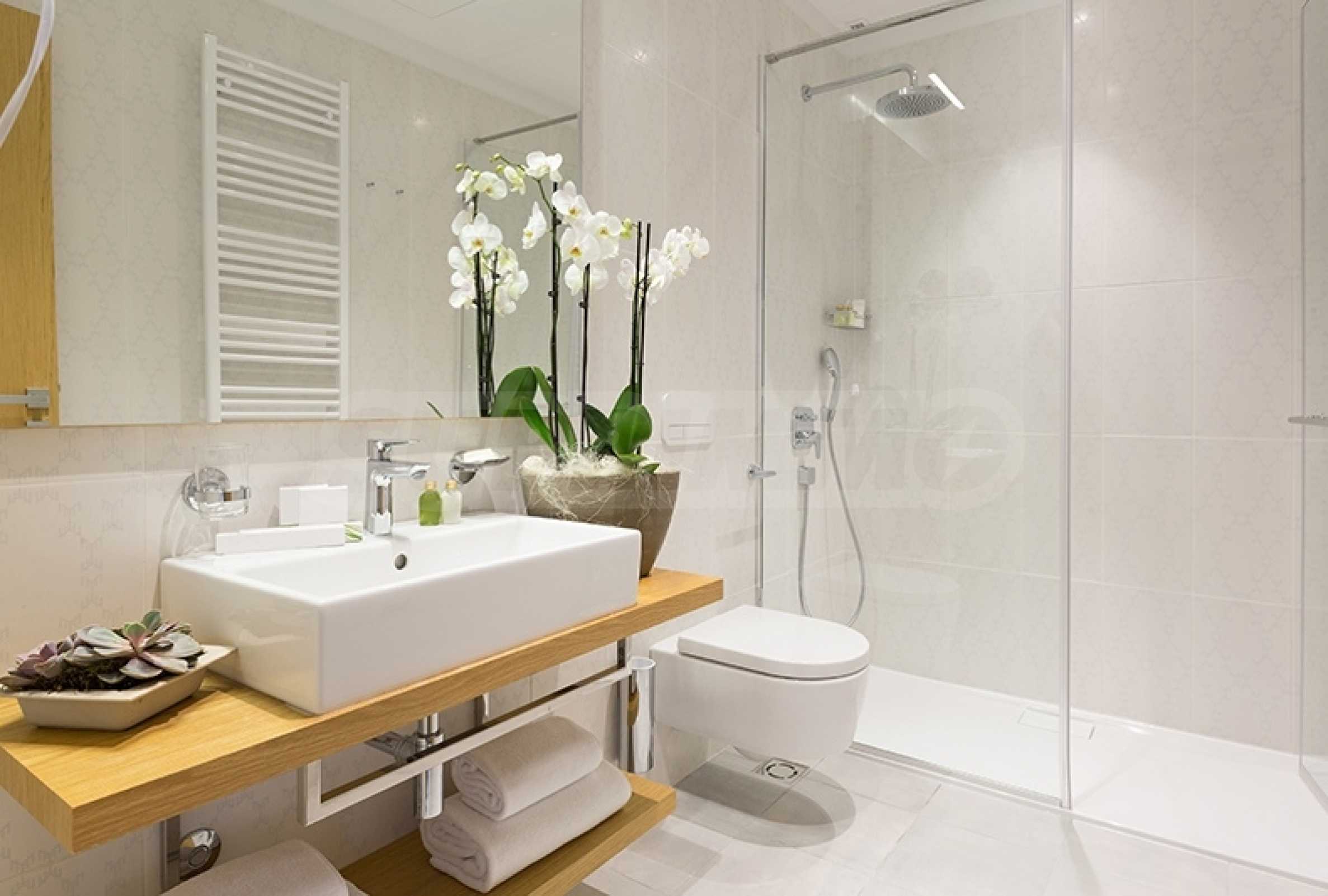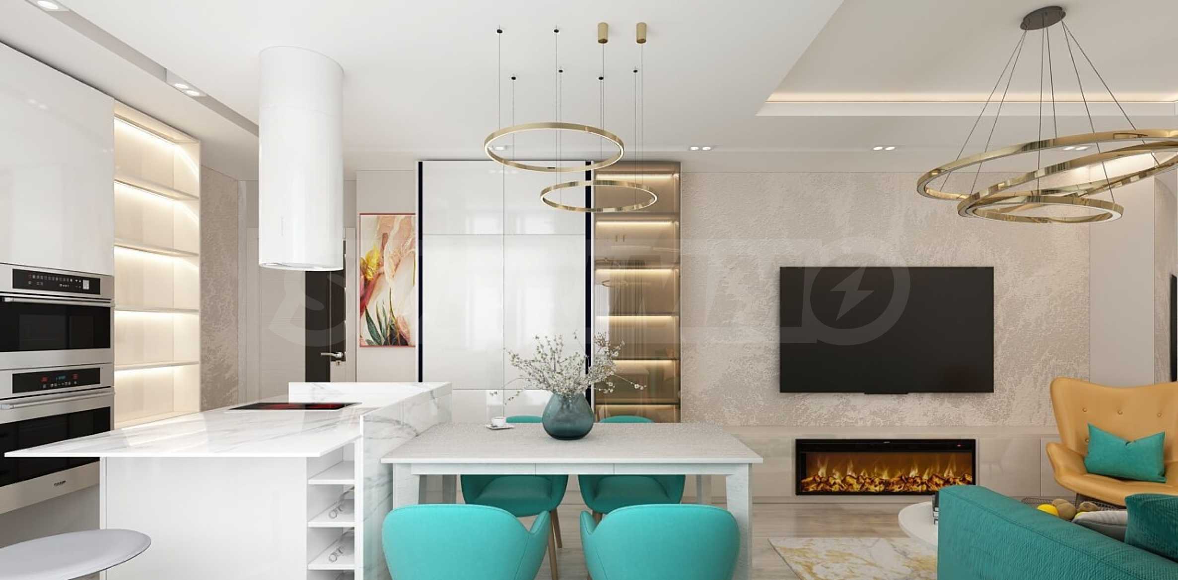 Oferuje apartamenty dwu-, trzy- i czteropokojowe o stopniu wykończenia zgodnym z bułgarskim kodeksem budowlanym, według najlepszych standardów i charakterystyki, z posadzkami z jastrychu cementowego, maszynowo tynkowanymi ścianami i sufitami, instalacjami elektrycznymi i wodno-kanalizacyjnymi oraz wysokiej jakości potrójnymi szybami. Elewacja budynku charakteryzuje się eleganckim wyglądem architektonicznym, spełniającym wymogi współczesnego designu i funkcjonalności, z windą i kontrolowanym dostępem.