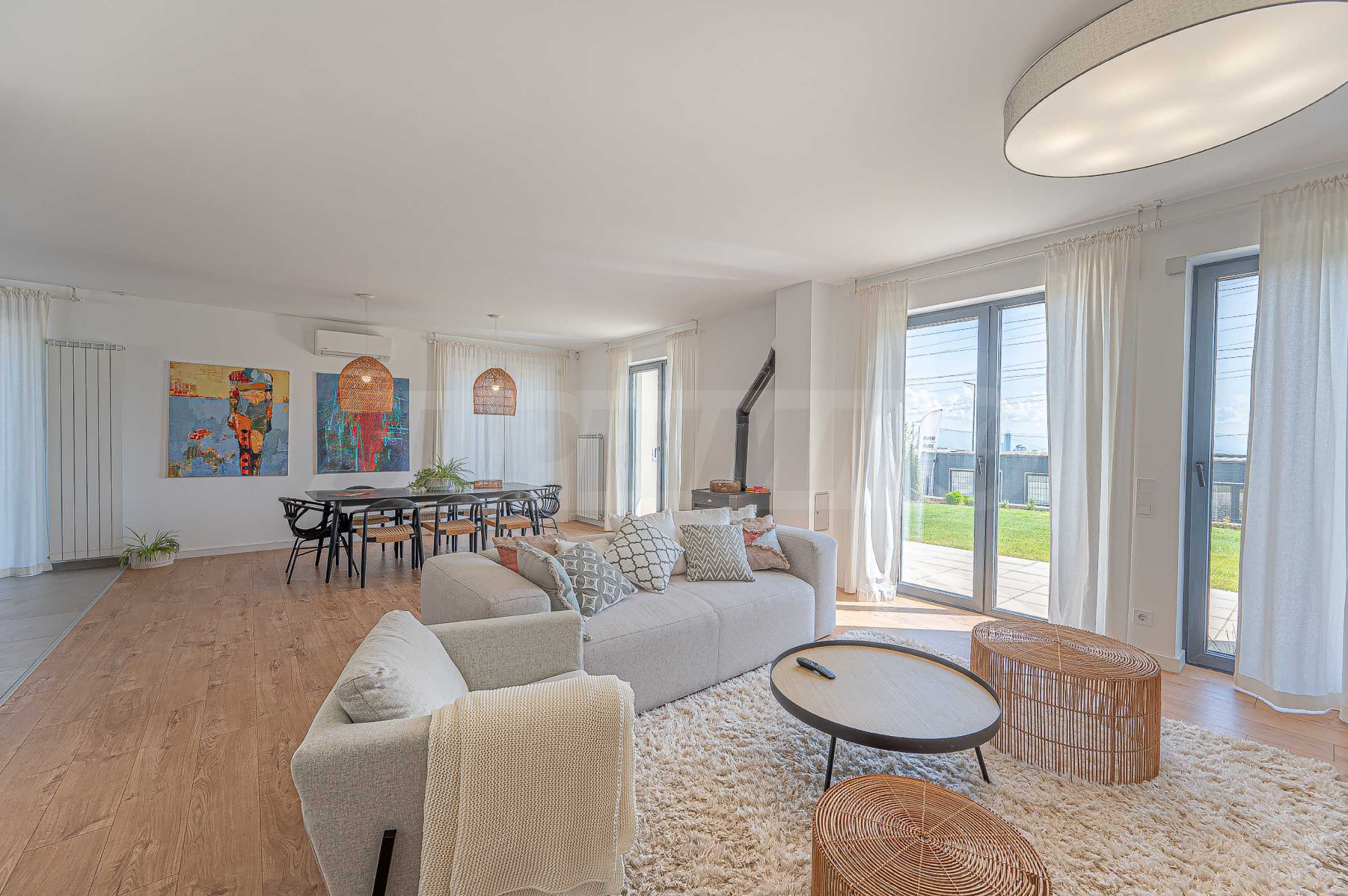Dom posiada ogród o powierzchni 80 metrów kwadratowych z życicą i kwiatami, gdzie Twoje dzieci i zwierzęta mogą się bawić, a Ty możesz odpocząć na werandzie, podziwiając wspaniały widok na miasto.