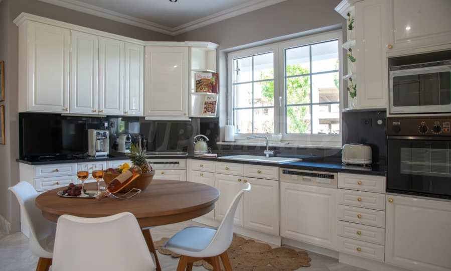 Przyjdź i ciesz się tą wspaniałą posiadłością obejmującą 6 sypialni, 8 łazienek, 2 salony i 2 w pełni wyposażone kuchnie, a także pokój zabaw w półpiwnicy. Pięć z sypialni posiada własną łazienkę, a także strefę relaksu na świeżym powietrzu, taras lub werandę. Na doskonale utrzymanym podwórku usianym różnymi gatunkami drzew, palmami, sosnami, oliwkami, pomarańczami i cytrynami znajdziesz basen, letnią kuchnię z piecem do pizzy i grillem, jadalnię i niezliczone zakątki, z których możesz cieszyć się niesamowite widoki na Morze Egejskie.