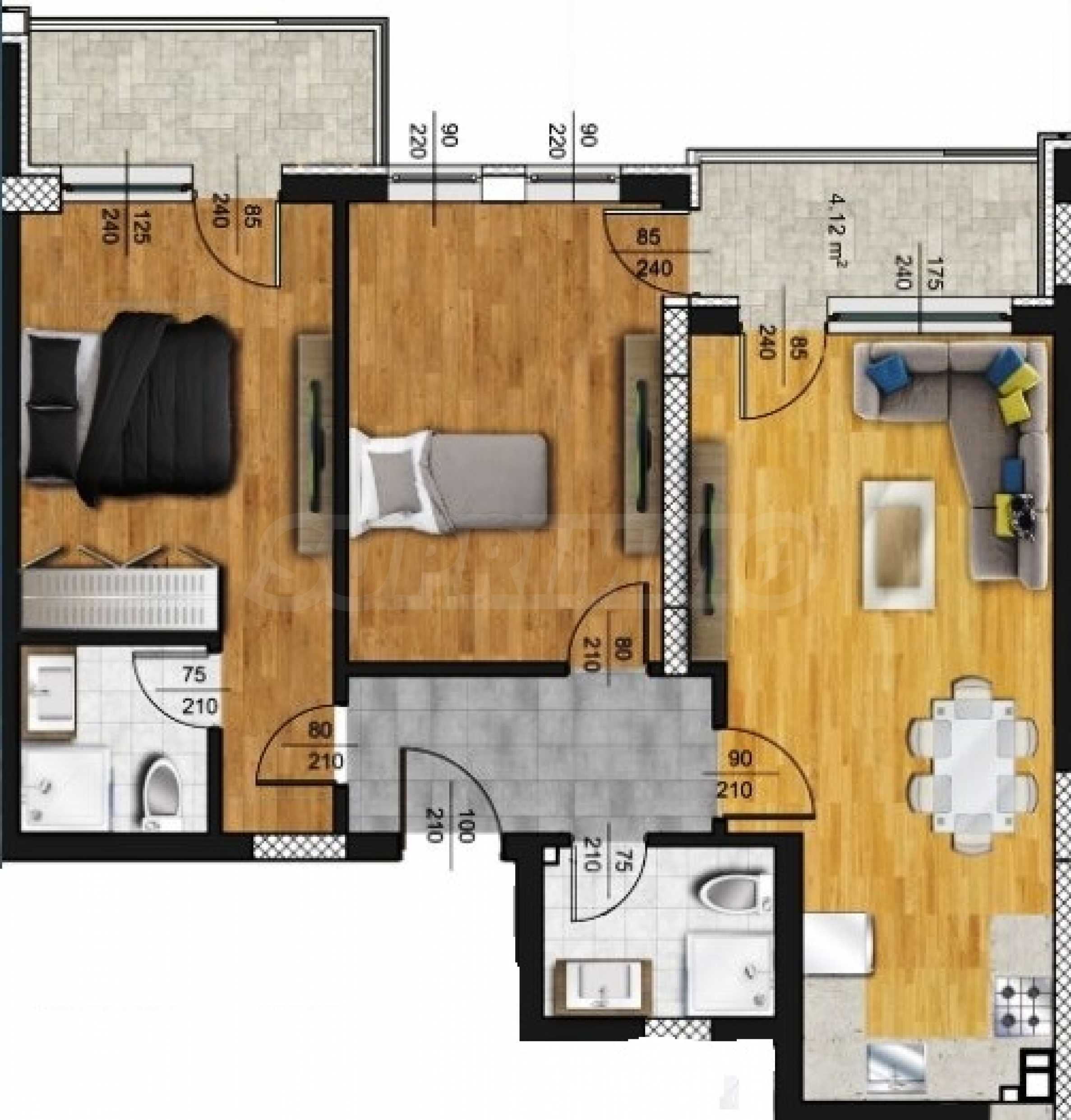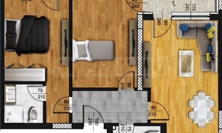Prezentujemy ekskluzywny, nowy, stylowy apartament z dwiema sypialniami w nowoczesnym, strzeżonym kompleksie w dzielnicy Kamenitsa 2. Doskonała lokalizacja, tuż obok Mall Plaza, parku Lauta, głównych bulwarów, a także blisko uniwersytetów, komunikacji miejskiej i ścieżki rowerowej.