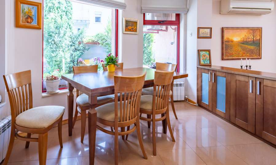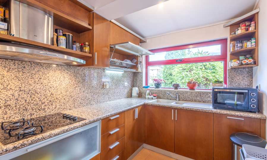 Nieruchomość jest dogodnie położona przy drodze dostępnej przez cały rok, wśród zadbanych i luksusowych domów sąsiadujących. Składa się z trzech kondygnacji oraz piwnicy. Oferowane jest umeblowane, z przytulnym wnętrzem, a wszystkie meble są robione na wymiar, masywne i wliczone w cenę.