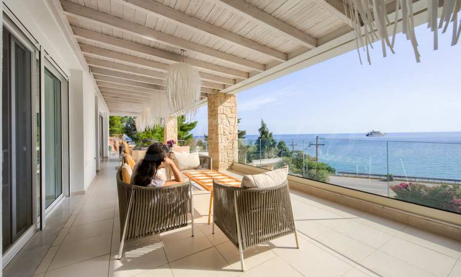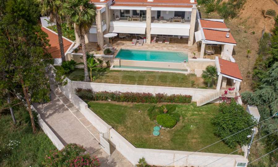 Przedstawiamy tę oszałamiającą nieruchomość, absolutną definicję luksusu, majestatycznie wznoszącą się nad turkusowymi wodami Morza Egejskiego.