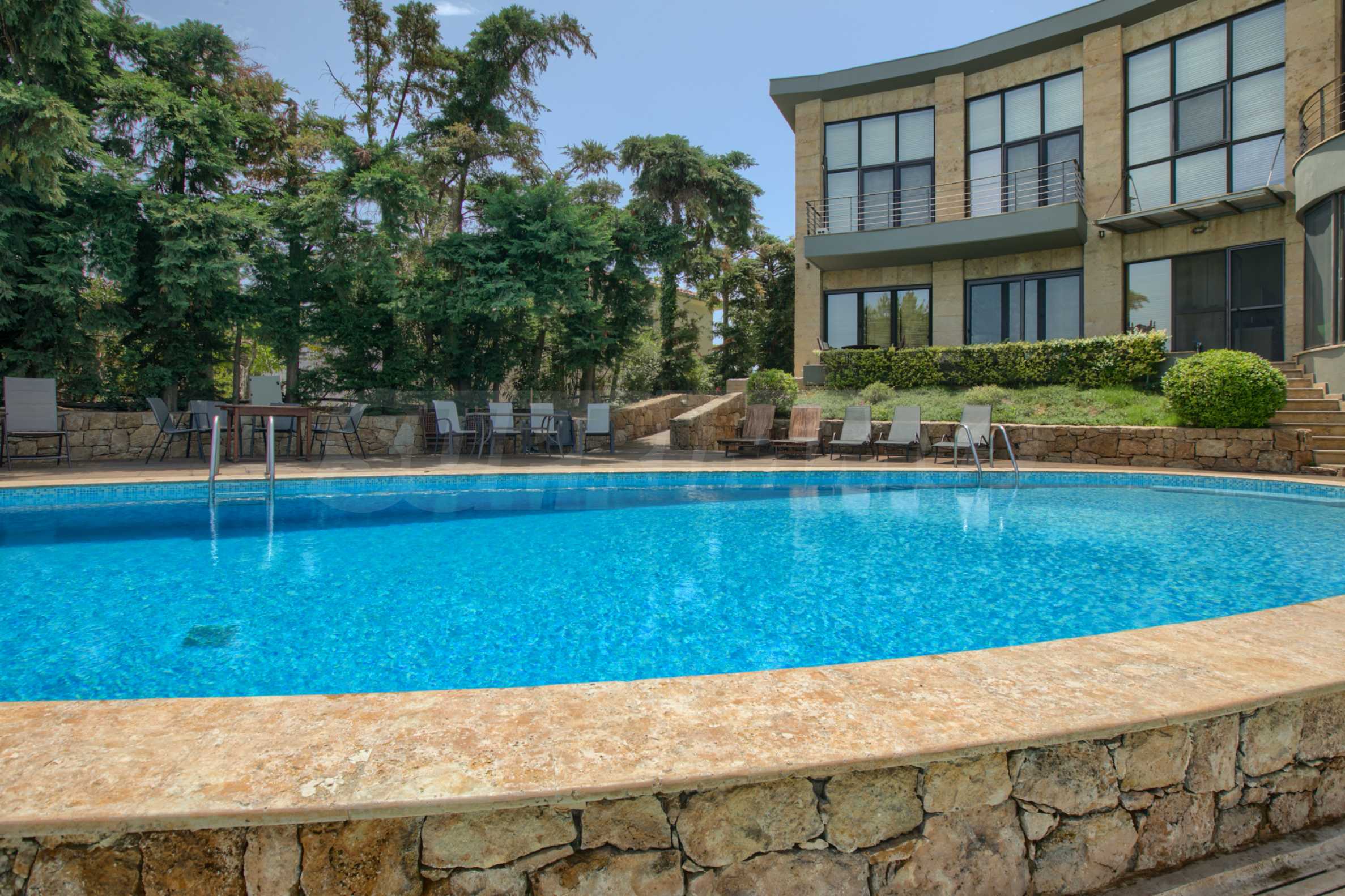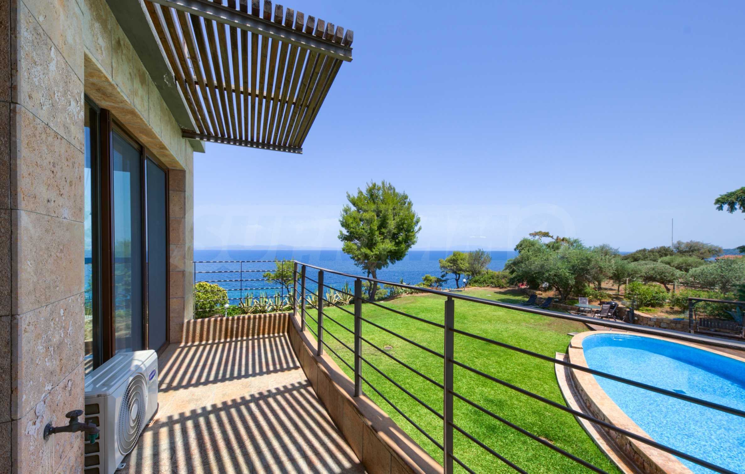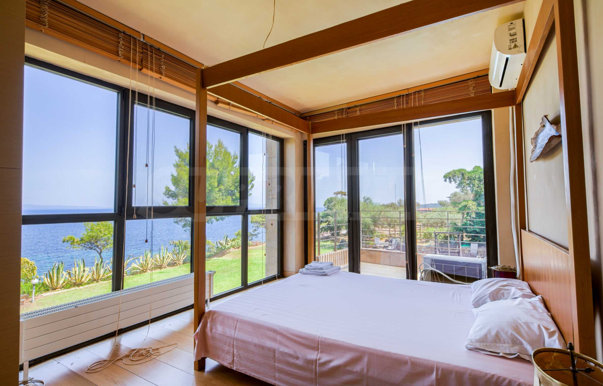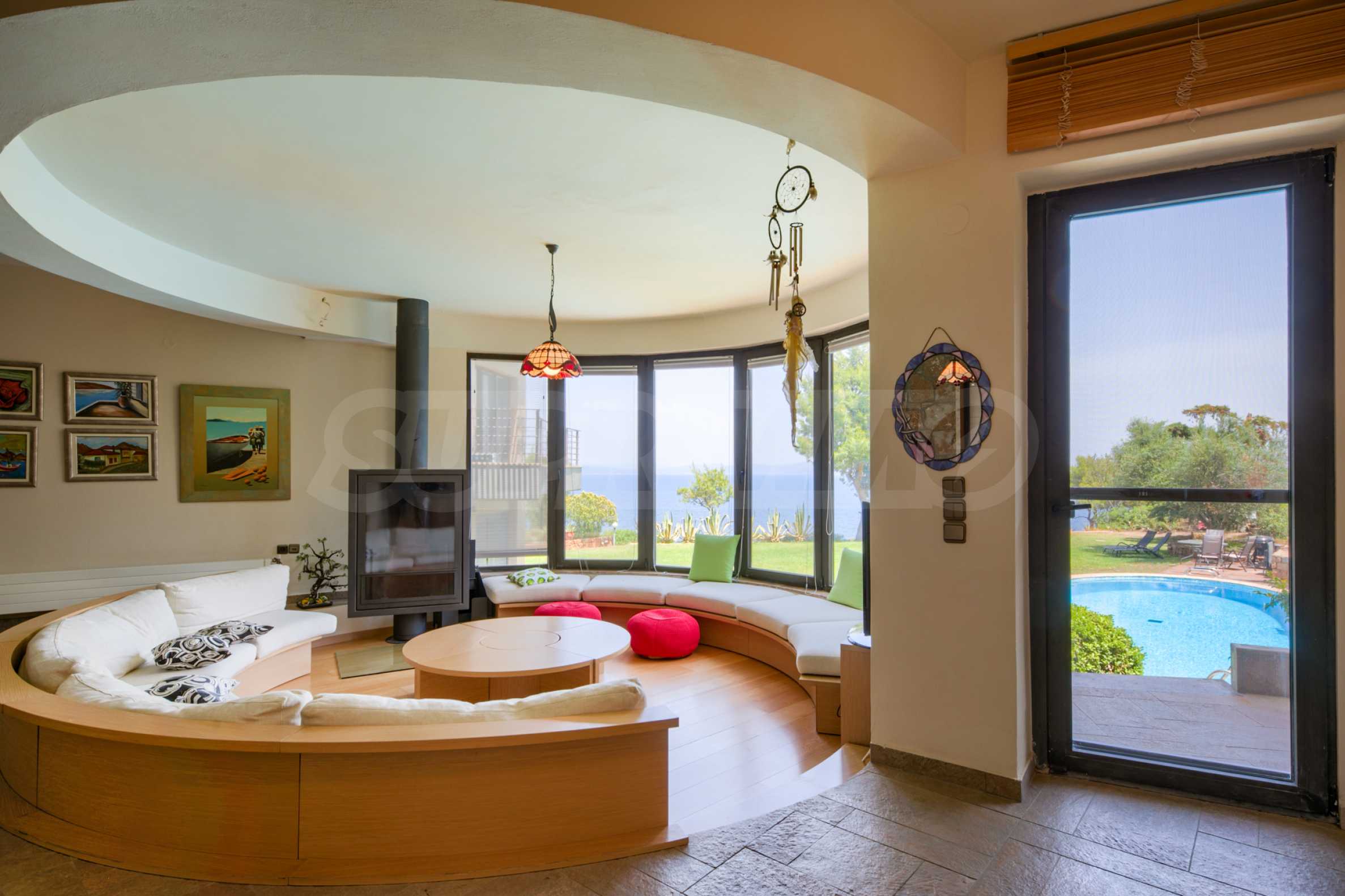 Dotknij tej solidności umiejętnie splecionej z swobodnym kunsztem i nieskazitelną ponadczasowością. Ciesz się wyjątkowymi, rozległymi widokami na Morze Egejskie rozciągające się na Sithonię, a nawet na górę Athos/Athos.