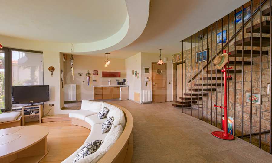 Oferujemy naprawdę solidną konstrukcyjnie willę z niesamowitymi możliwościami przebudowy według własnego gustu, nieruchomość zaprojektowaną i wypełnioną głęboką koncepcją architektoniczną, zrównoważoną w czasie i dostosowaną do cech klimatycznych i sejsmologicznych regionu.