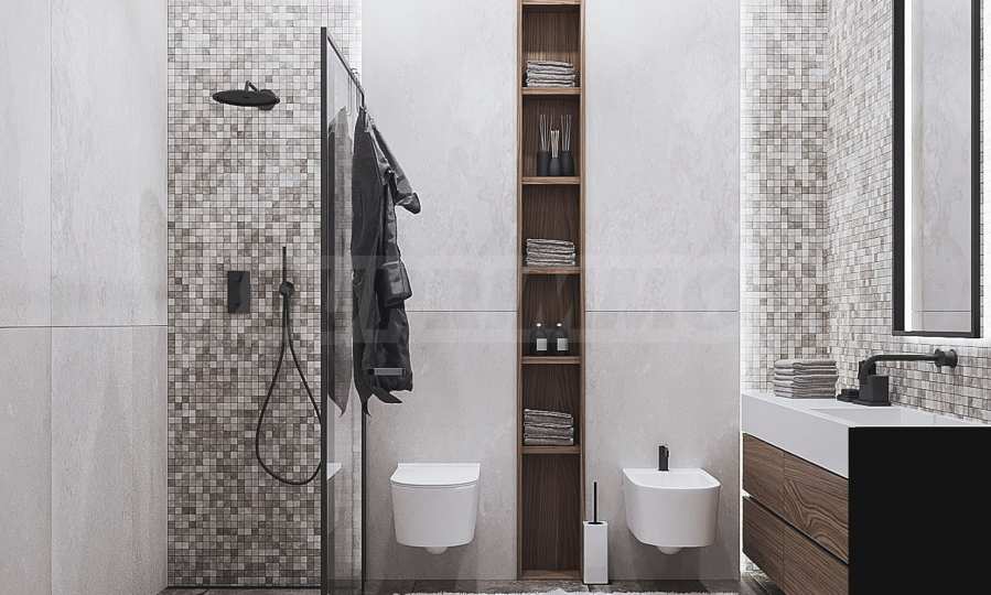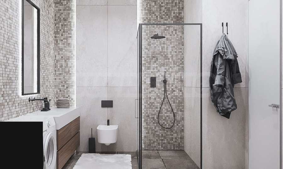 - sanitariaty z płytek granitowych, kabina prysznicowa z wbudowanym syfonem, toaleta, umywalka z szafką;