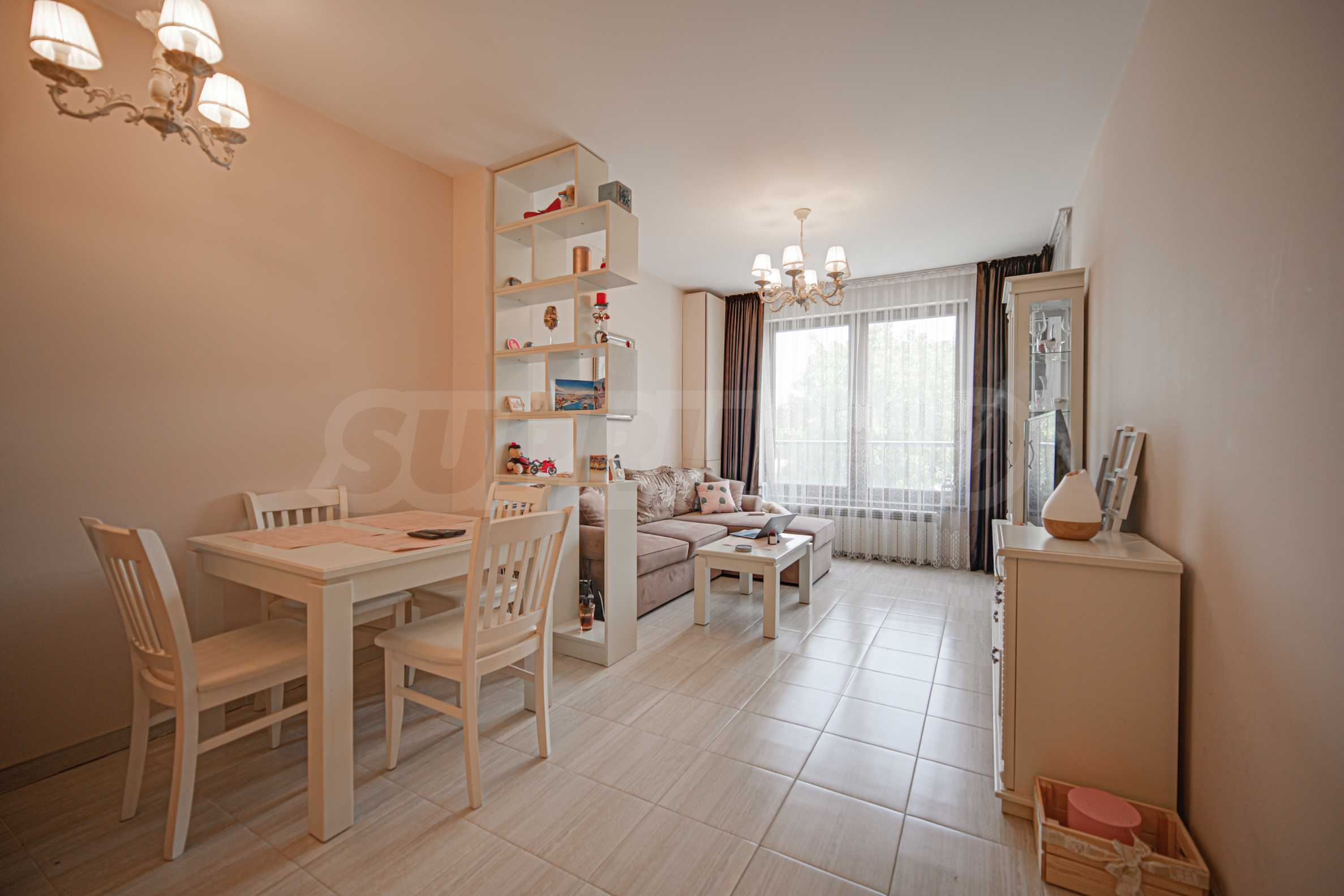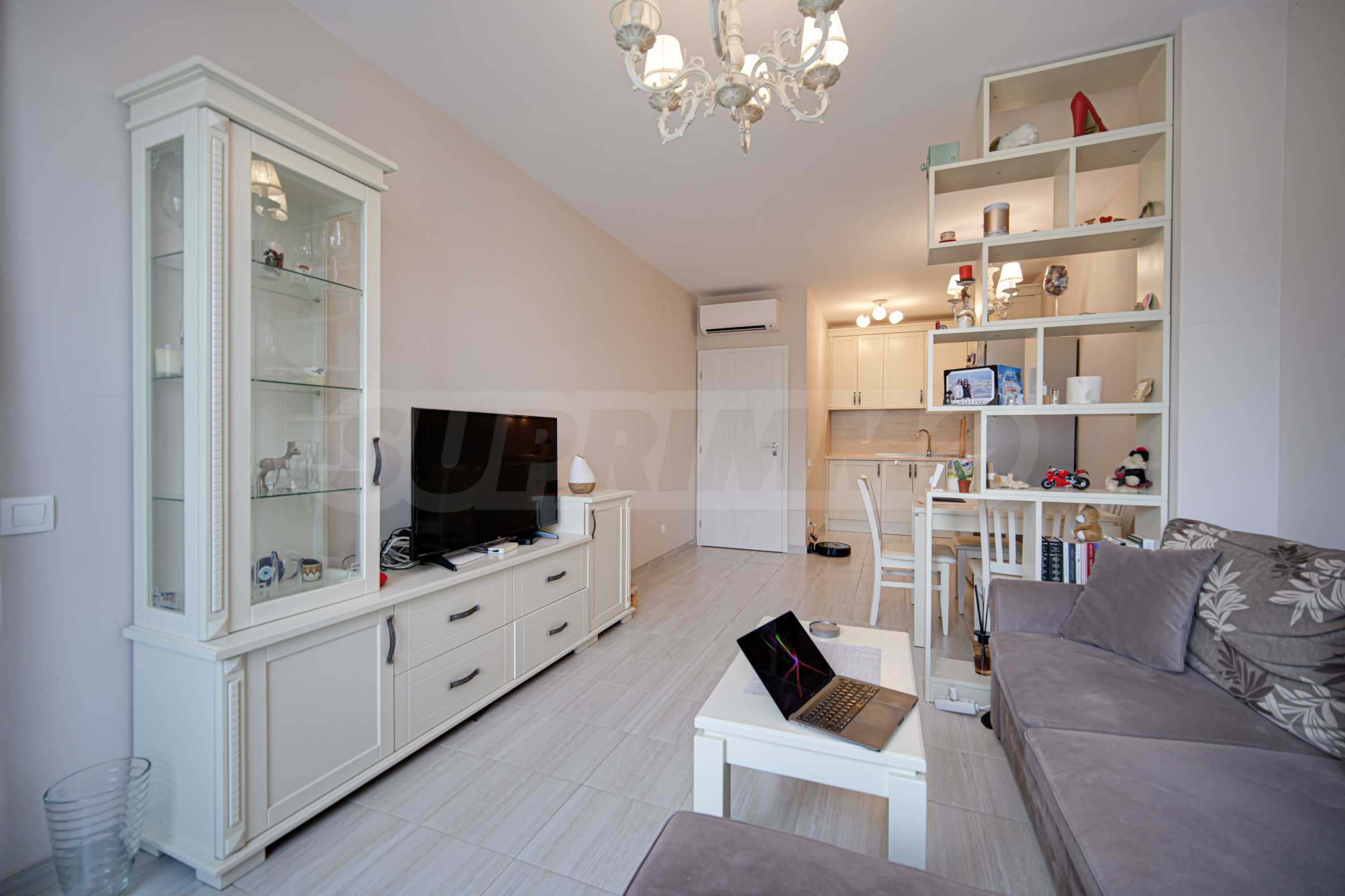 Prezentujemy Państwu w pełni umeblowane mieszkanie jednopokojowe na sprzedaż w luksusowym nowym budynku tuż przy rynku w dzielnicy Darvenitsa.