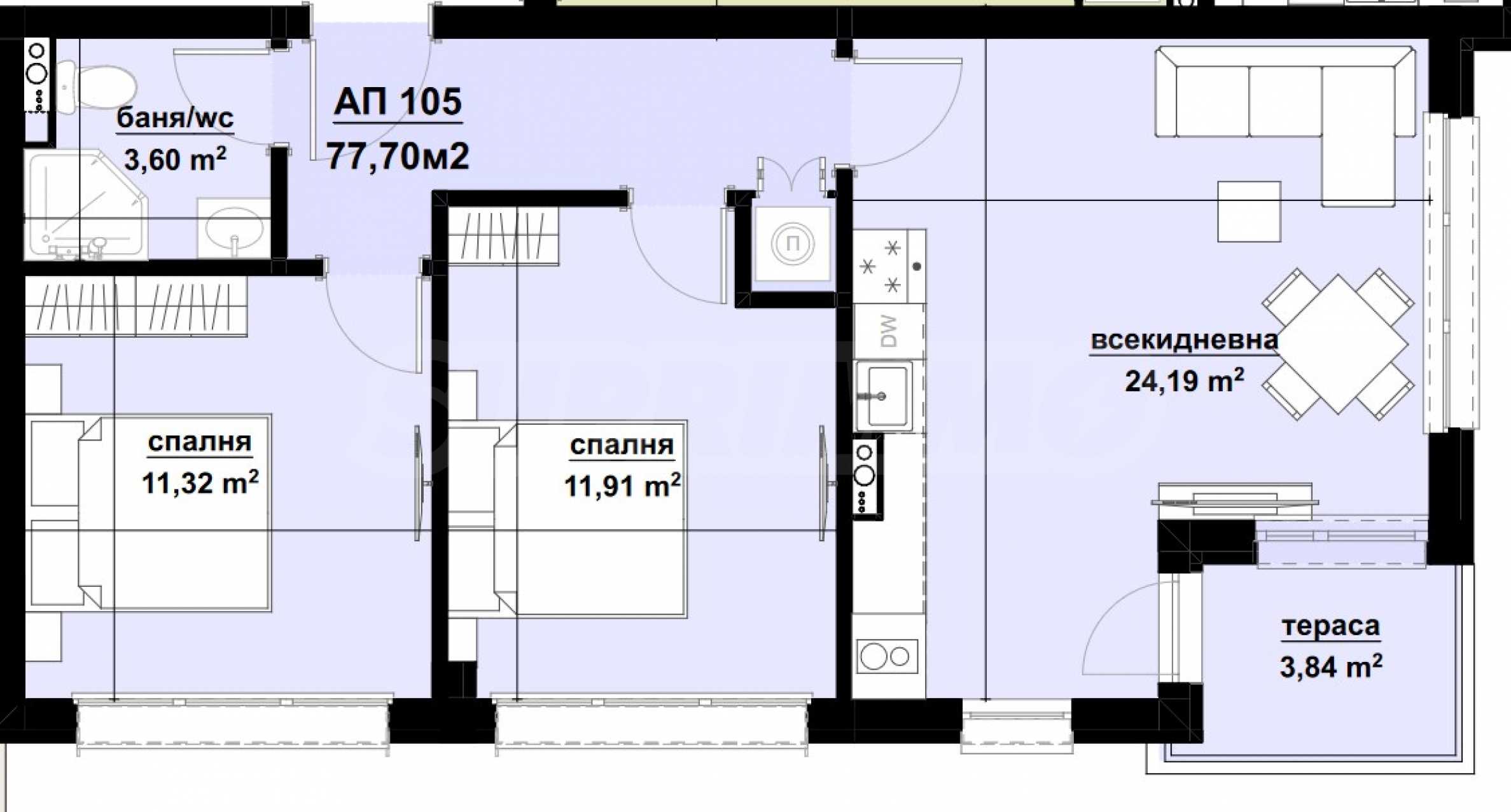 Oferujemy do sprzedaży nowe dwupokojowe mieszkanie o powierzchni 77,70 m2 w nowoczesnym budynku mieszkalnym w dogodnej lokalizacji w nowym mieście Sozopol, dzielnicy Misarya.