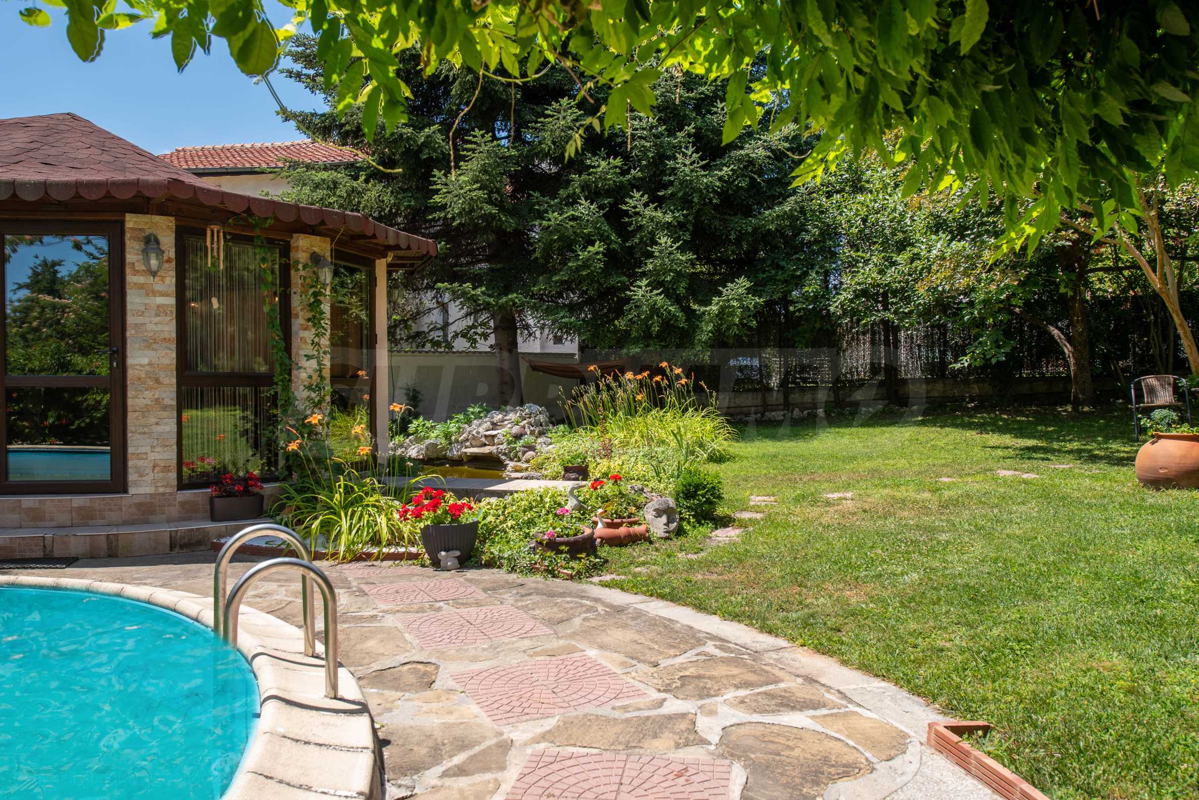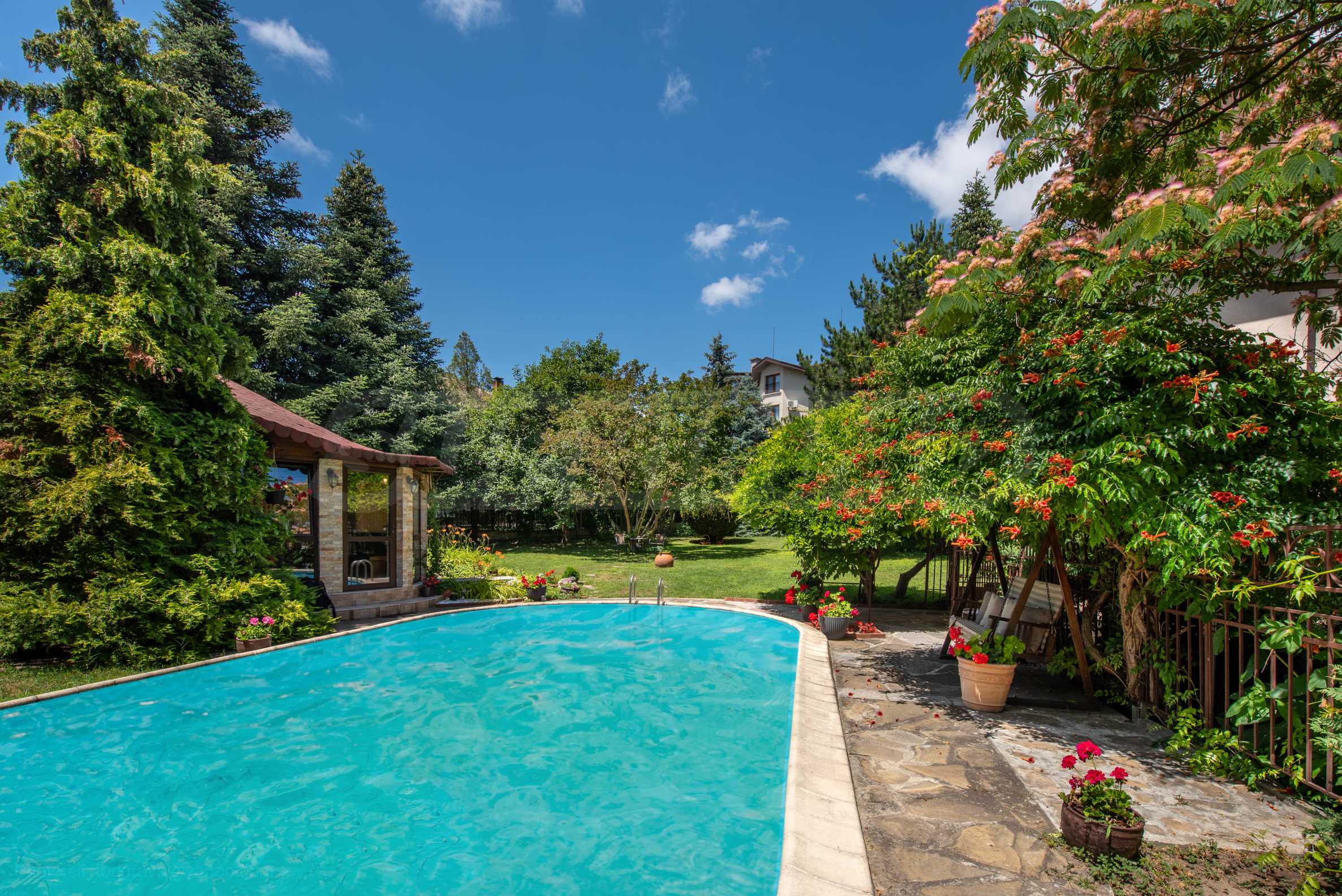 Dom o powierzchni całkowitej 548 m² posiada podwórko o powierzchni 1077 m², basen, duży ogród i własną szklarnię. Posiada wszystkie media, takie jak kanalizacja, prąd i wodociąg.