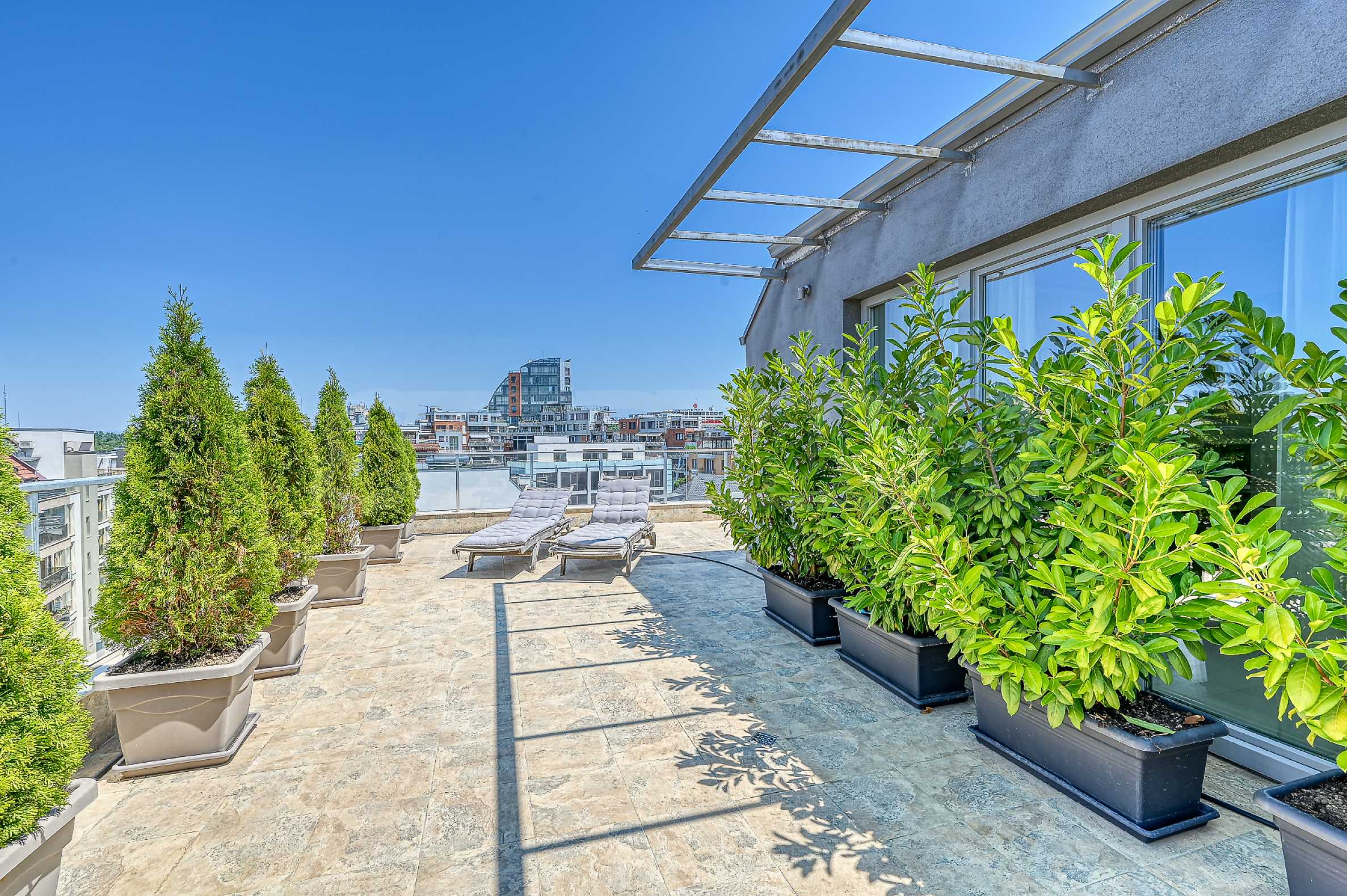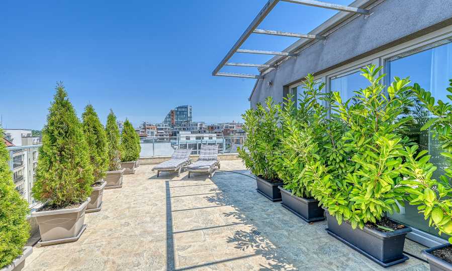 Prezentujemy Państwu elegancki i słoneczny dwupokojowy penthouse położony w dzielnicy Krastova Vada. Lokalizacja oferuje doskonałą równowagę między spokojem a wygodnym dostępem do kluczowych punktów w mieście, w tym stacji metra, Paradise Mall, Cherni Vrah Blvd. i Ring Road.