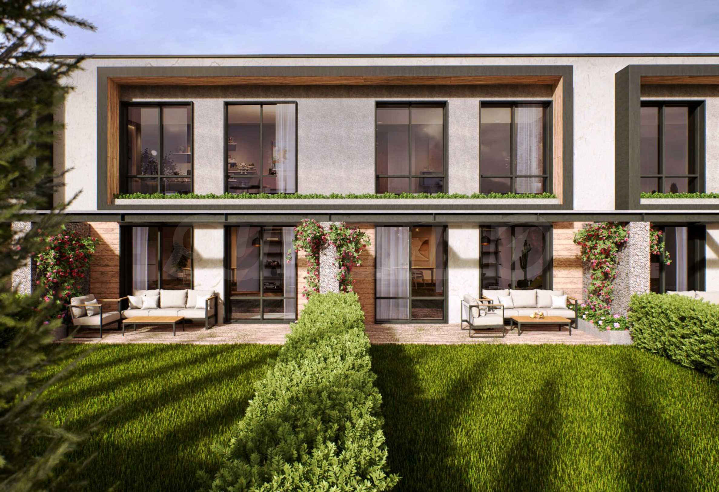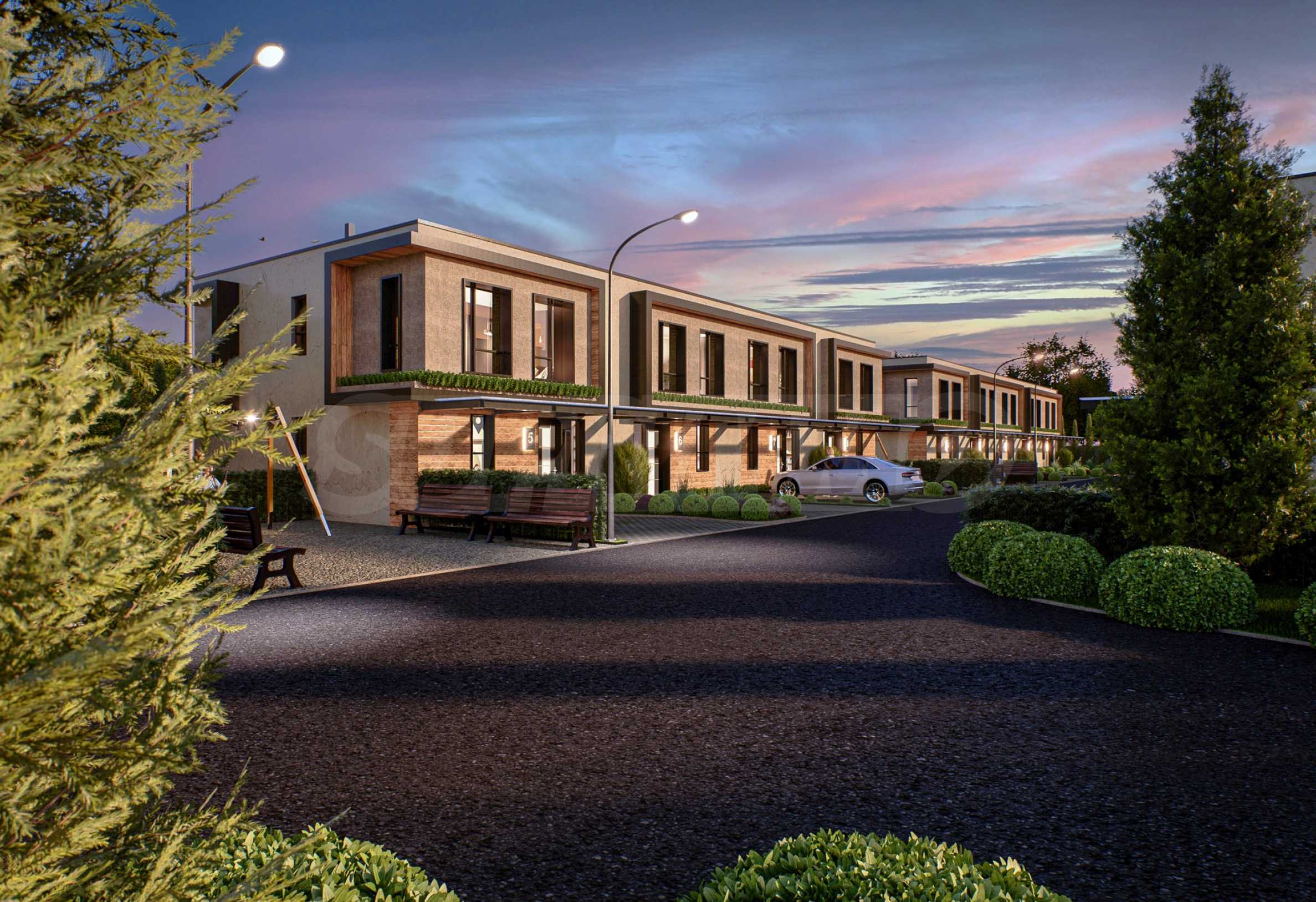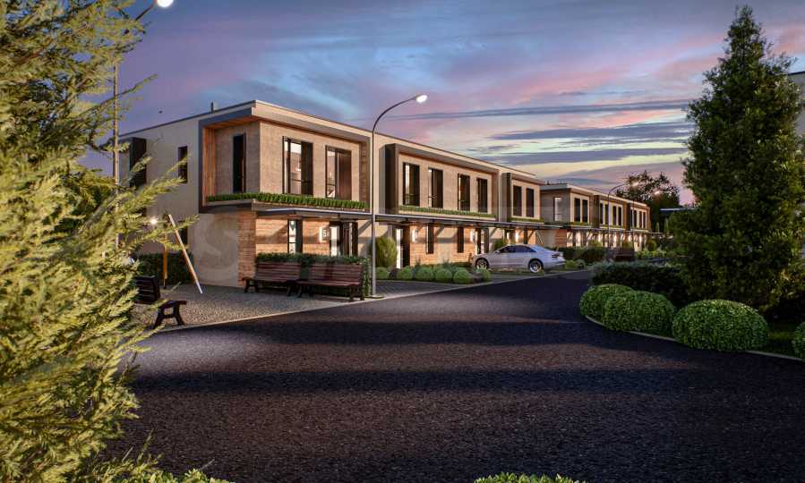 Prezentujemy dom szeregowy w zamkniętym kompleksie w pobliżu Płowdiwu. Doskonała lokalizacja tuż przy autostradzie Trakia, 12 km od Płowdiwu lub 15 minut do centrum miasta.