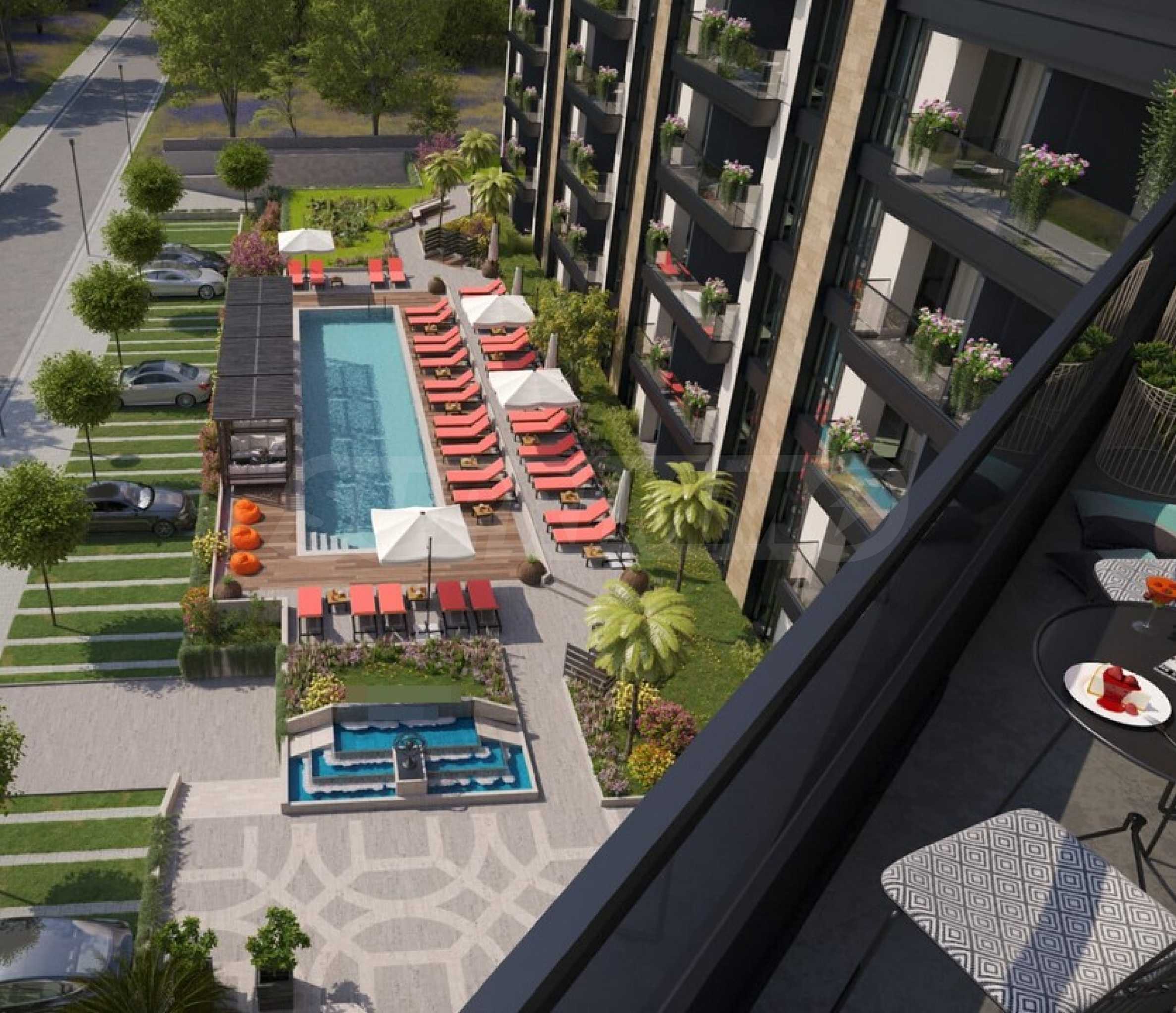 Budynek ma elegancki wygląd, a apartamenty charakteryzują się funkcjonalnym układem, różną ekspozycją i widokiem na basen lub piękny ogród kompleksu.