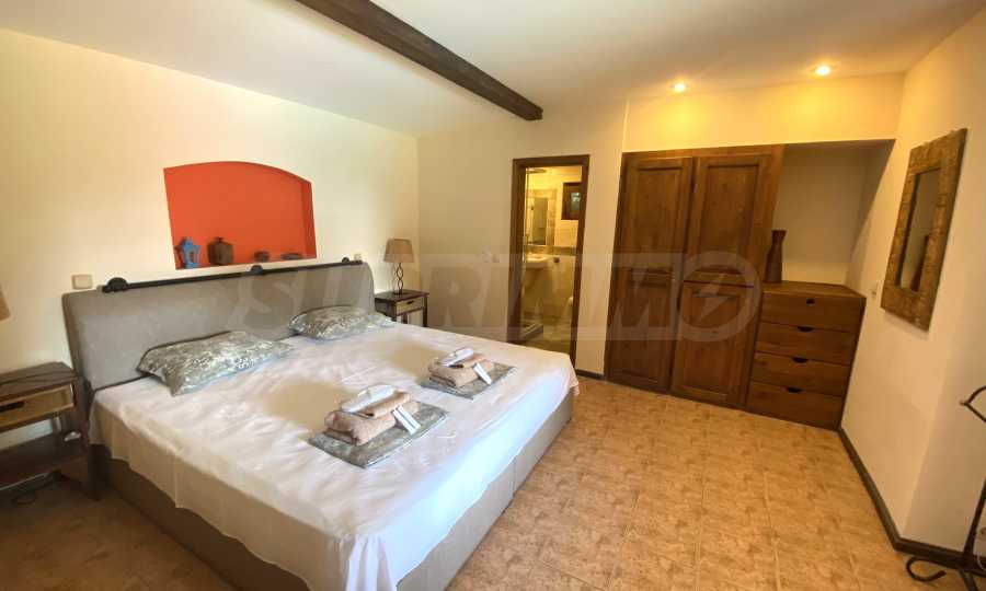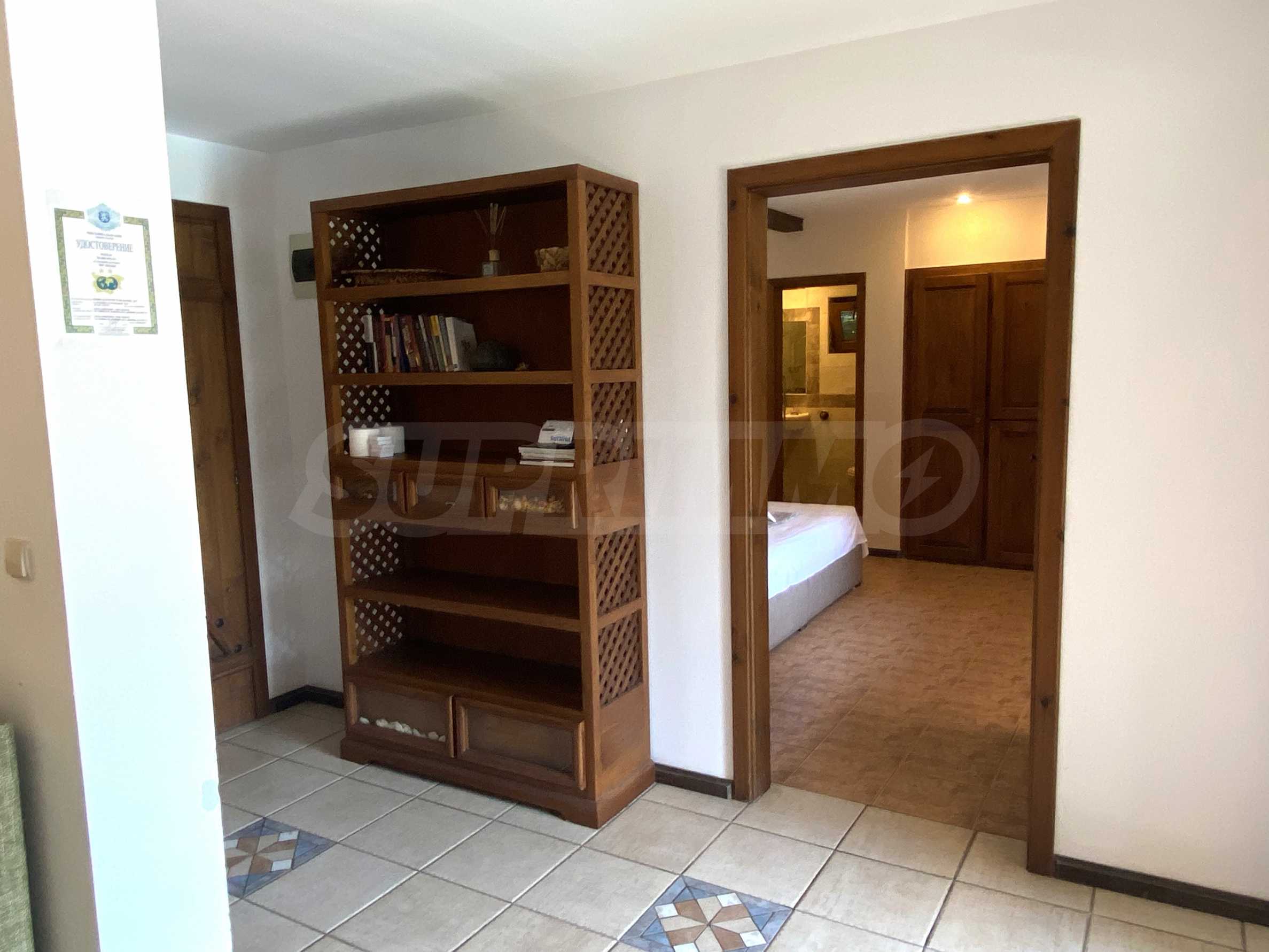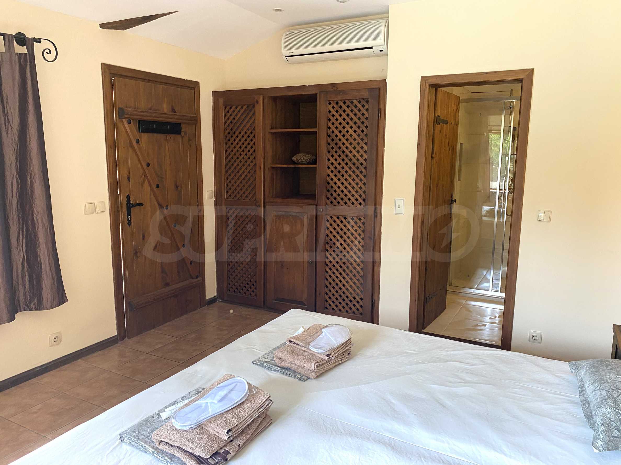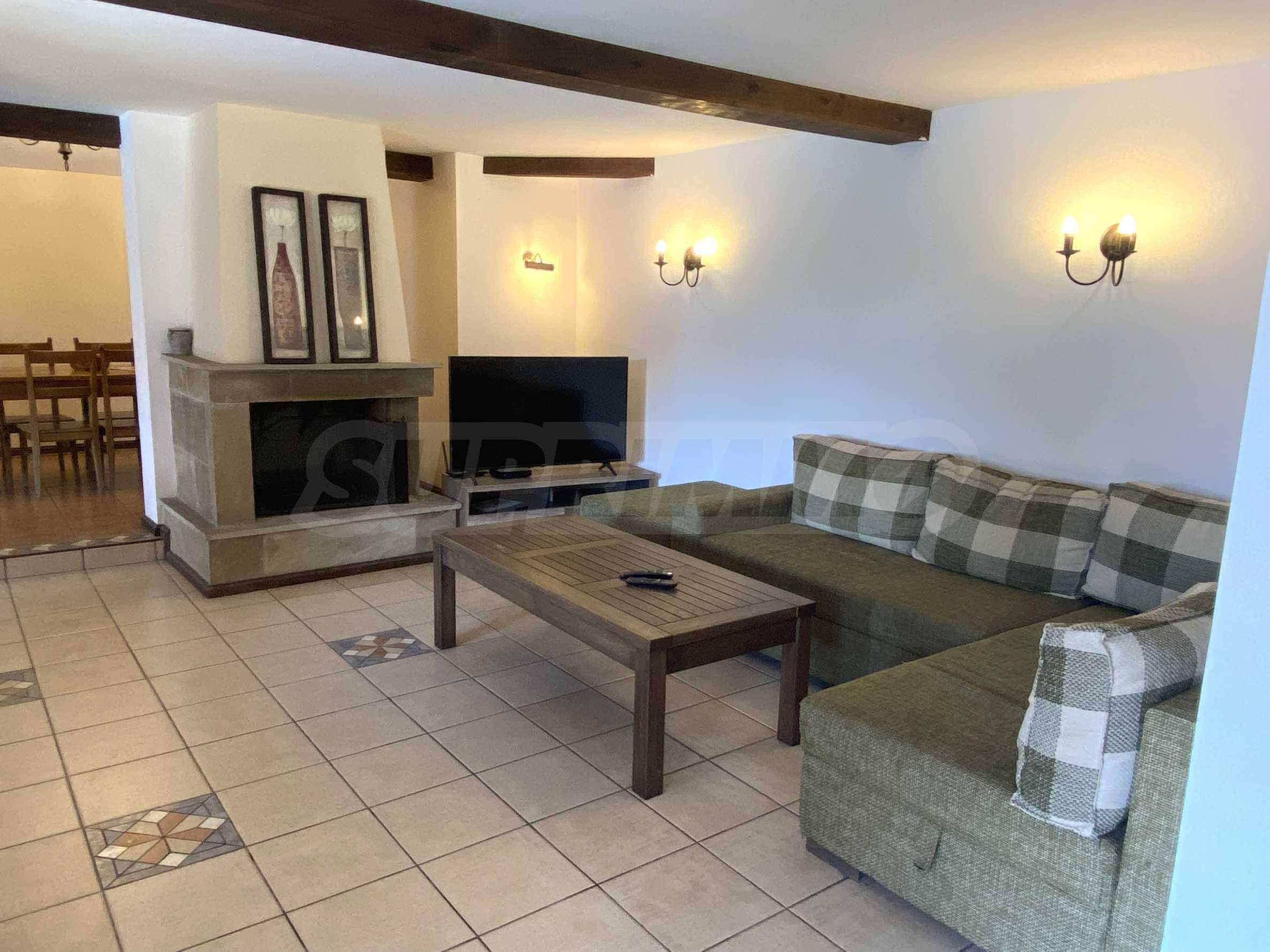 Dom jest w pełni umeblowany i wyposażony we wszystko co niezbędne do zamieszkania. Dla wygody i przytulności w salonie zainstalowano kominek opalany drewnem. Chłodzenie lub ogrzewanie można również przeprowadzić za pomocą klimatyzatorów. Obiekt posiada własne podwórko i basen. Istnieje możliwość zaparkowania dwóch samochodów.