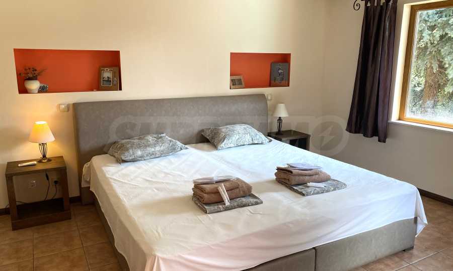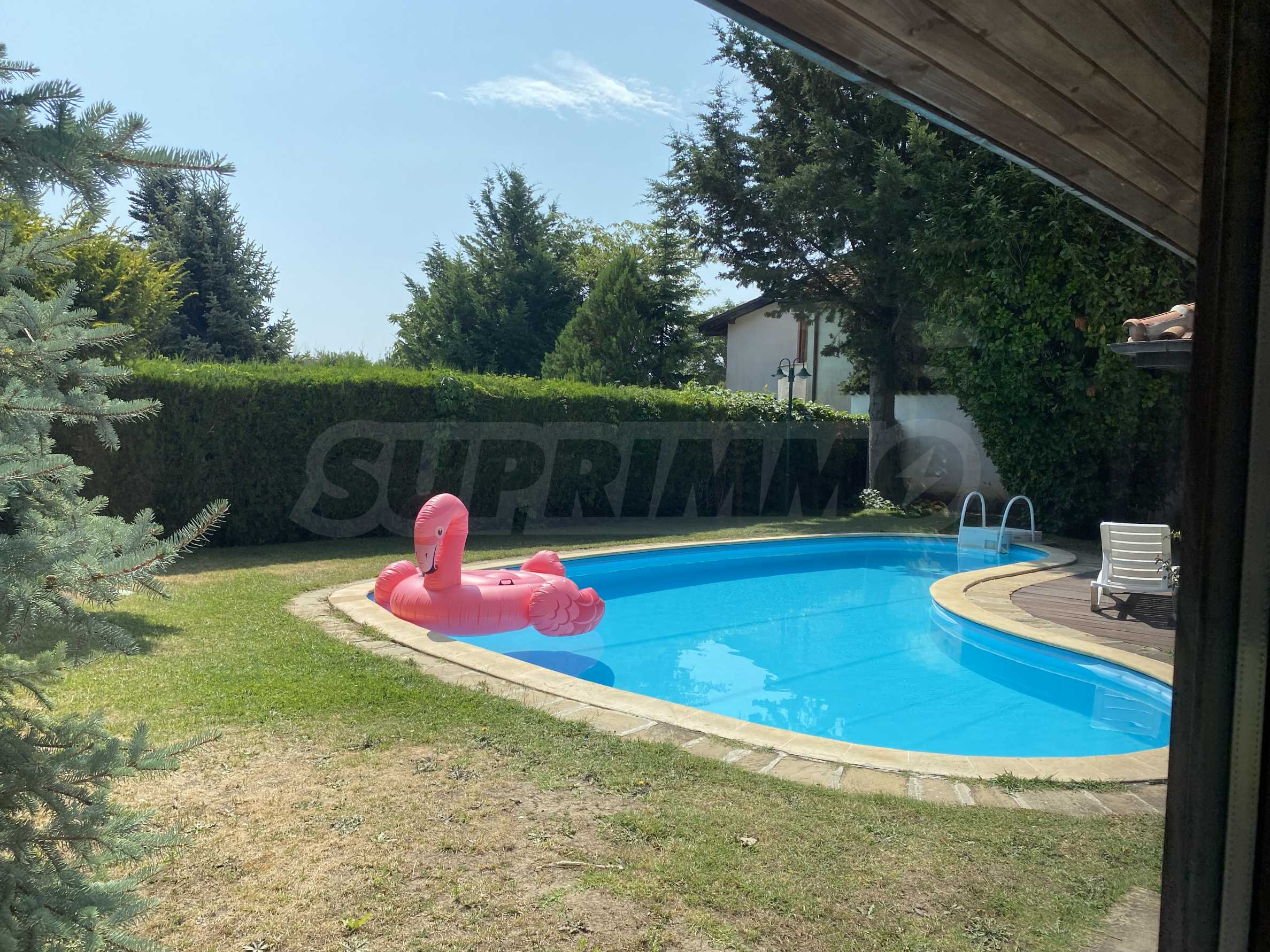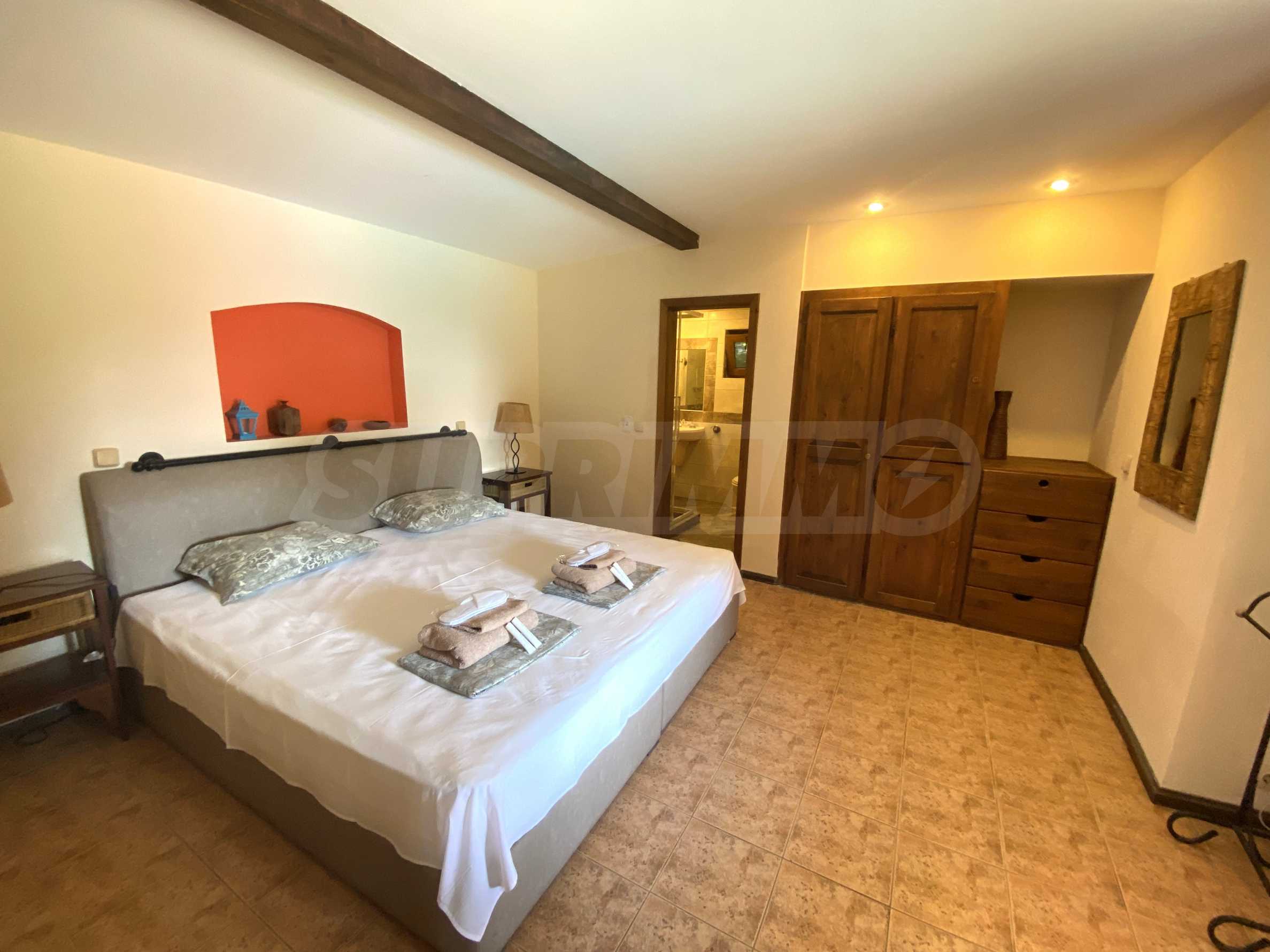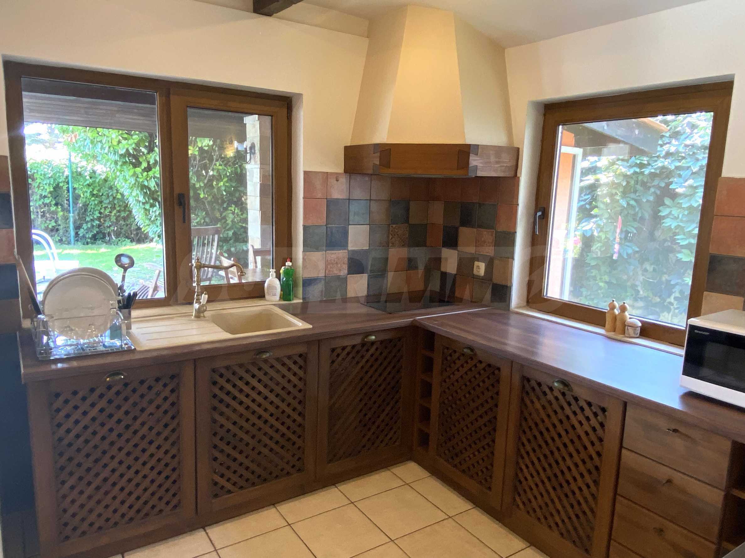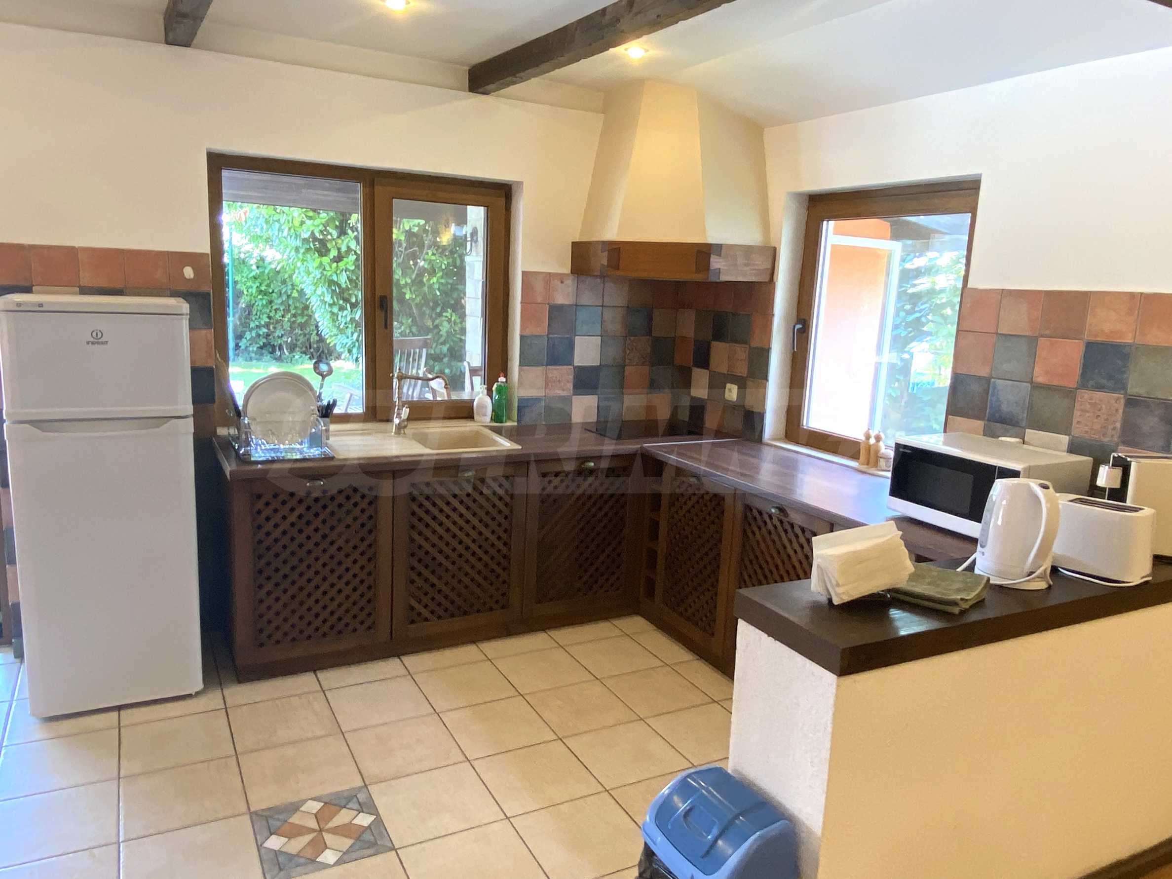 Dom jest w pełni umeblowany i wyposażony we wszystko co niezbędne do zamieszkania. Dla wygody i przytulności w salonie zainstalowano kominek opalany drewnem. Chłodzenie lub ogrzewanie można również przeprowadzić za pomocą klimatyzatorów. Obiekt posiada własne podwórko i basen. Istnieje możliwość zaparkowania dwóch samochodów.