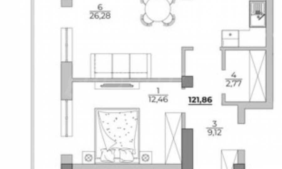 Nieruchomość o powierzchni całkowitej 121,86 m2 zlokalizowana jest na 4 piętrze z 5.