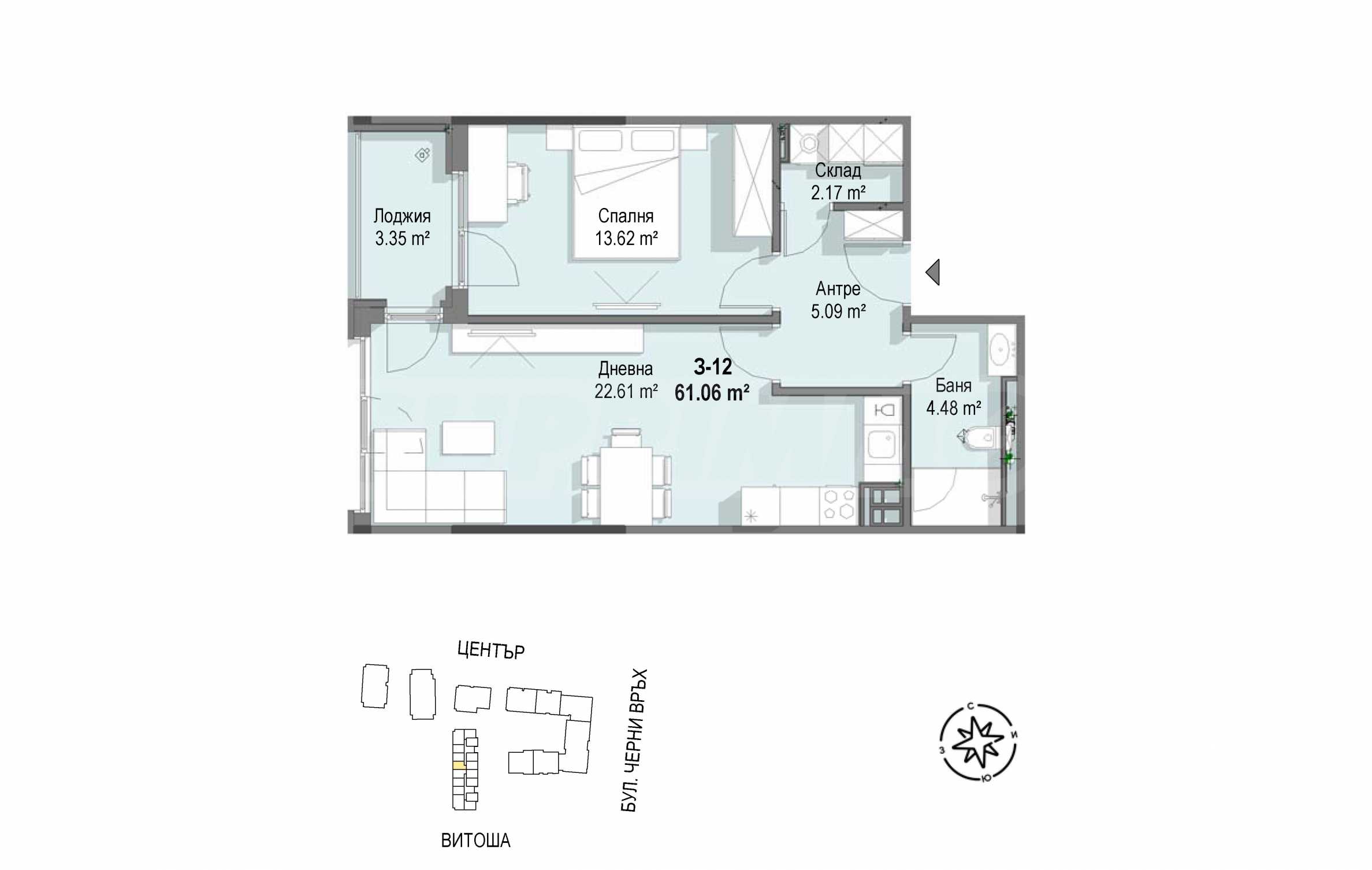 Przedstawiamy Państwu niezwykle komfortowe dwupokojowe mieszkanie z ekspozycją zachodnią, zlokalizowane w nowoczesnym kompleksie małych, niskich budynków. Nieruchomość zlokalizowana jest w bliskiej odległości od Cherni Vrah Blvd i obwodnicy, która zapewnia szybki dostęp do kluczowych punktów miasta. Dodatkowym atutem lokalizacji jest zbliżająca się budowa w okolicy nowej belki metra w Sofii, co znacząco zwiększy łączność komunikacyjną i wartość nieruchomości. Projekt powstał z myślą o ludziach, którzy mają postawę i wysokie wymagania wobec środowiska, w którym żyją.