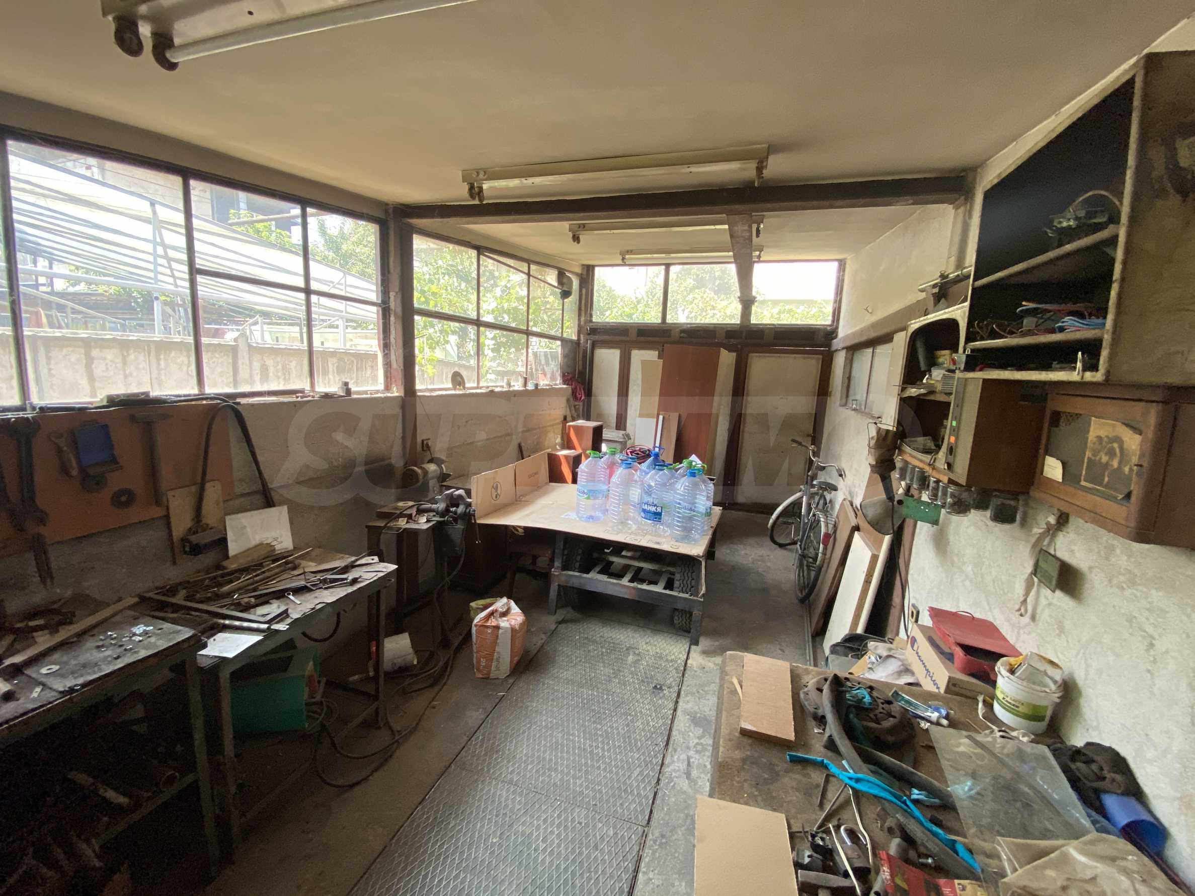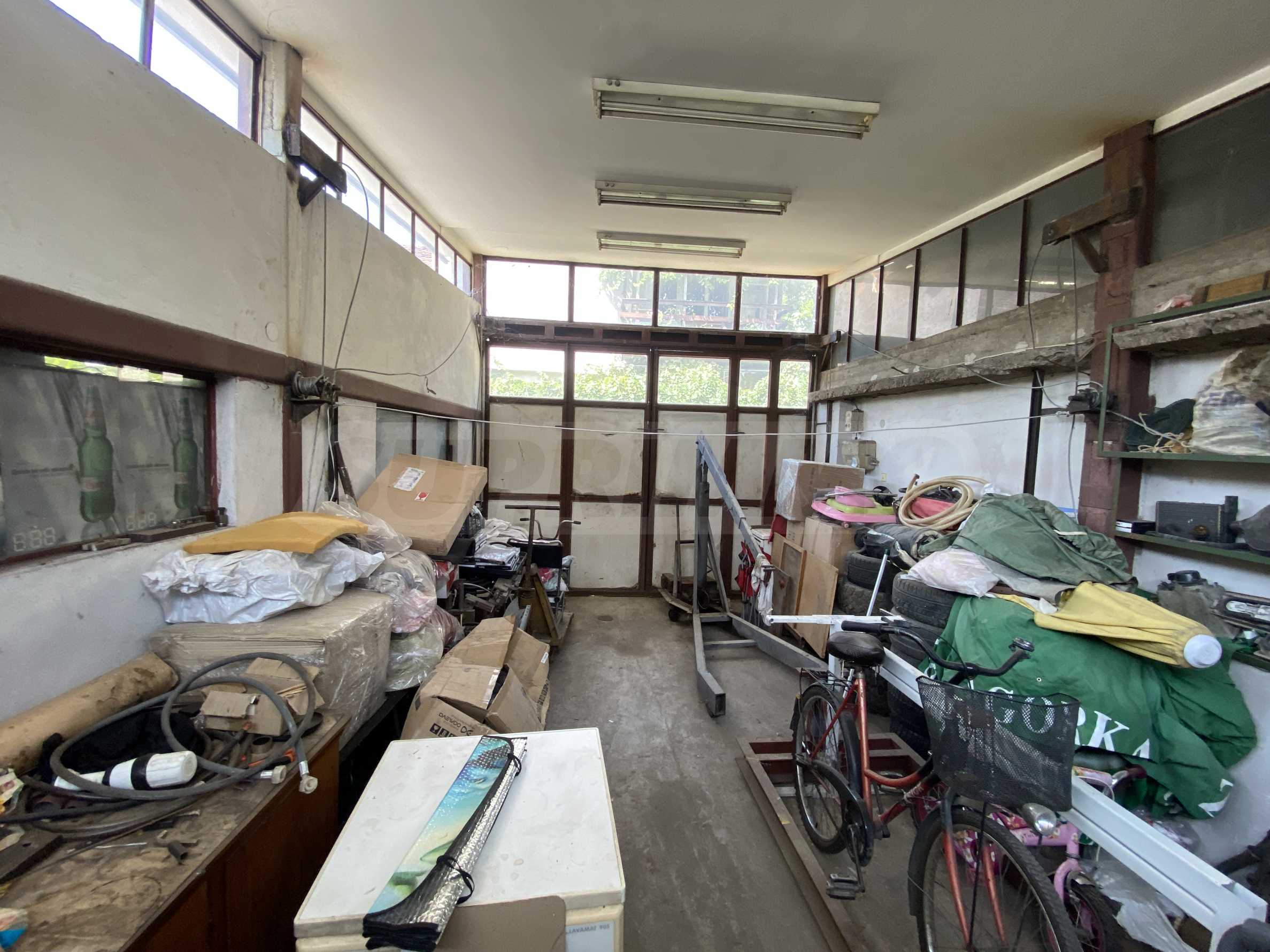 Nieruchomość posiada dwa garaże o łącznej powierzchni 58m2, przystosowane do serwisu samochodowego lub innej działalności. Posiada prąd trójfazowy i podnośnik.