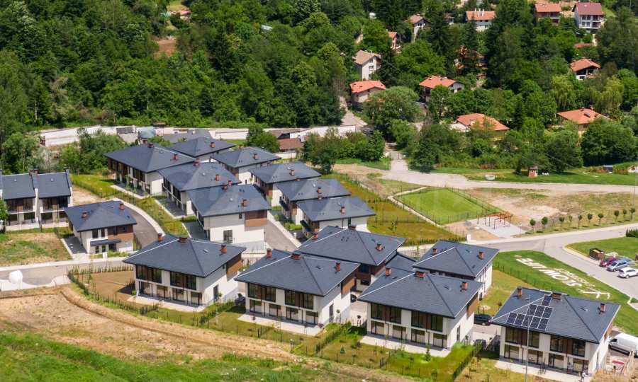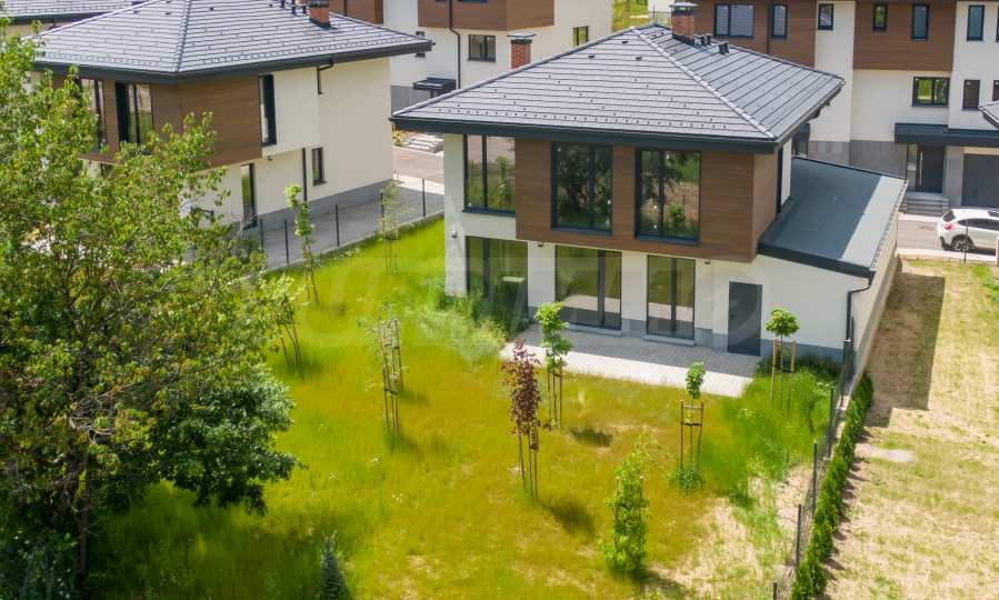 Oferujemy przestronny dom wolnostojący w zamkniętym kompleksie Slow Life District w Vladaya, zaledwie 15 minut od Sofii, w pobliżu granic Parku Przyrody Vitosha. Obszar ten charakteryzuje się wieloma słonecznymi dniami, czystym górskim powietrzem, zielenią, spokojem i pięknymi widokami.