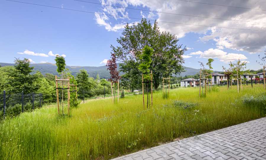 Domy rozmieszczone są na planie wachlarza, a wszystkie pomieszczenia mieszkalne zwrócone są w stronę panoramy Witoszy.