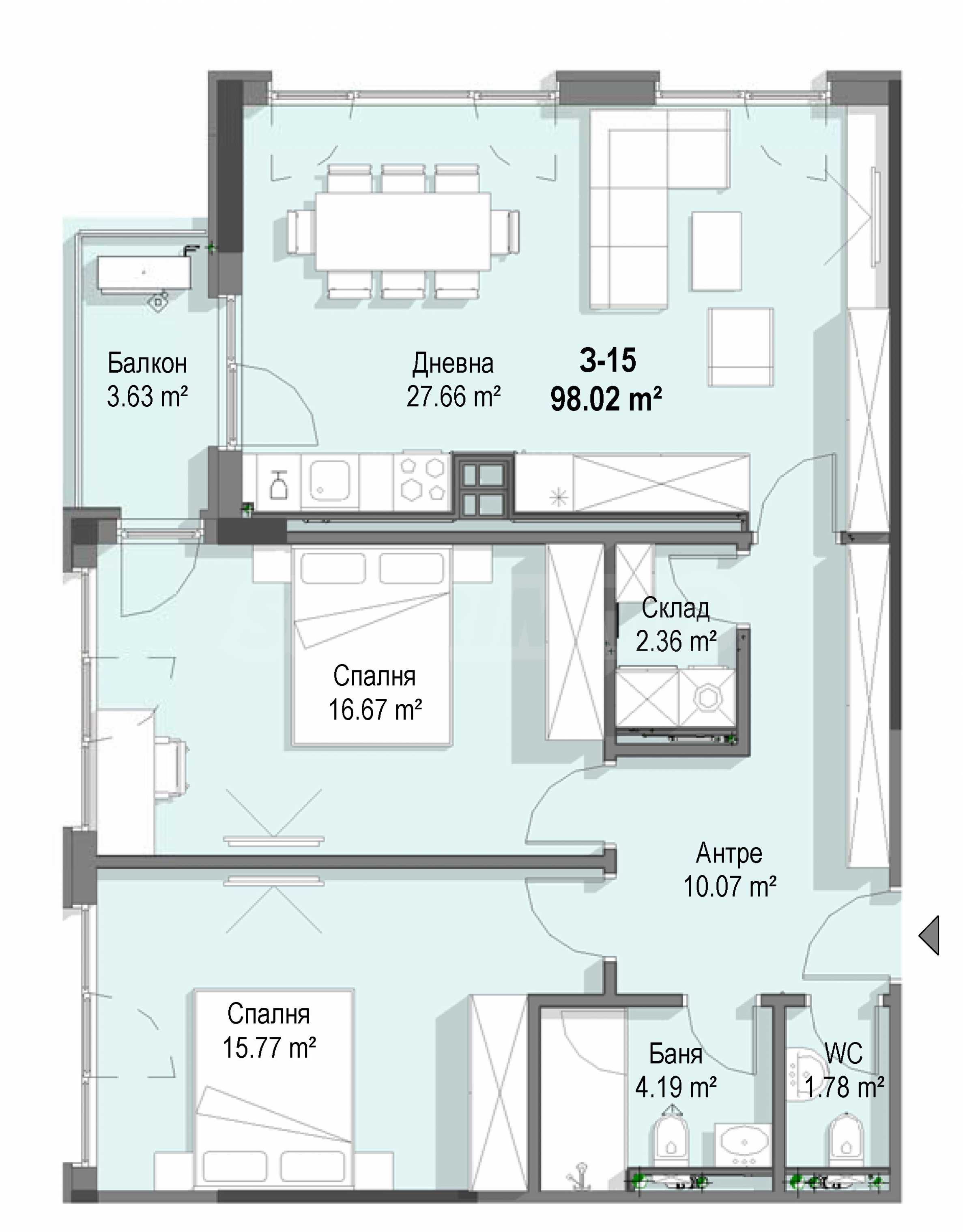 Prezentujemy Państwu niezwykle komfortowe, dwupokojowe mieszkanie z ekspozycją okien na stronę północno-zachodnią, zlokalizowane w nowoczesnym kompleksie niewielkich, niskich budynków. Nieruchomość położona jest w bliskim sąsiedztwie Blvd. „Czerni Vrah” i obwodnica, która umożliwia szybki dostęp do najważniejszych punktów miasta. Dodatkowym atutem lokalizacji jest planowana w tym rejonie budowa nowej linii metra w Sofii, co znacznie usprawni komunikację i podniesie wartość nieruchomości. Projekt powstał z myślą o ludziach, którzy mają wysokie wymagania wobec środowiska, w którym żyją.