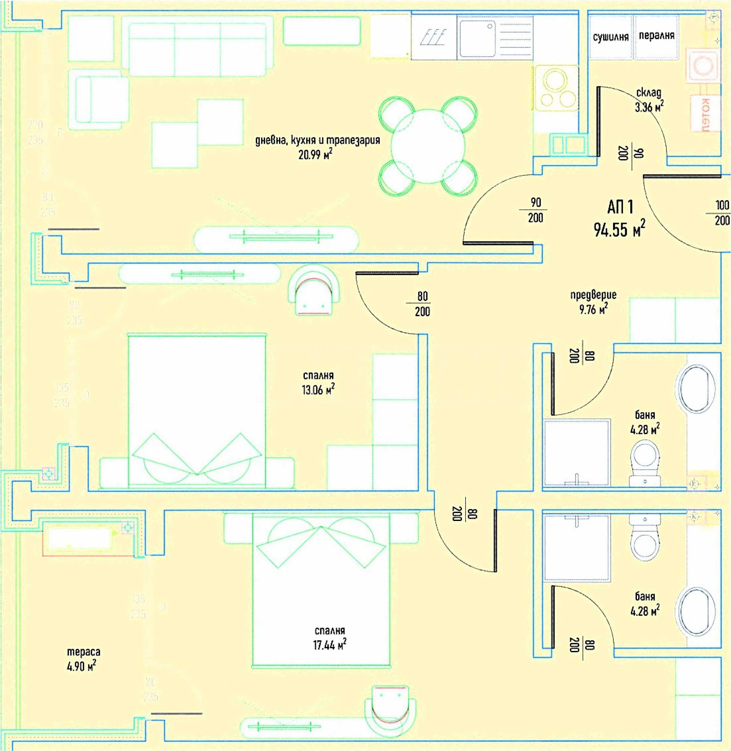 Prezentujemy dwupokojowe mieszkanie w nowym kompleksie mieszkaniowym, położonym w sercu 4 hektarów terenów zielonych w Sofii, w dzielnicy Malinova Dolina. Lokalizacja zapewnia niezwykle łatwy dostęp do obwodnicy Sofii, przystanków komunikacji miejskiej, parku Vartopo, American College, Narodowej Akademii Sportu im. Wasyla Lewskiego, centrum handlowego RING MALL i wszystkich części miasta.