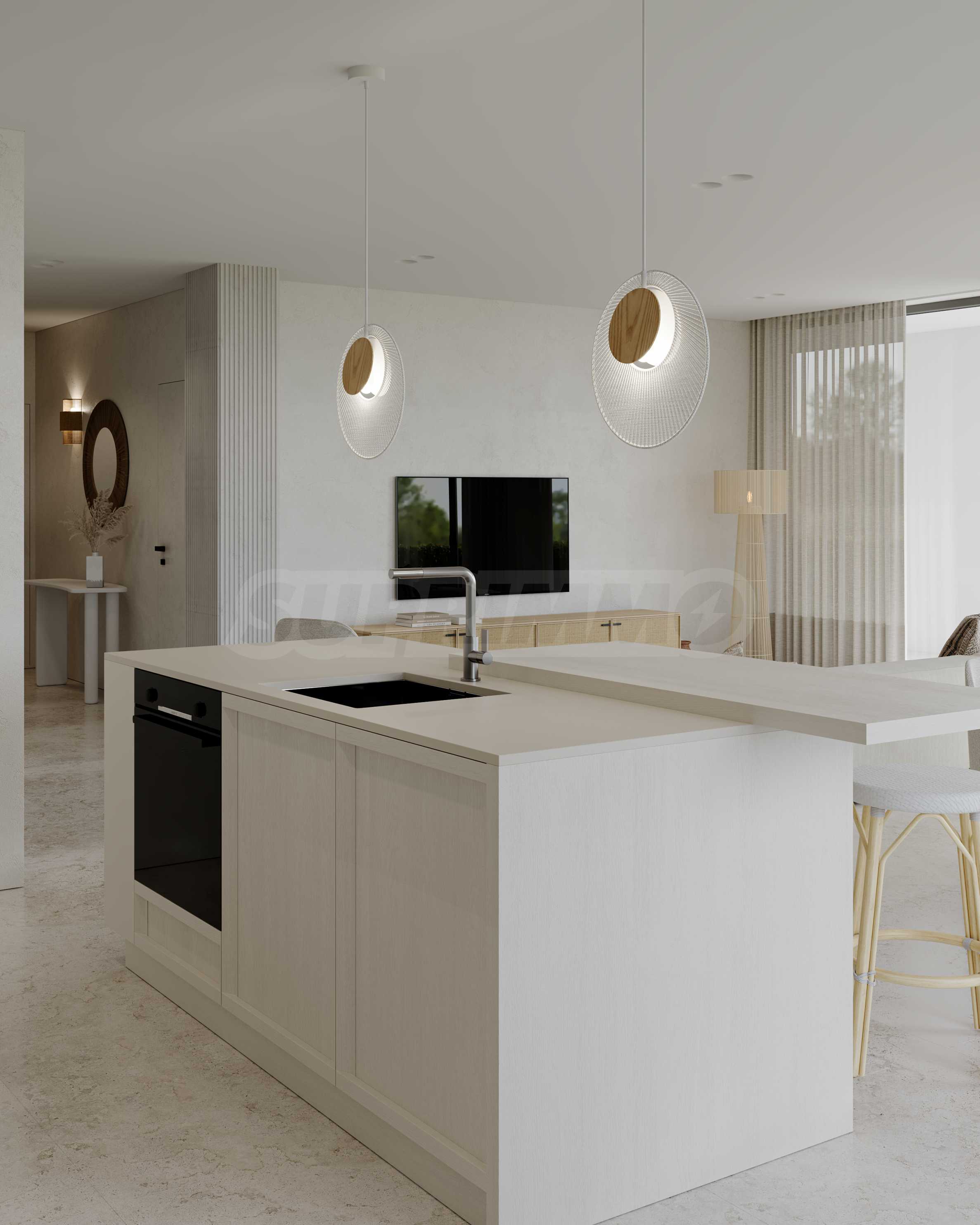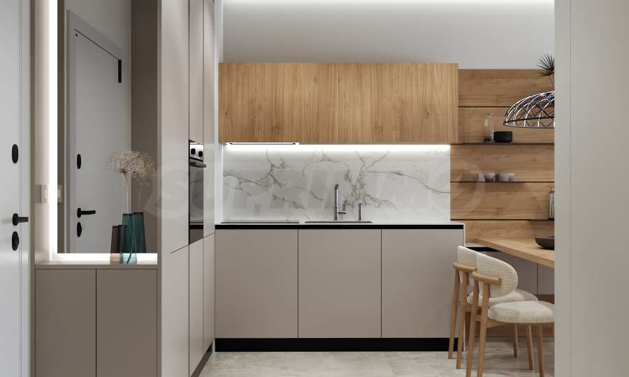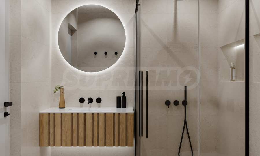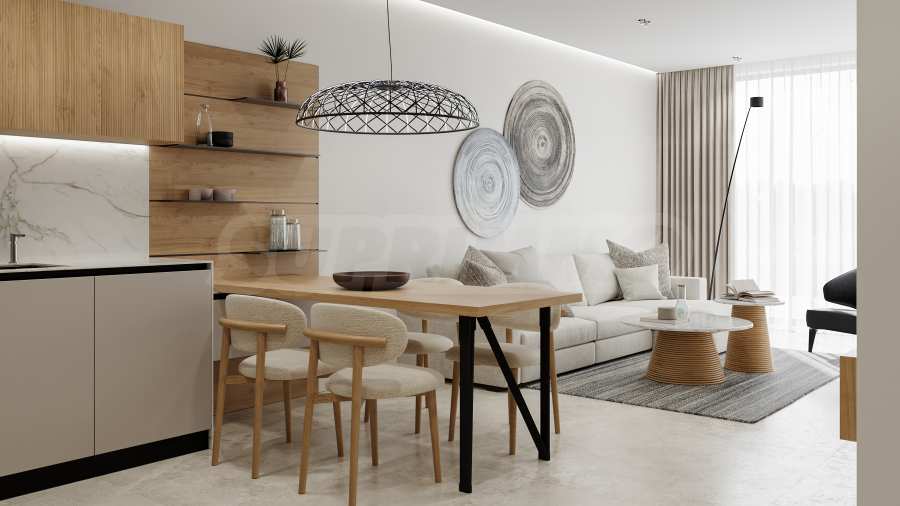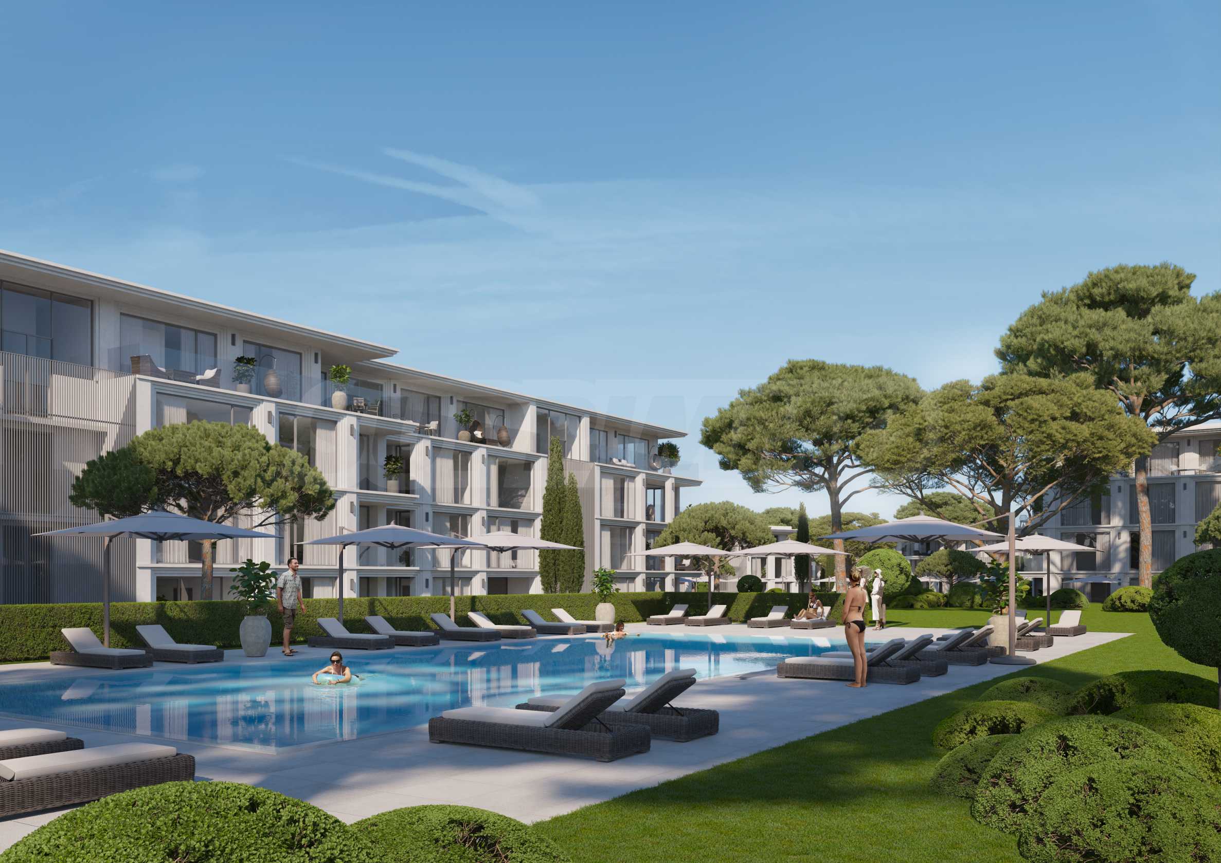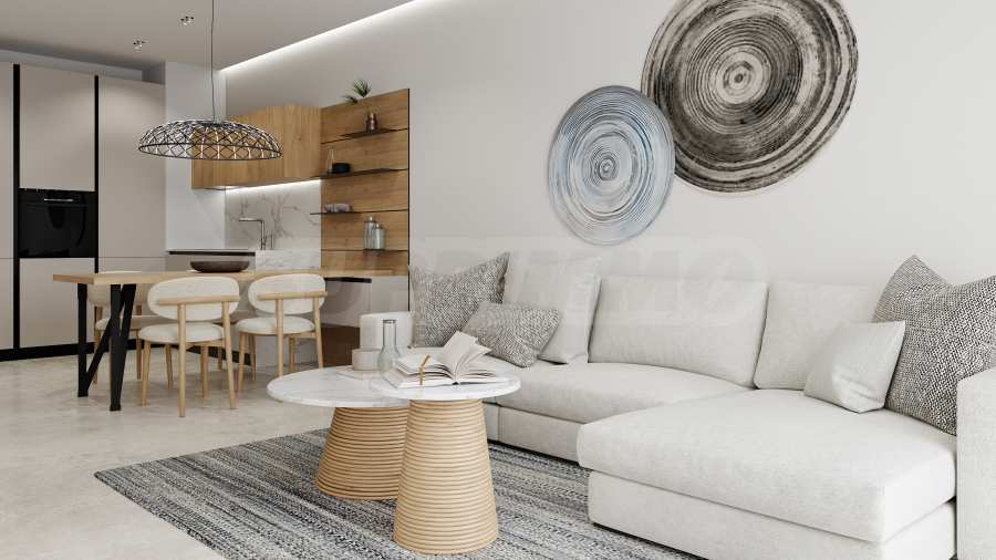 Na czwartej linii brzegowej, zaledwie 200 metrów w linii prostej od morza, zaprojektowano 5 budynków z basenami, każdy o 4 piętrach + tarasy, z mniejszymi apartamentami - studiami i apartamentami z dwiema sypialniami, w stanie wykończenia według bułgarskich norm budowlanych, z możliwością umeblowania.