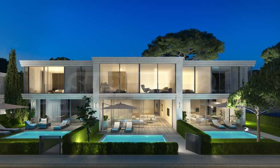 • w pierwszej linii zabudowy - 9 parterowych willi, każda z własnym podwórkiem i możliwością wynajęcia basenu, z 3 miejscami parkingowymi na zewnątrz;
