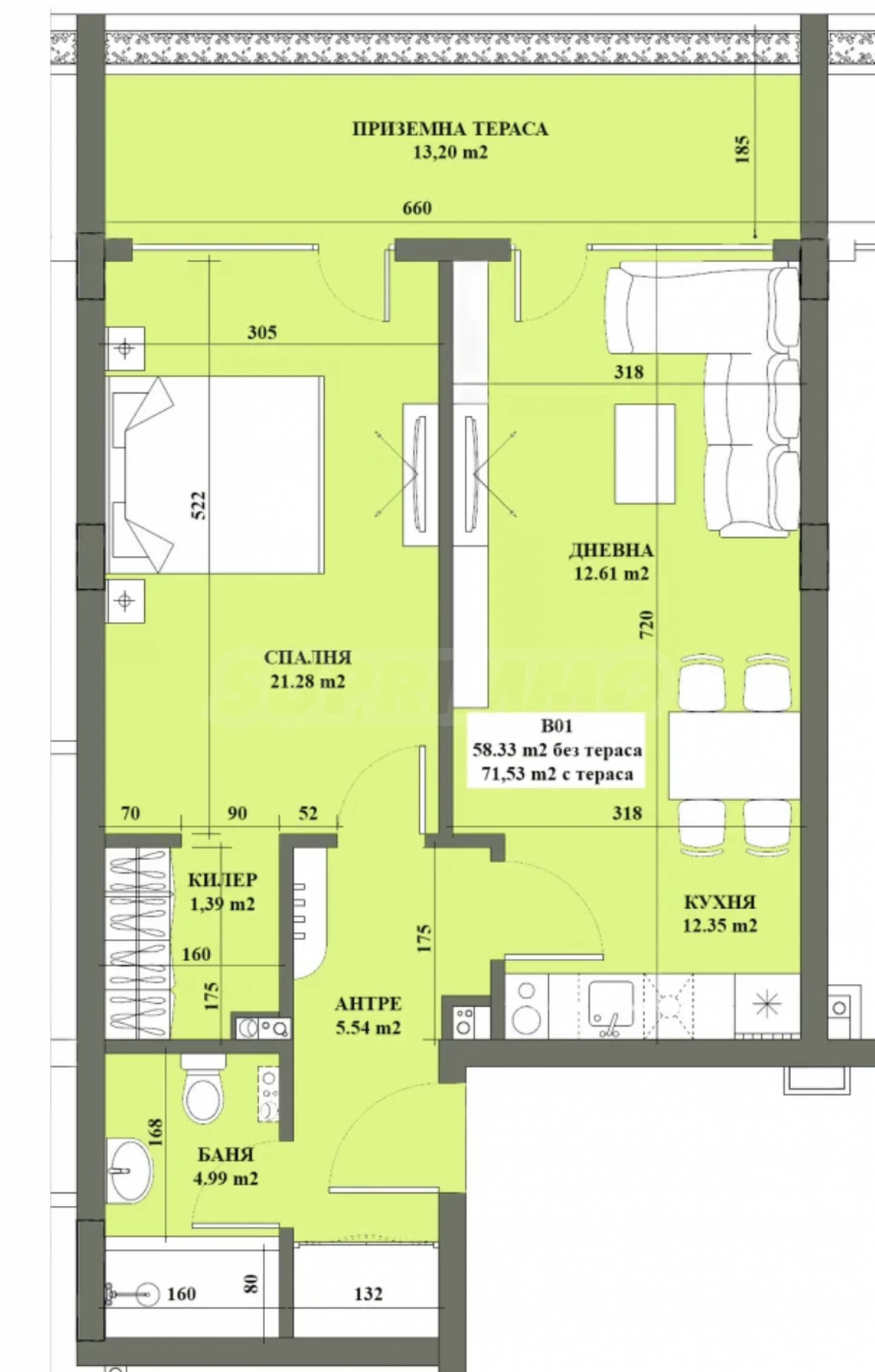 Prezentujemy apartament z jedną sypialnią i werandą w nowym, strzeżonym kompleksie, który łączy w sobie wysoką jakość wykonania, nowoczesne udogodnienia i spokojne otoczenie w harmonii z naturą. Nieruchomość znajduje się w prestiżowej dzielnicy „Manastirski Livadi – Iztok”, w pobliżu głównych ulic: bulwarów „Bulgaria” i „Todor Kableshkov”, a także z łatwym dostępem do South Parku i centrum handlowego Bulgaria Mall.