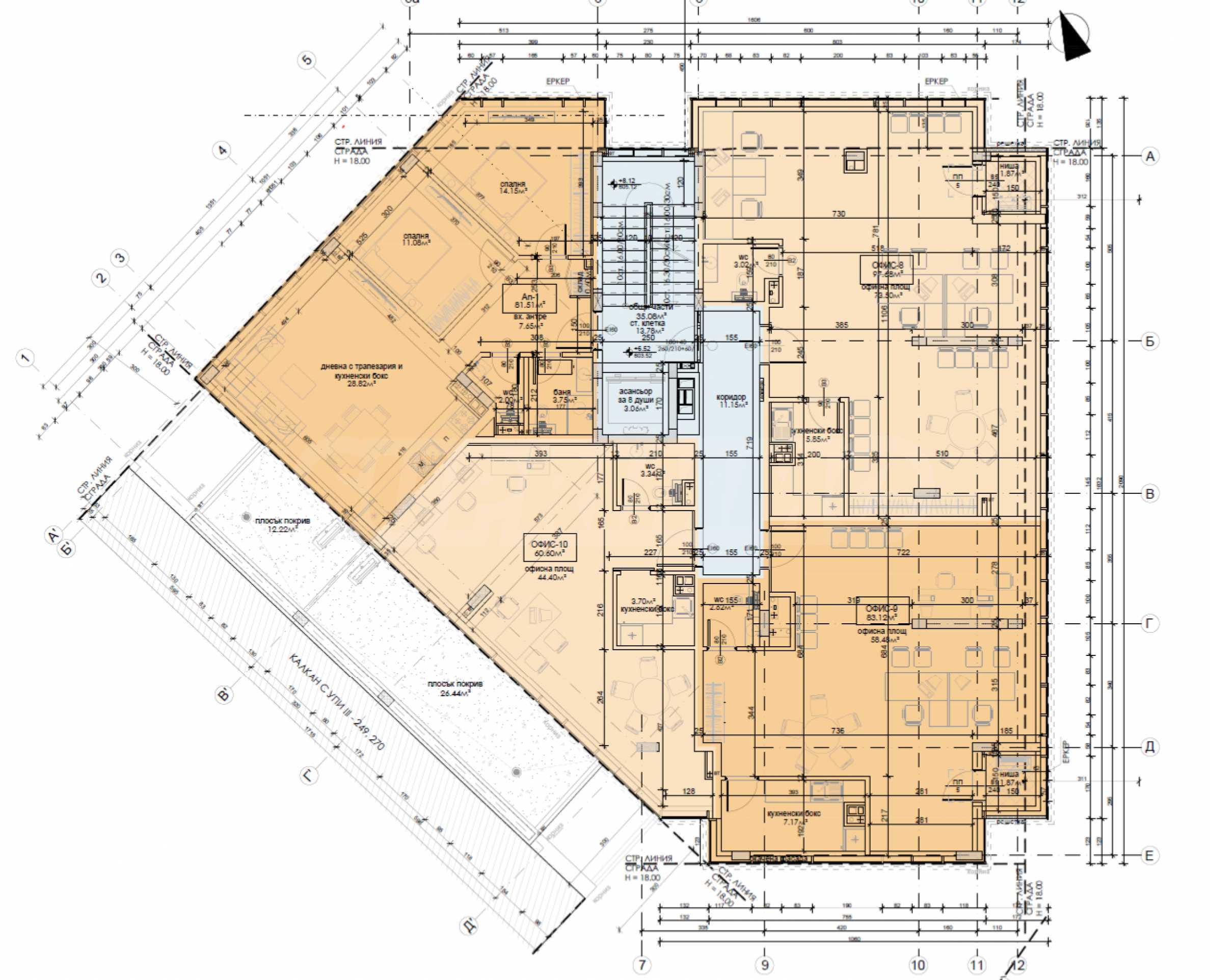 Budynek składa się z 7 pięter – 3 piętra zajmują biura, a 4 piętra to apartamenty.