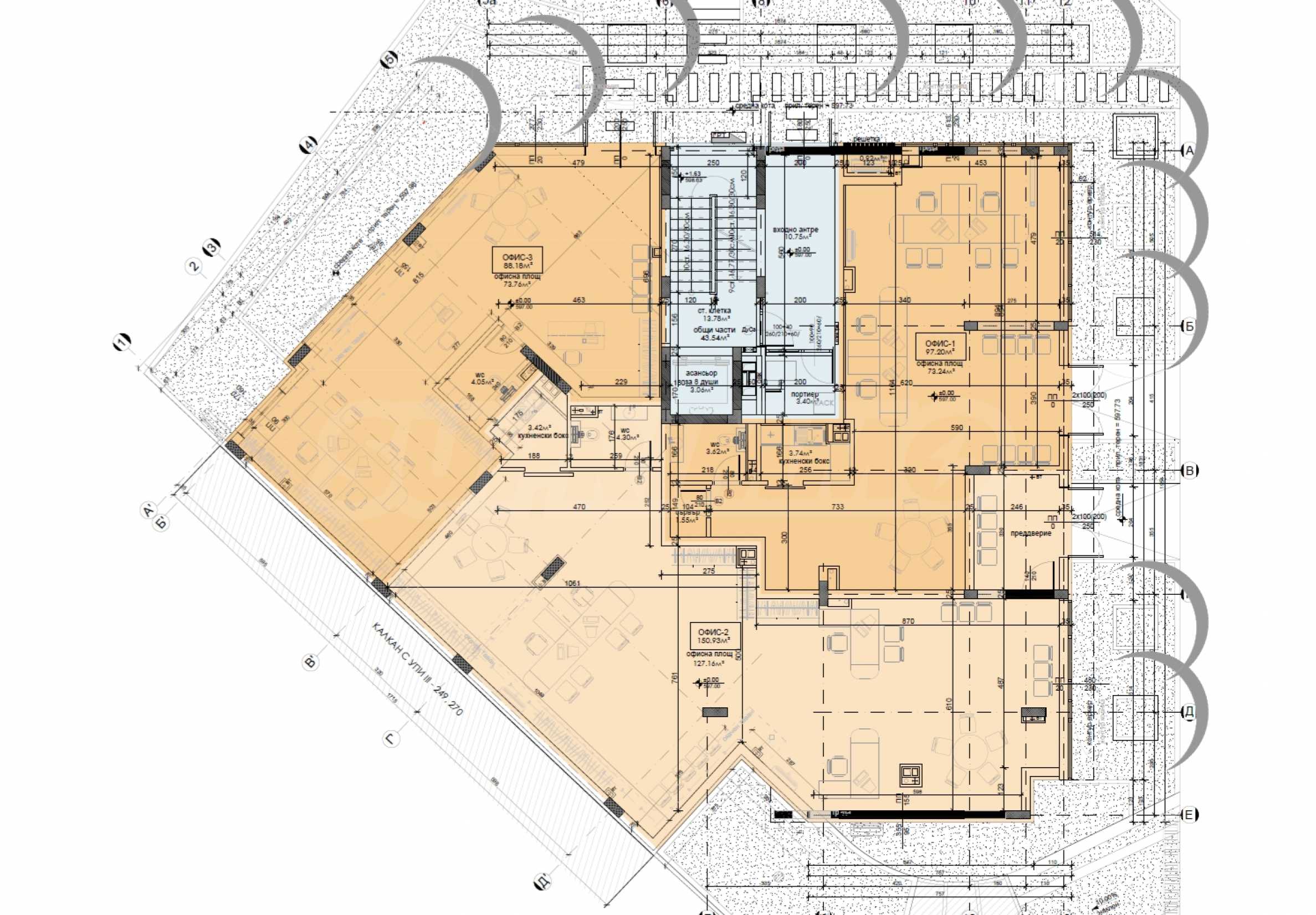 Powierzchnie biurowe w budynku różnią się wielkością, od 150 m² do 1100 m², na 3 kondygnacjach, w zależności od życzeń klienta. Mają one wysokie sufity o wysokości 3 m i są oferowane zgodnie z bułgarskimi standardami.