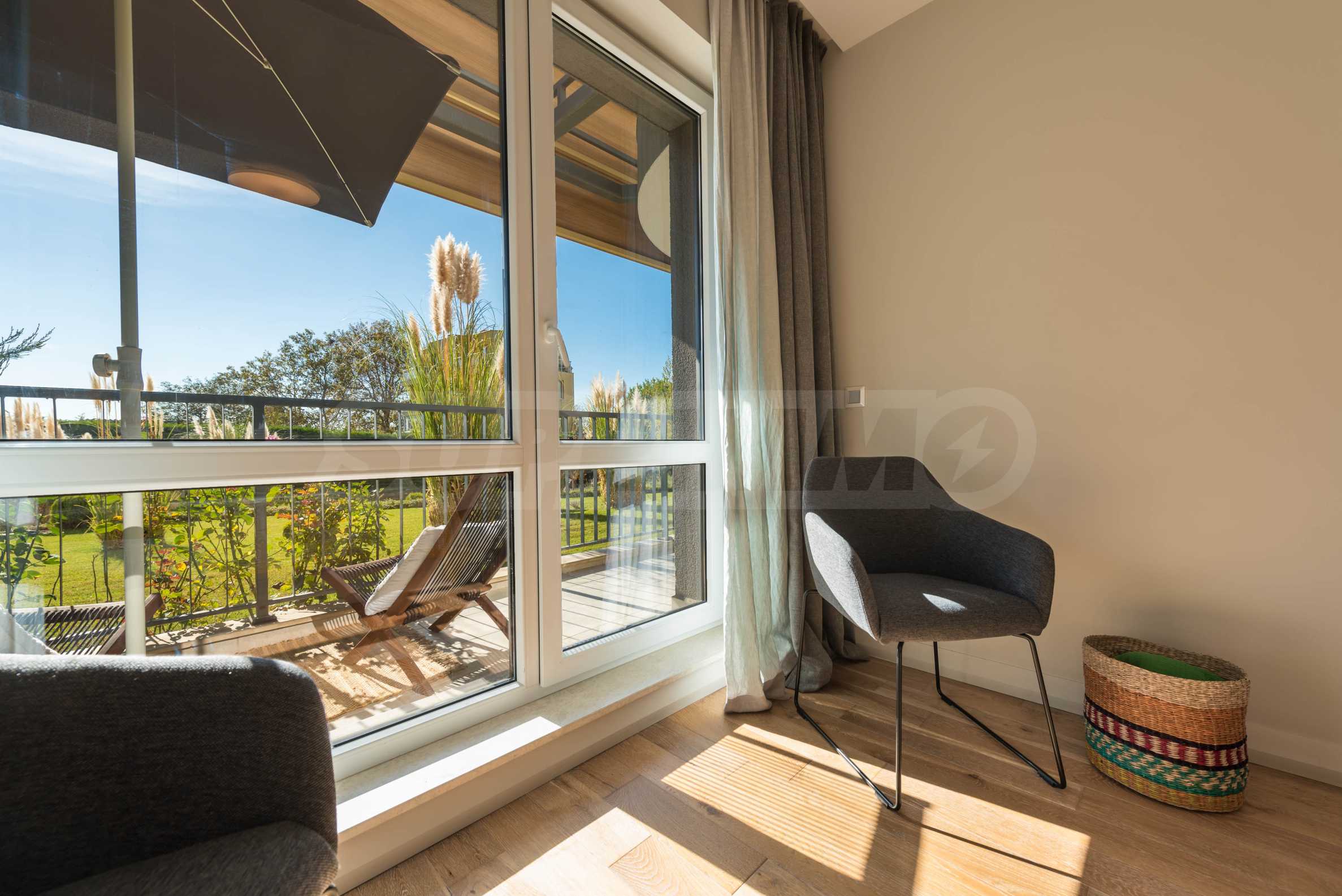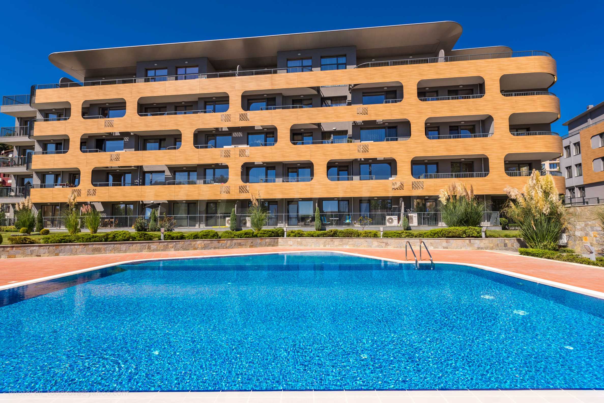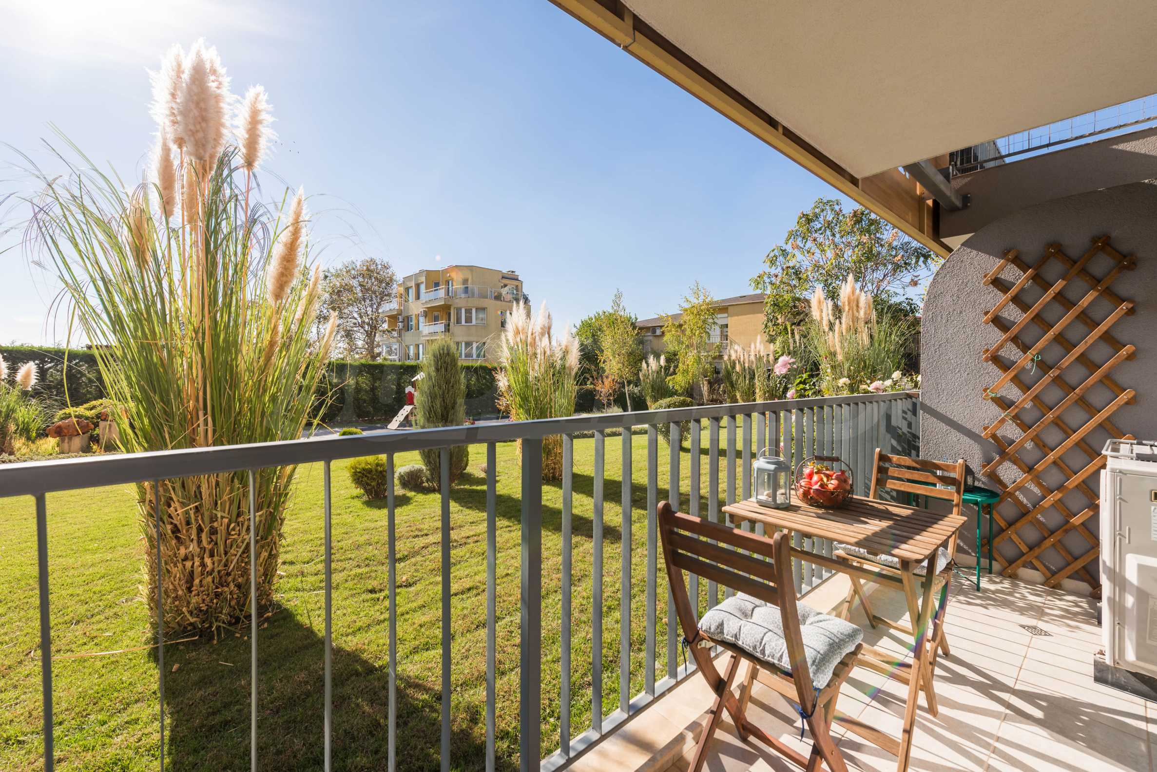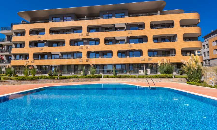 Nieruchomość o powierzchni całkowitej 71 m2 zlokalizowana jest na parterze 5-piętrowego budynku z ekspozycją południową na terenie zamkniętego kompleksu, blisko morza.