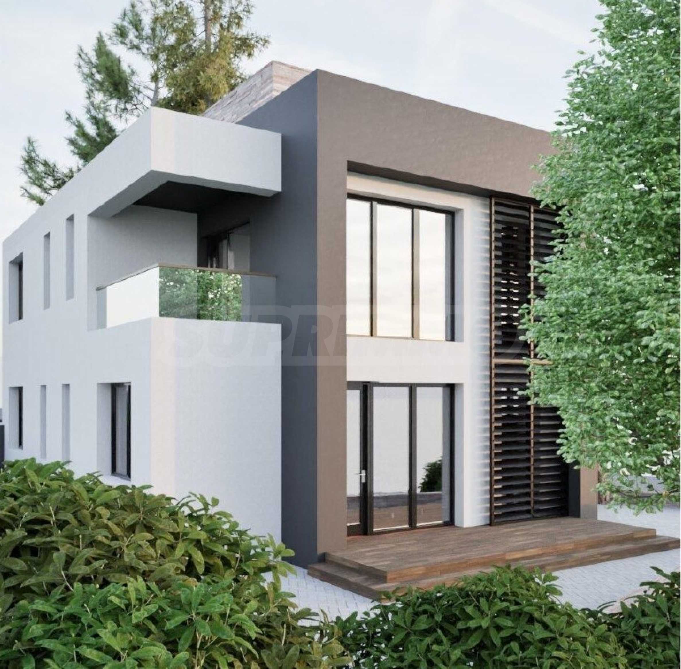 Oferujemy na sprzedaż wolnostojącą, dwupiętrową willę o nowoczesnym wyglądzie w miejscowości Laka, niedaleko Burgas i Pomorie.