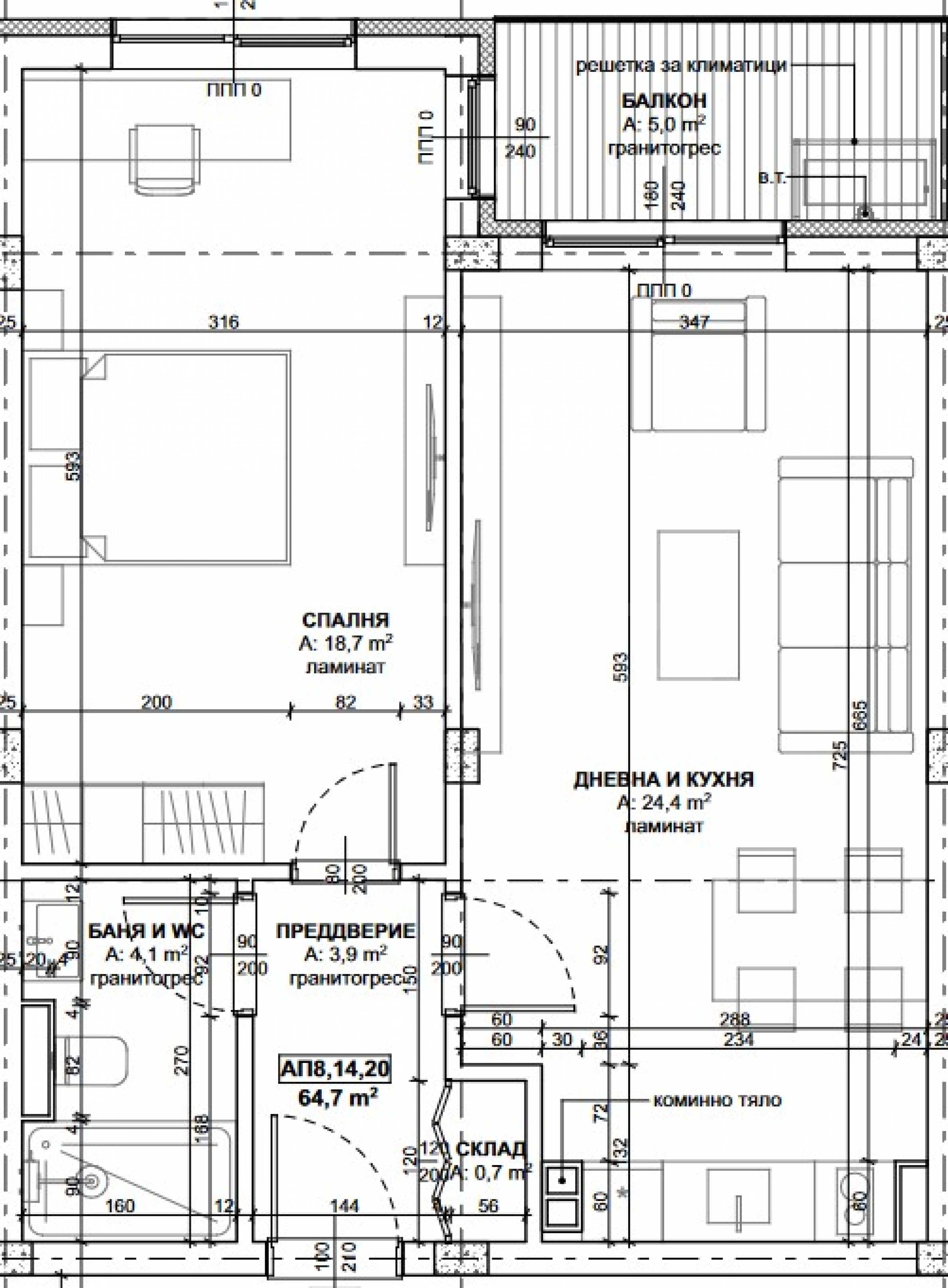 Nieruchomość o powierzchni 73,83 m2, zlokalizowana na 4 piętrze, z ekspozycją północ/zachód.