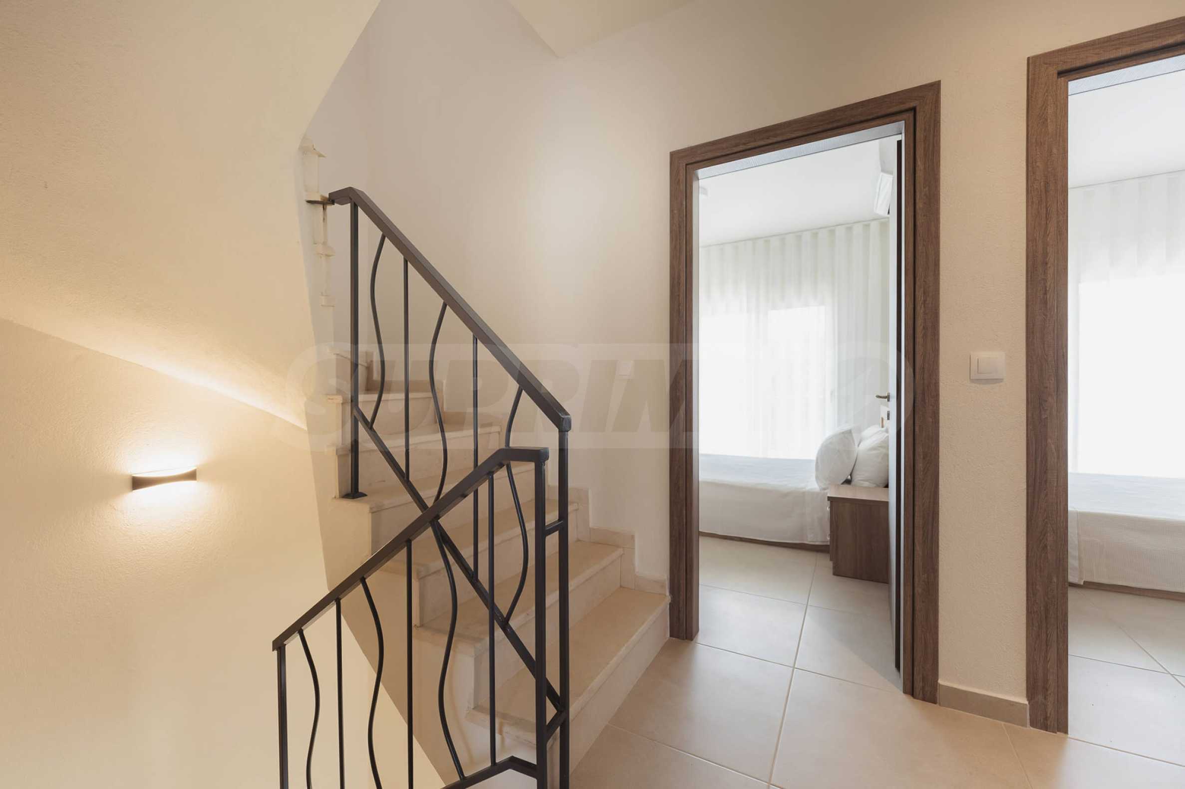 Rozłożony na dwóch piętrach, oferuje trzy przestronne sypialnie, zapewniające dużo miejsca dla rodziny i gości oraz trzy nowoczesne łazienki, zapewniające wygodę i praktyczność.