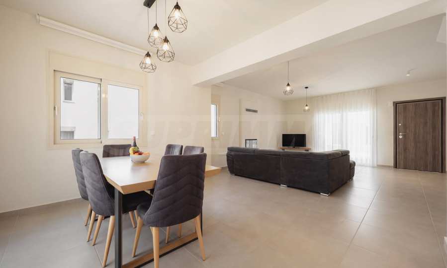 Ten nowo wybudowany dom o powierzchni 182 m2 oferuje nowoczesny komfort i styl kilka kroków od brzegu morza. Dom składa się z przestronnej części dziennej połączonej z aneksem kuchennym oraz jadalnią, co tworzy idealną przestrzeń do rodzinnych spotkań i przyjemnych wieczorów.