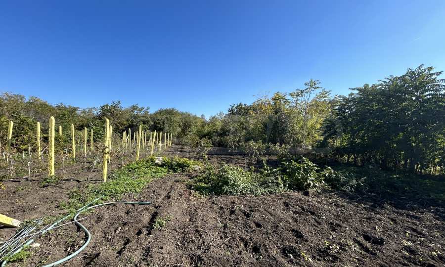 Nieruchomość posiada działkę zabudowaną o powierzchni 110 m2, z podwórkiem o powierzchni 1000 m2 z miejscem do grillowania, 2 miejscami parkingowymi oraz dużym ogrodem z sadami i winoroślą. W ogrodzie znajduje się studnia z wodą do podlewania.