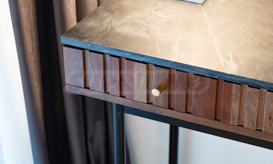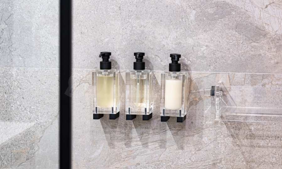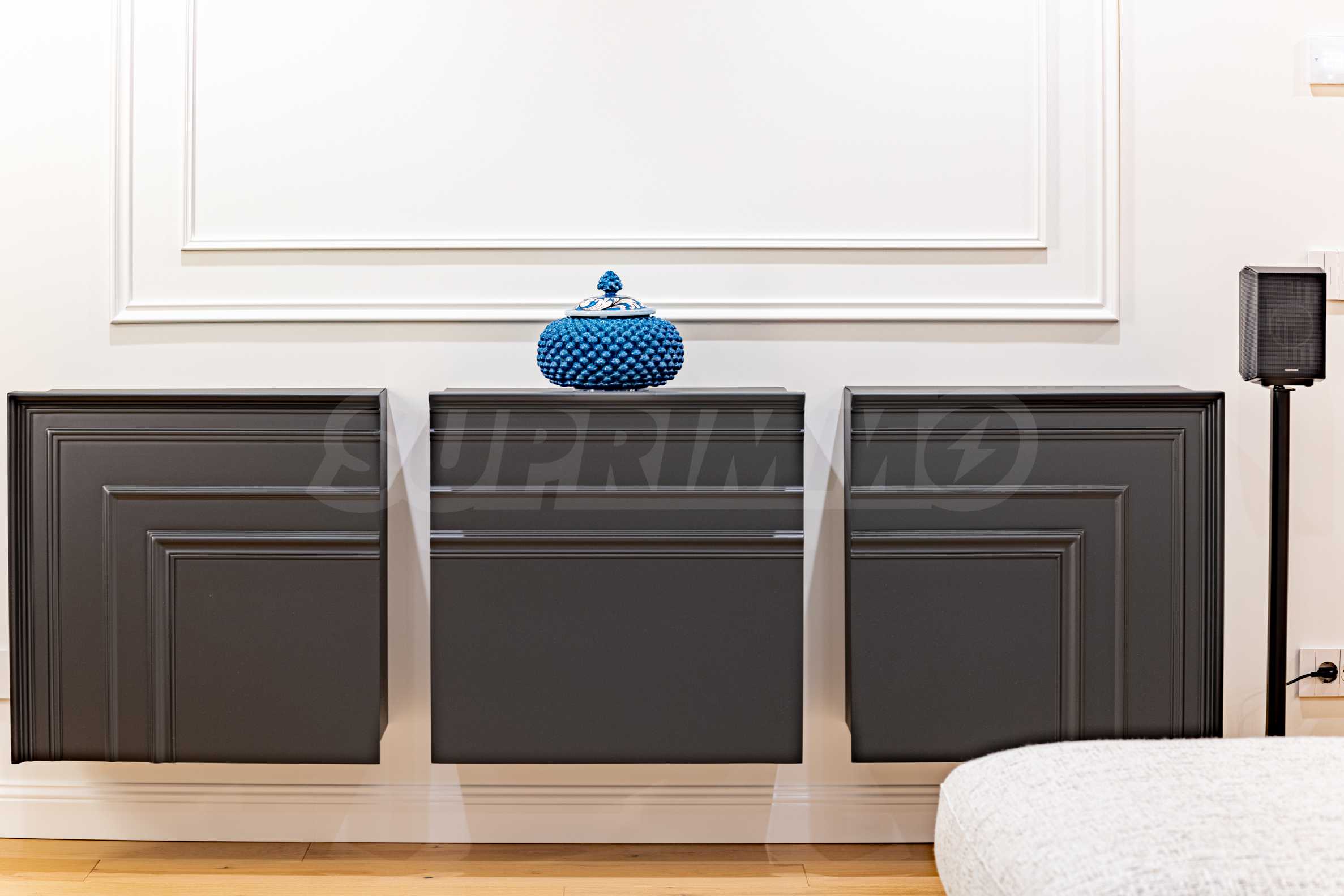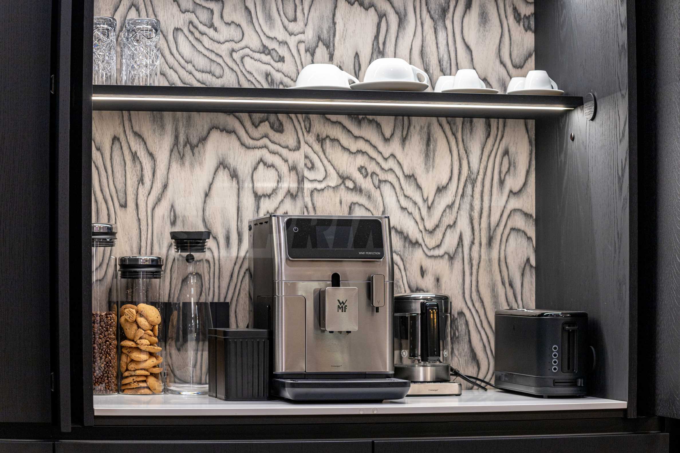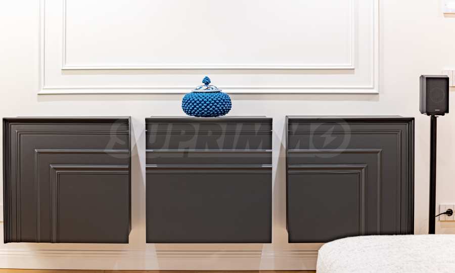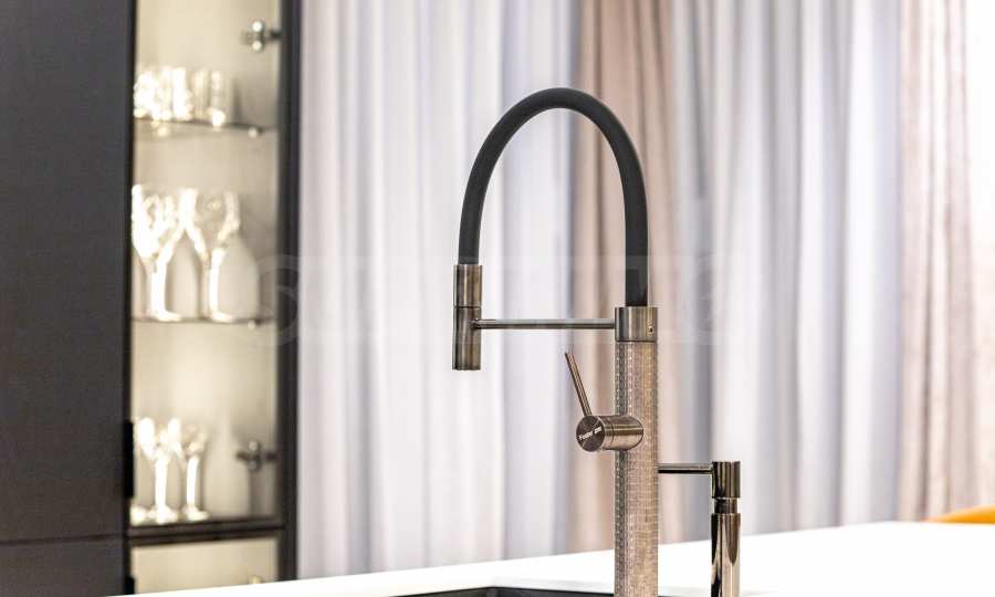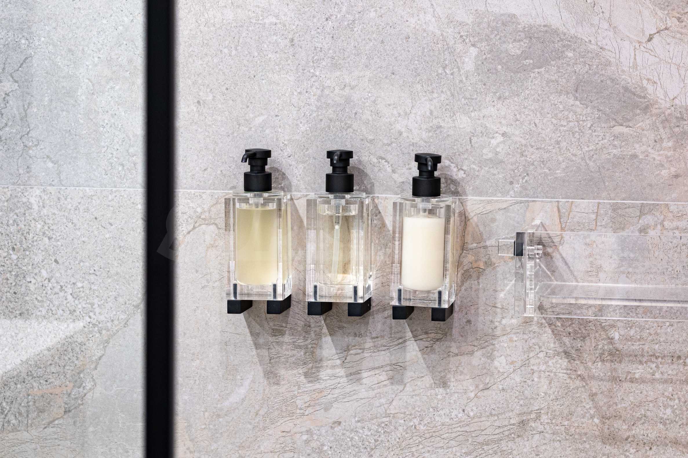 Mieszkanie wyróżnia się stylowym wnętrzem z wysokiej jakości włoskimi materiałami wykończeniowymi:
