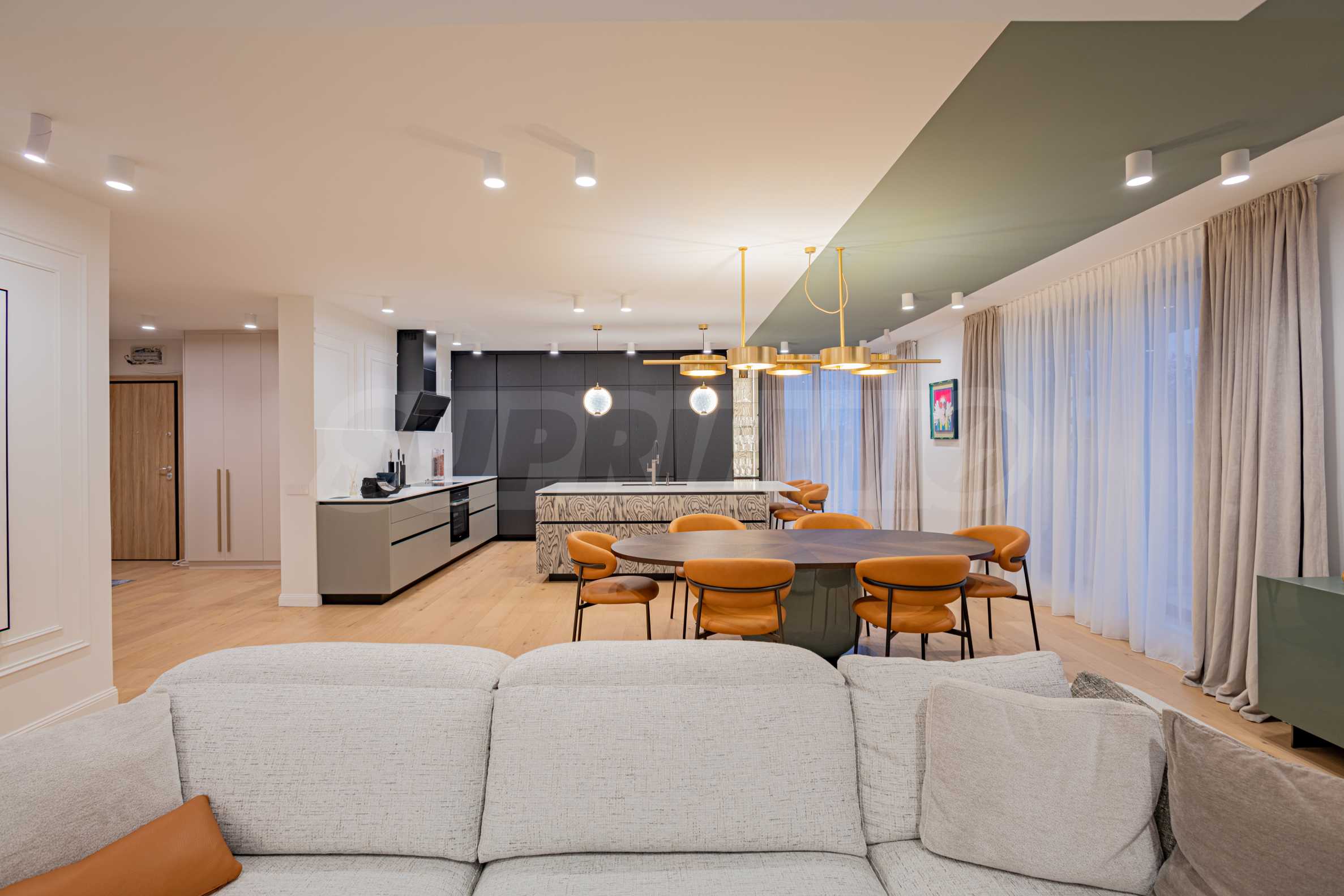 Wielopokojowe mieszkanie z wyjątkowym, designerskim akcentem w dzielnicy Dragalevtsi. Mieszkanie znajduje się w budynku w cichym i spokojnym miejscu przy ul. „Czysty strumień”. Budynek posiada nowoczesny design i posiada pozwolenie na użytkowanie od 2023 roku. Okolica jest łatwo dostępna i posiada elastyczne linie komunikacyjne. Do centralnej części miasta można dojechać ulicą Blvd. „Czarny Szczyt”, który skomunikuje się z obwodnicą, co stanowi połączenie z peryferiami miasta.