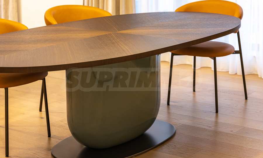 designerski stół do jadalni Pianka, sześć krzeseł Caligaris