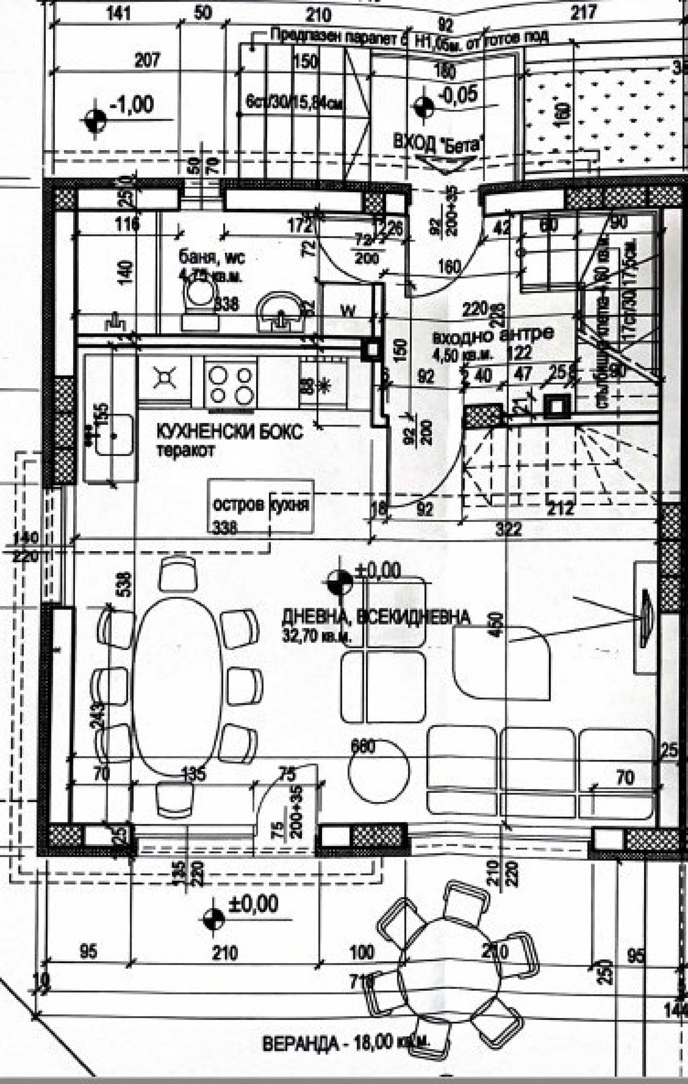 - pierwszy poziom - od 55,50 m2 - salon z jadalnią i aneksem kuchennym o powierzchni 32,50 m2, zadaszona weranda, łazienka z WC, pomieszczenie gospodarcze;