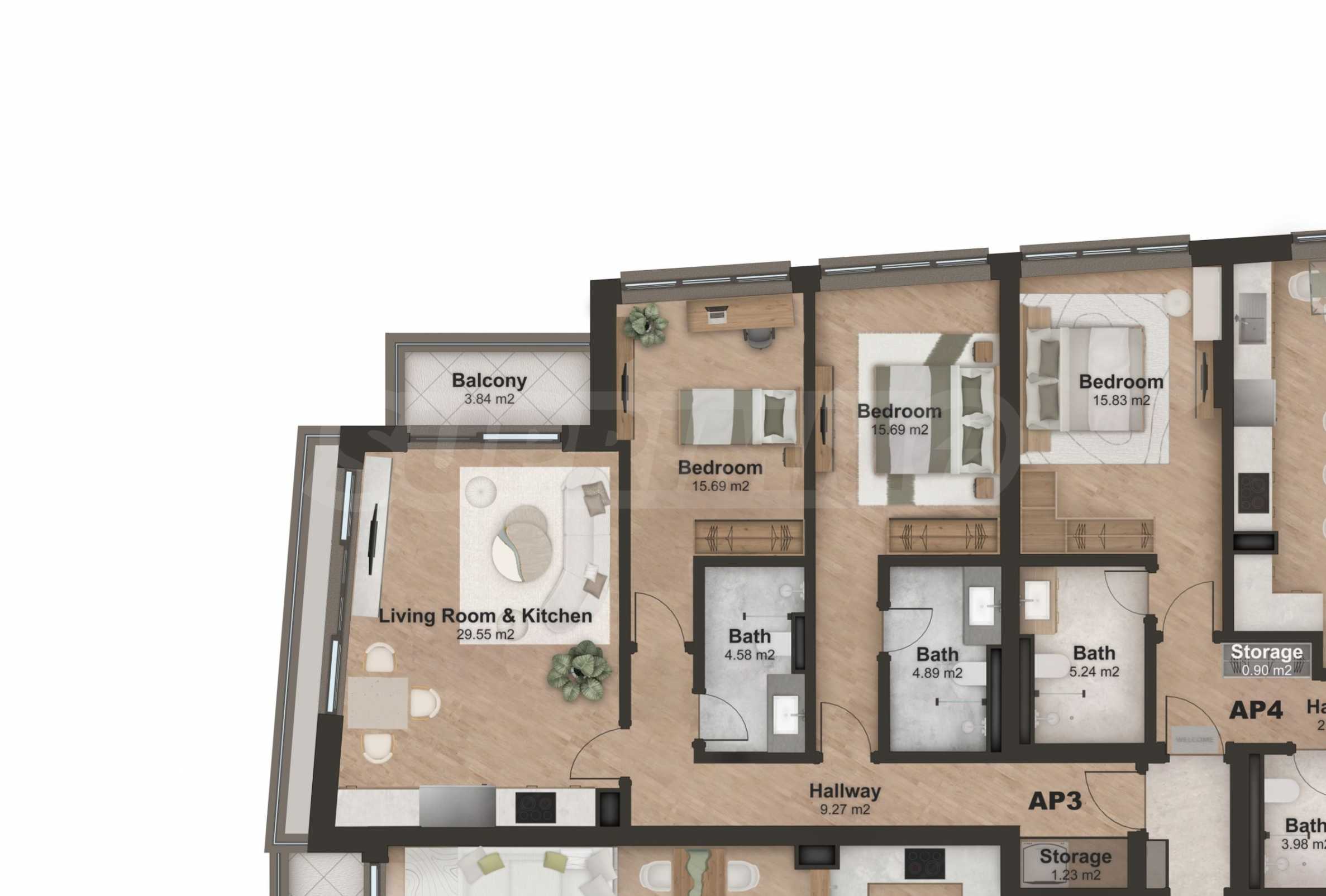 Prezentujemy na sprzedaż przestronne mieszkanie z trzema sypialniami w nowym, butikowym budynku, stworzonym z myślą o zrównoważonym rozwoju i komforcie.