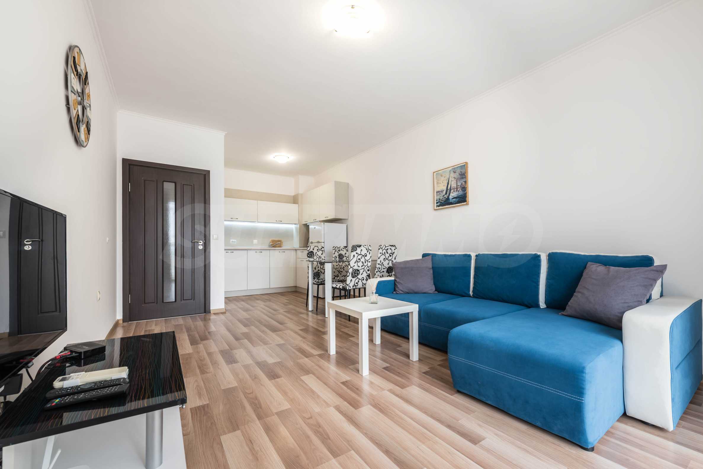 Prezentujemy dwupokojowe mieszkanie na zamkniętym osiedlu w pierwszej linii do morza, w miejscowości Shkorpilovtsi. Wieś znana jest z pięknej przyrody, łączącej masyw leśny i dużą plażę. Teren ten należy do obszaru chronionego ze względu na ochronę siedlisk i środowiska. Tutaj możesz cieszyć się świeżym powietrzem, naturalnymi elementami i czystym morzem.