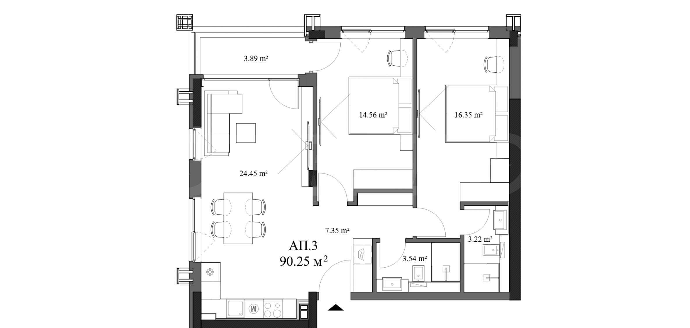- dwie przytulne sypialnie o powierzchni 16,35 m2 i 14,56 m2;