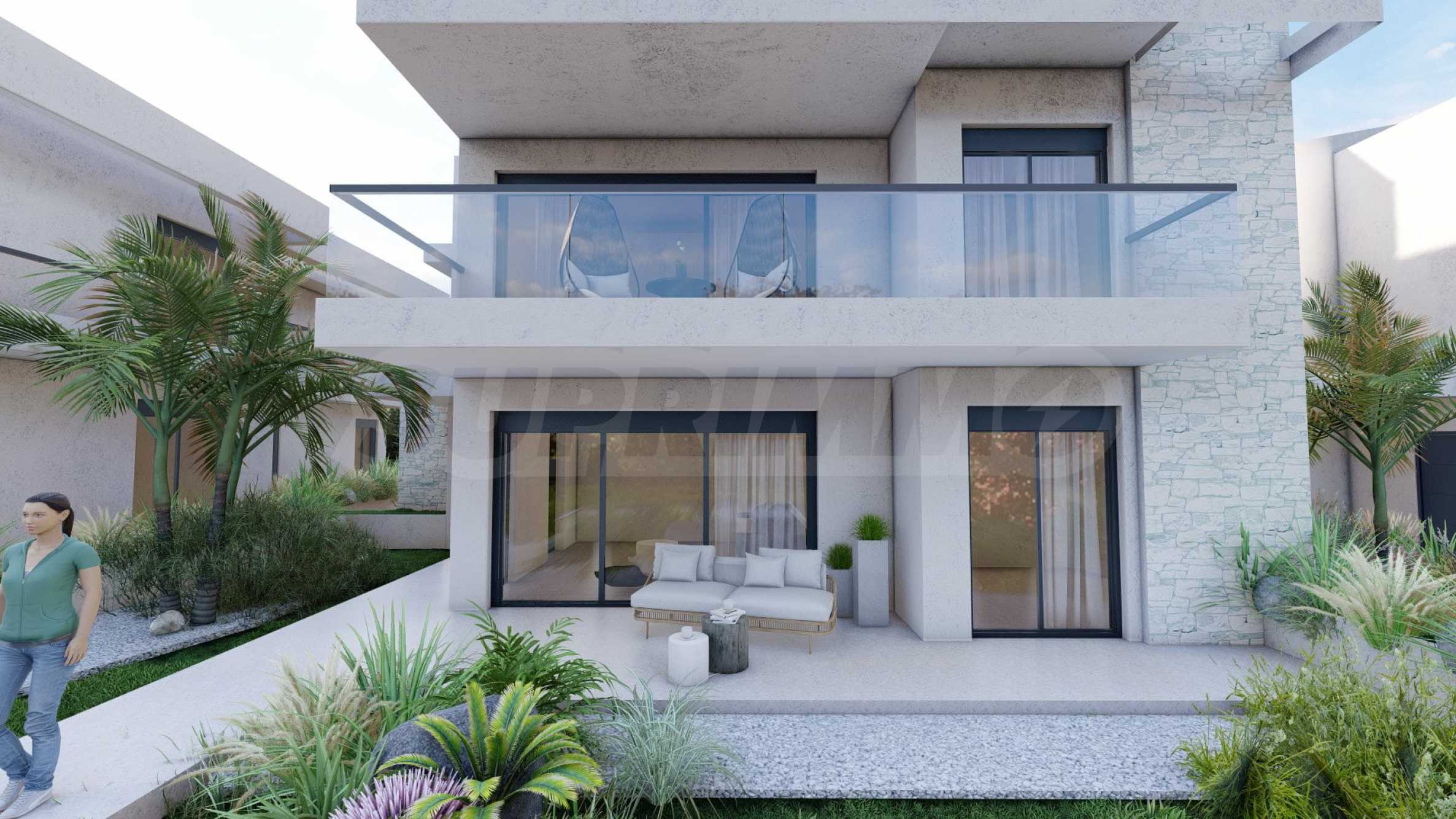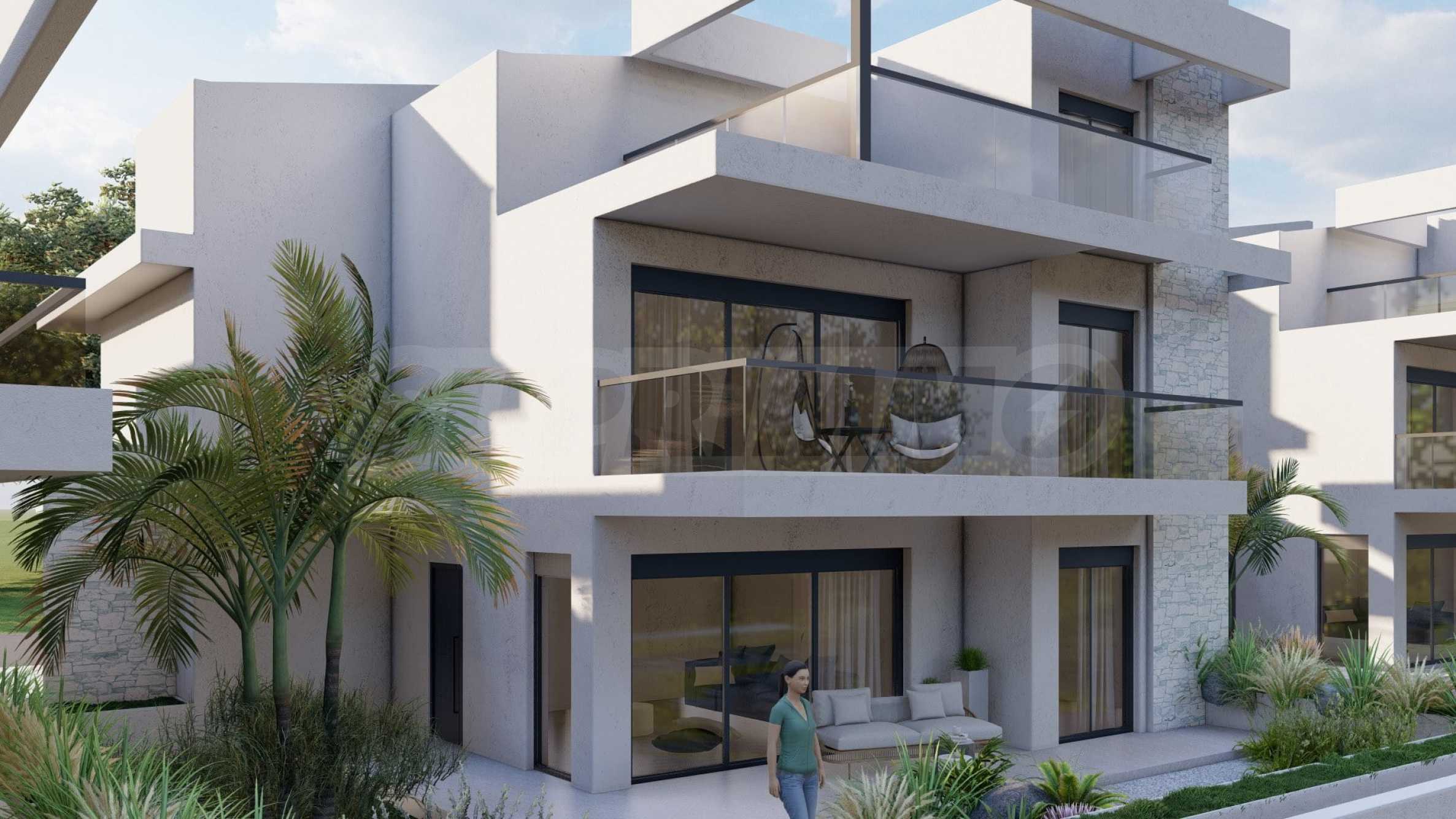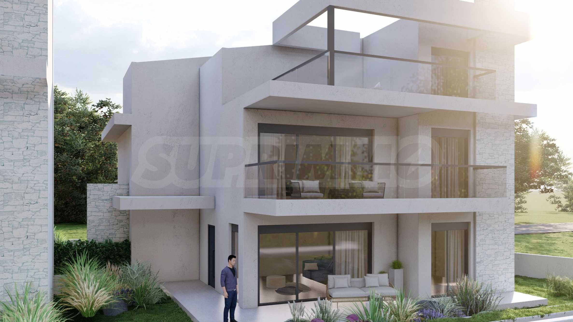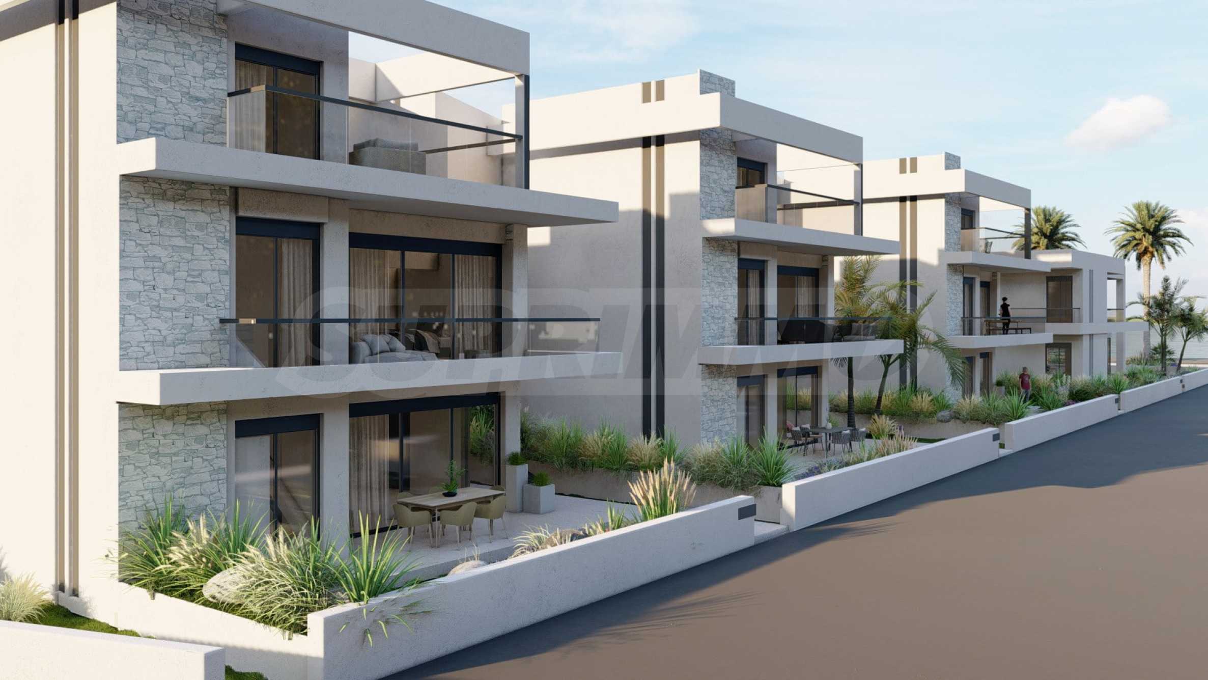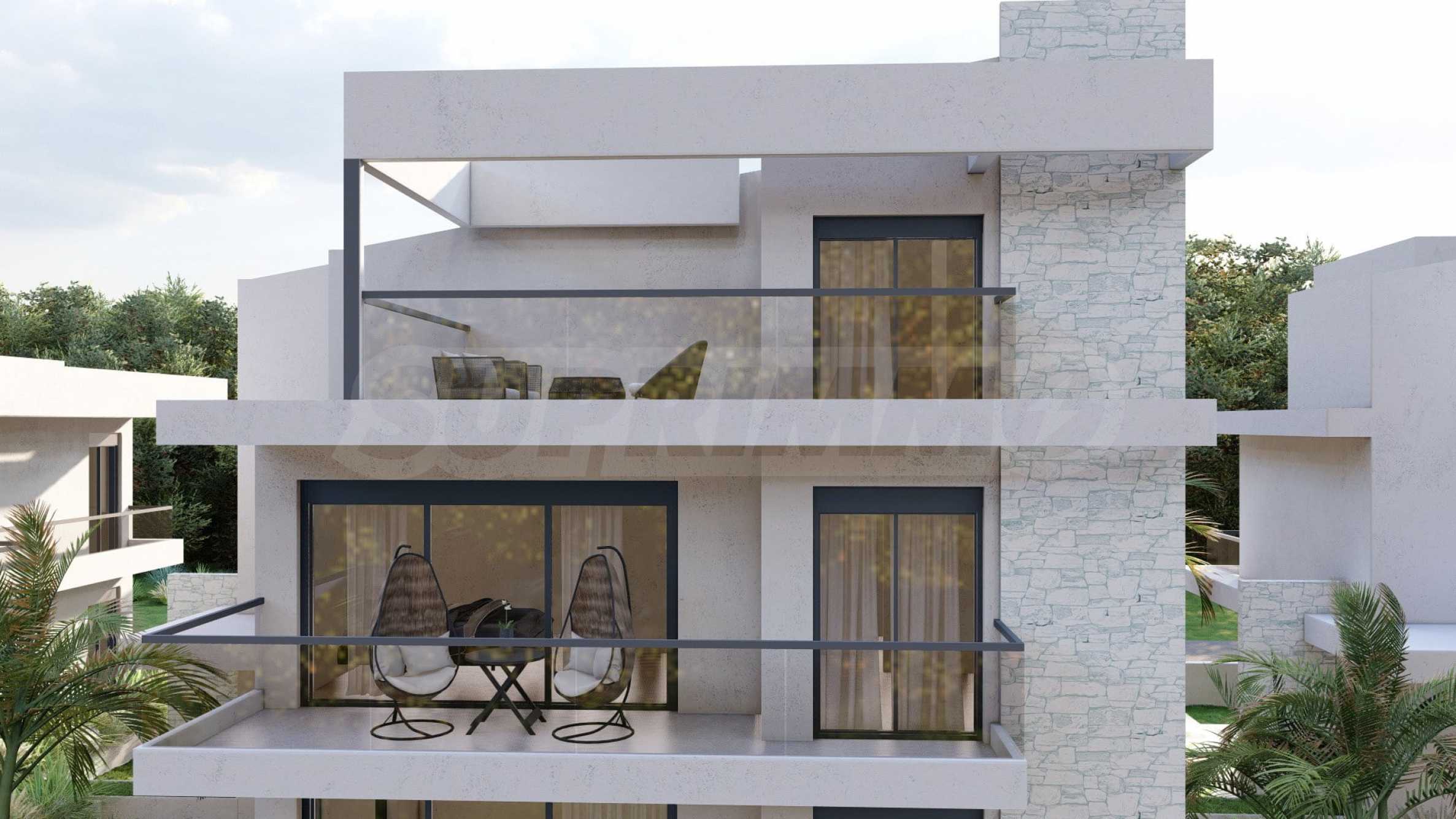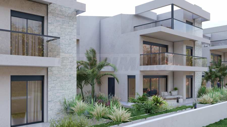 Marina Sea View łączy w sobie elegancję i nowoczesny design, tworząc doskonałą letnią atmosferę. Każdy szczegół został zaprojektowany z niezwykłą starannością, tworząc bajkowy klimat, który zachwyca zmysły. Zewnętrzna część budynku jest czysta, z prostymi liniami i dominującymi elementami kamiennymi, które doskonale komponują się z otoczeniem. Pomieszczenia w domach są przestronne i dobrze doświetlone dzięki dużym oknom. Wreszcie, każdy dom posiada własną werandę, a przestrzenie pomiędzy posesjami ozdobione są bogatą architekturą, zaprojektowaną tak, aby zapewnić wspaniałe warunki do wypoczynku i zabaw dla dzieci.