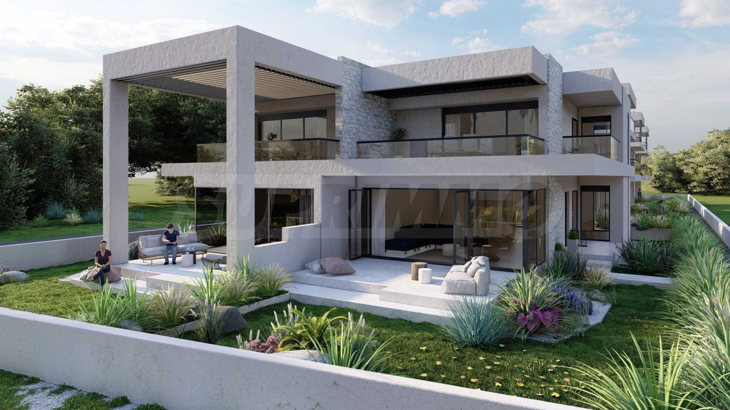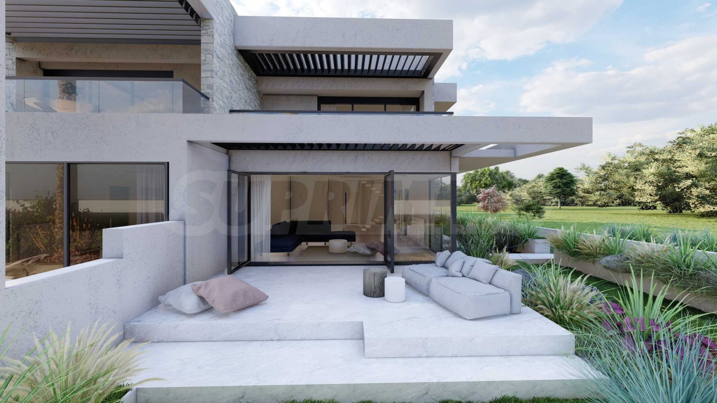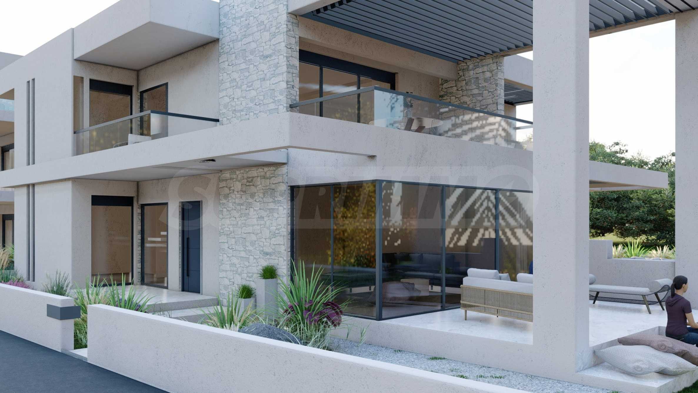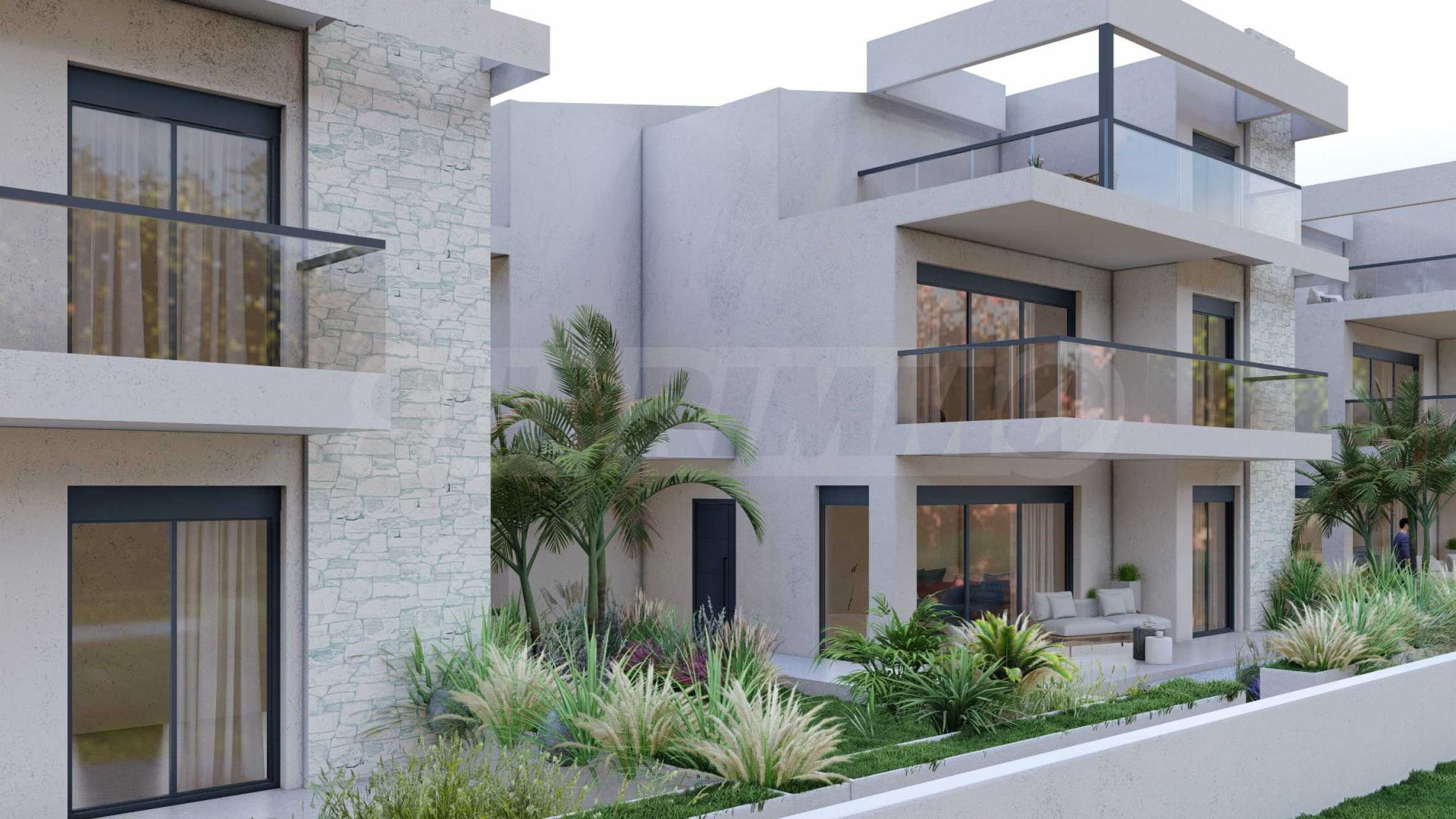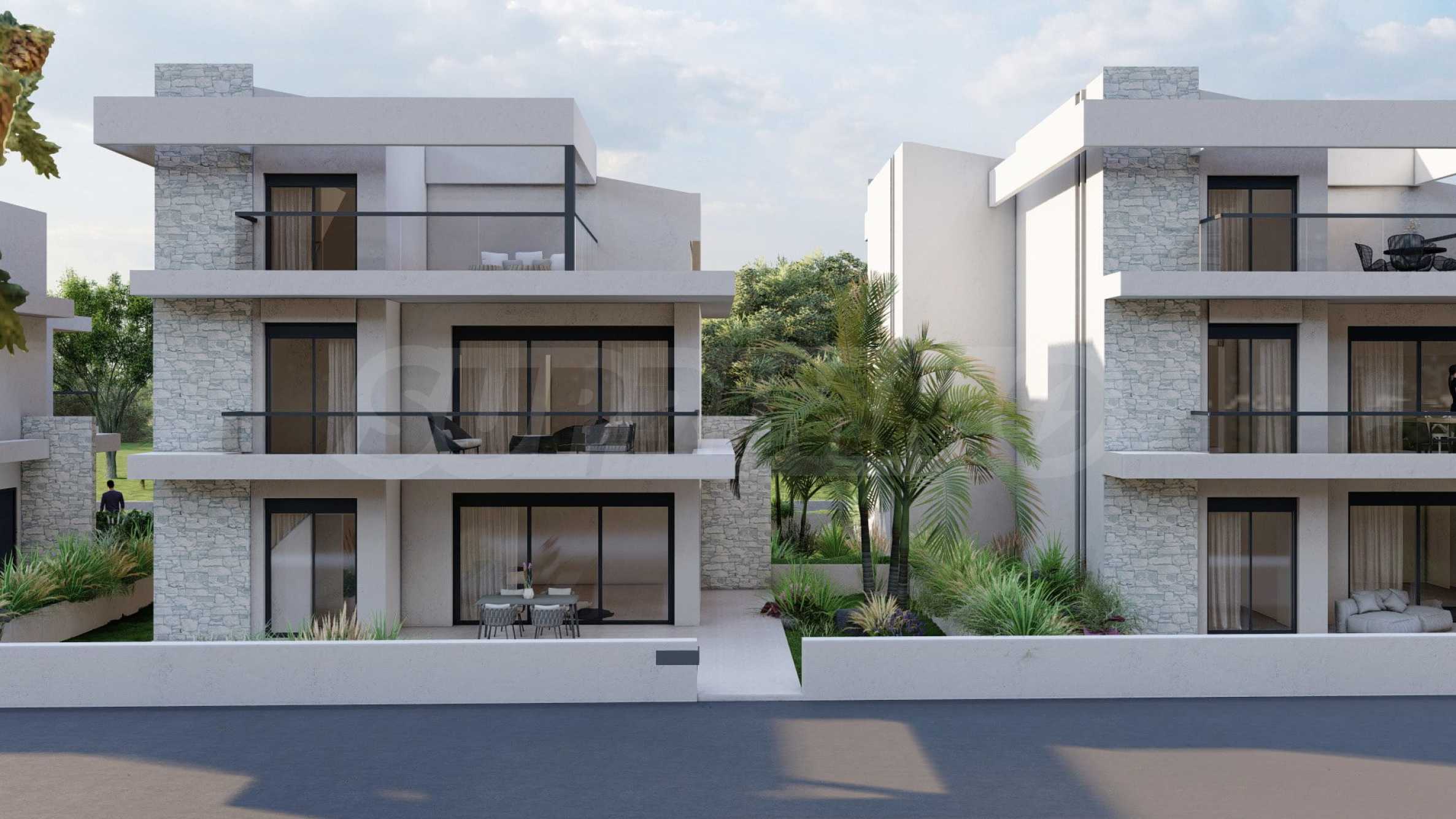 Marina Sea View łączy w sobie elegancję i nowoczesny design, tworząc doskonałą letnią atmosferę. Każdy szczegół został zaprojektowany z niezwykłą starannością, tworząc bajkowy klimat, który zachwyca zmysły. Zewnętrzna część budynku jest czysta, z prostymi liniami i dominującymi elementami kamiennymi, które doskonale komponują się z otoczeniem. Pomieszczenia w domach są przestronne i dobrze doświetlone dzięki dużym oknom. Wreszcie, każdy dom posiada własną werandę, a przestrzenie pomiędzy posesjami ozdobione są bogatą architekturą, zaprojektowaną tak, aby zapewnić wspaniałe warunki do wypoczynku i zabaw dla dzieci.