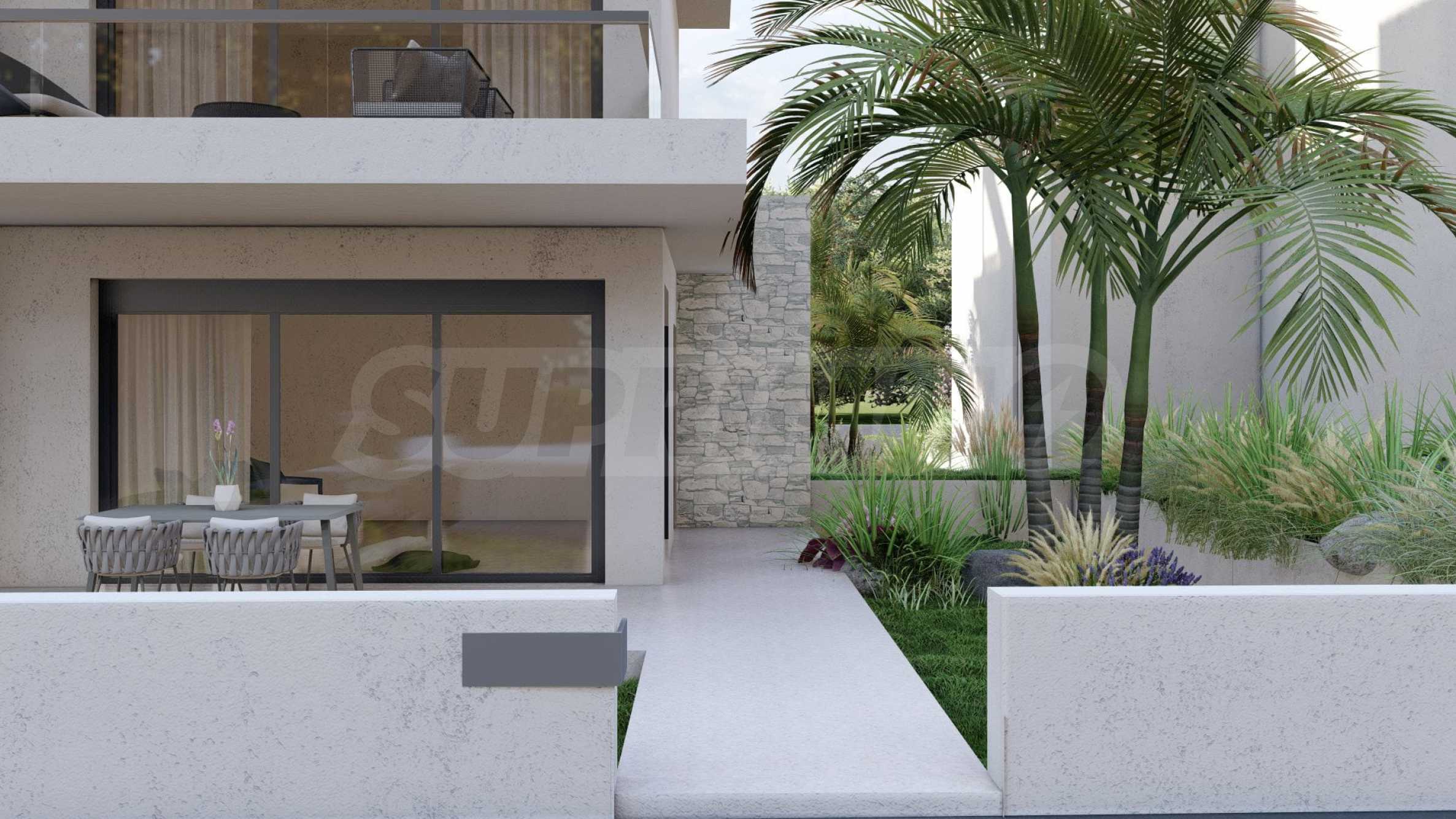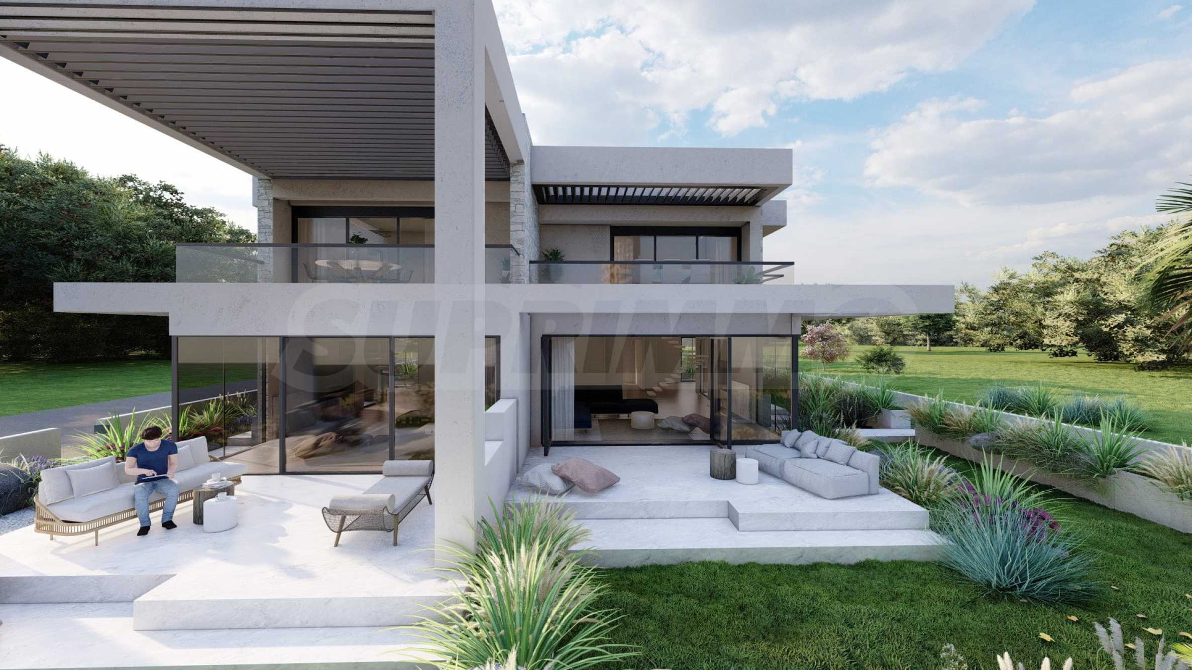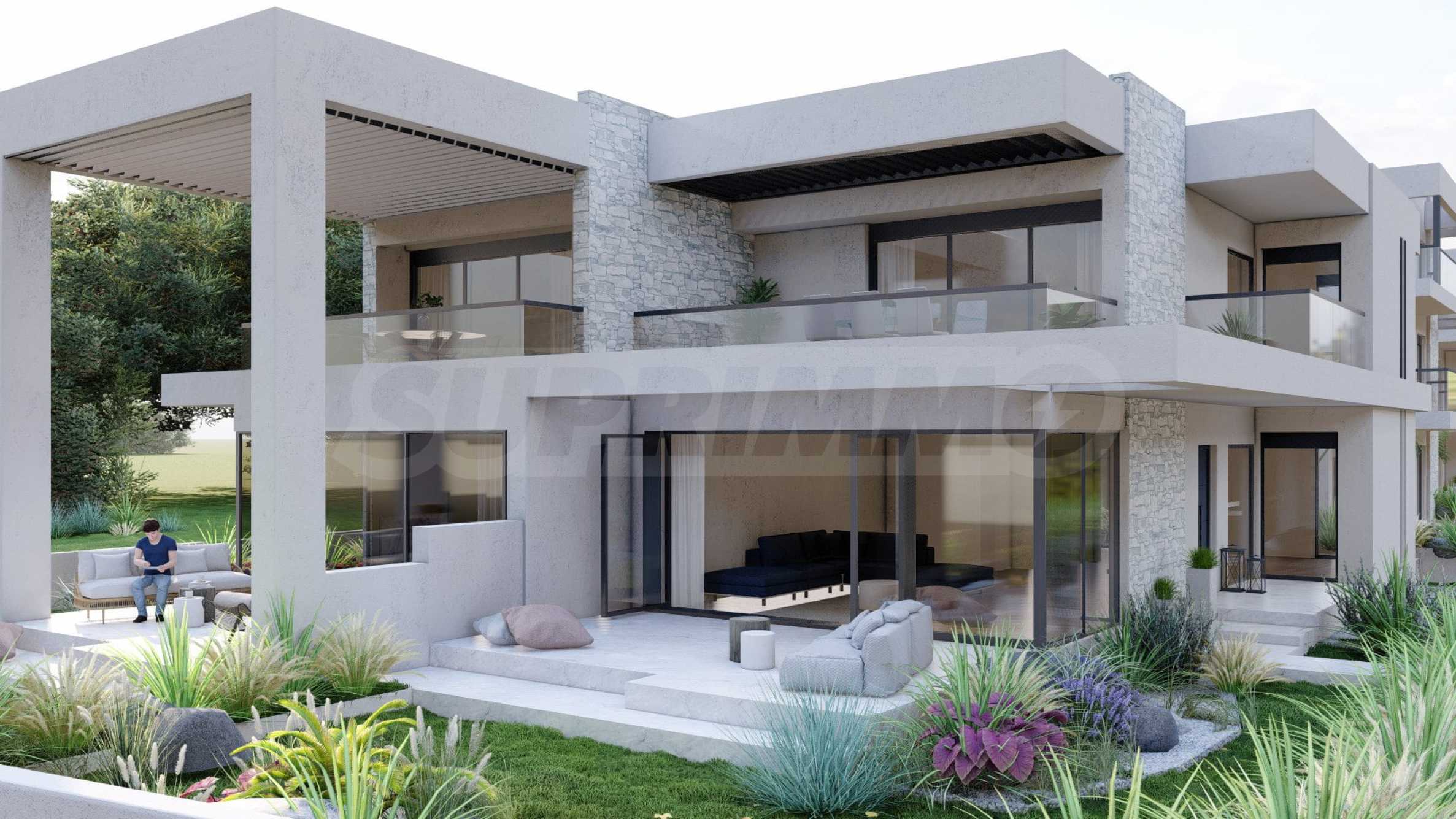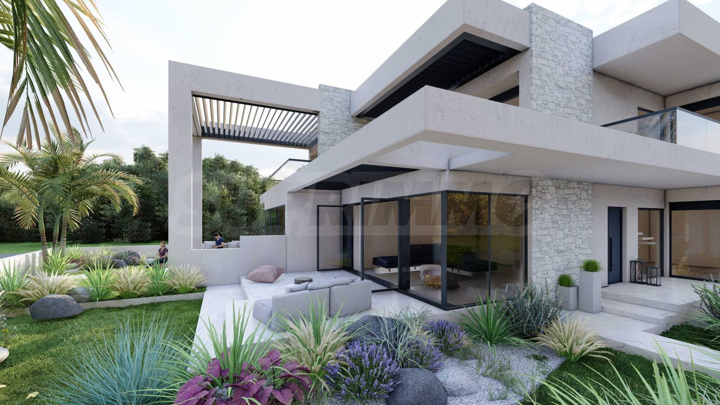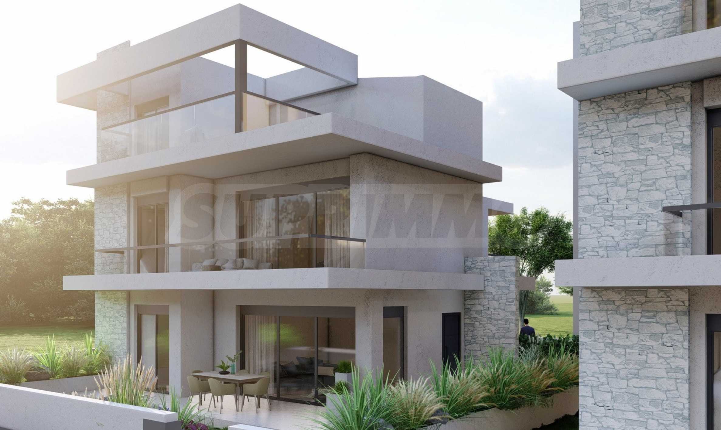 Marina Sea View łączy w sobie elegancję i nowoczesny design, tworząc doskonałą letnią atmosferę. Każdy szczegół został zaprojektowany z niezwykłą starannością, tworząc bajkowy klimat, który zachwyca zmysły. Zewnętrzna część budynku jest czysta, z prostymi liniami i dominującymi elementami kamiennymi, które doskonale komponują się z otoczeniem. Pomieszczenia w domach są przestronne i dobrze doświetlone dzięki dużym oknom. Wreszcie, każdy dom posiada własną werandę, a przestrzenie pomiędzy posesjami ozdobione są bogatą architekturą, zaprojektowaną tak, aby zapewnić wspaniałe warunki do wypoczynku i zabaw dla dzieci.
