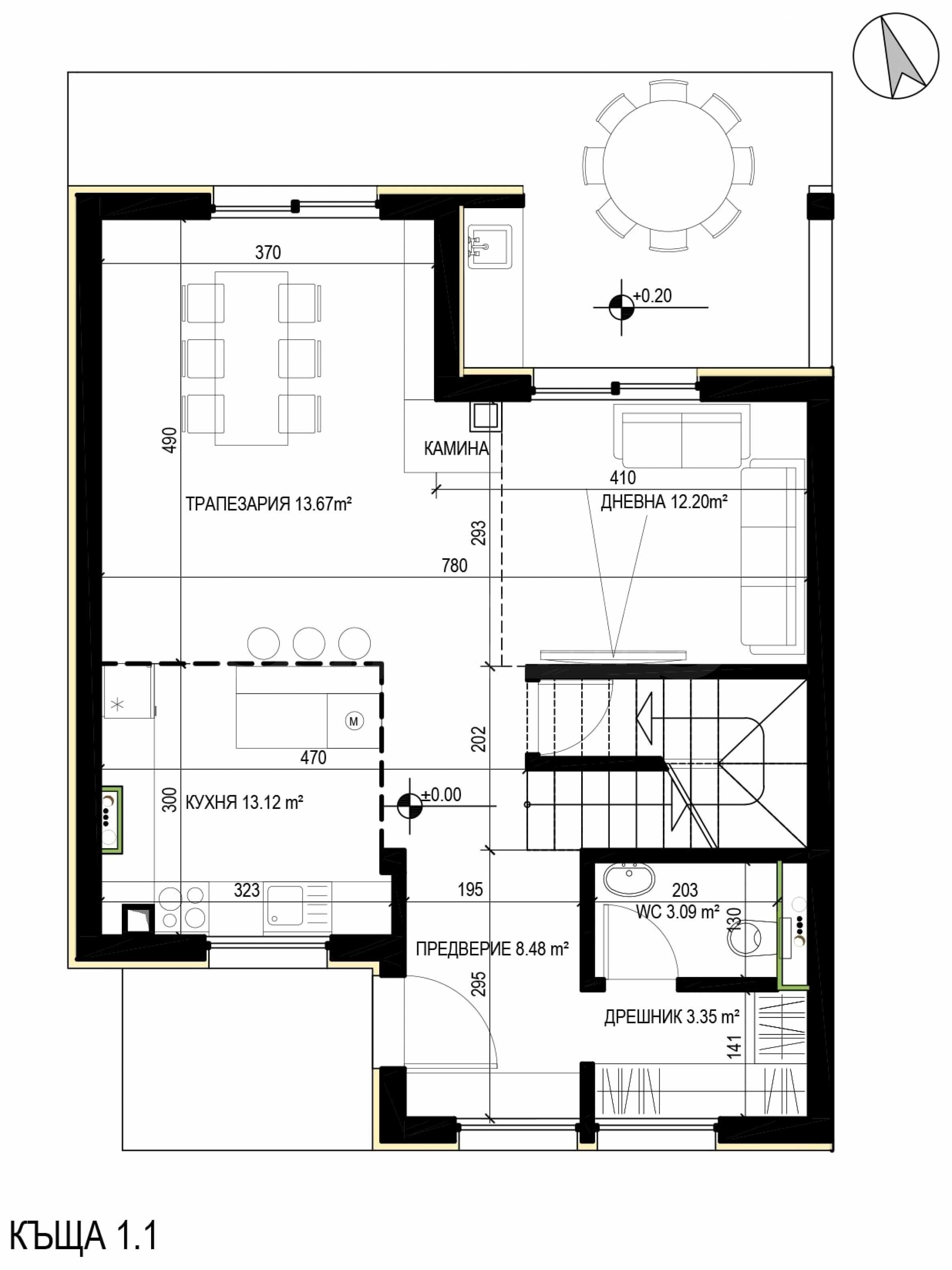 - Na parterze (wysokość ±0,00) znajduje się salon z emporium w części rekreacyjnej o wysokości do trzeciego piętra, jadalnia i kuchnia połączona z zewnętrznym tarasem oraz toaleta; podwórko i miejsce na grilla;