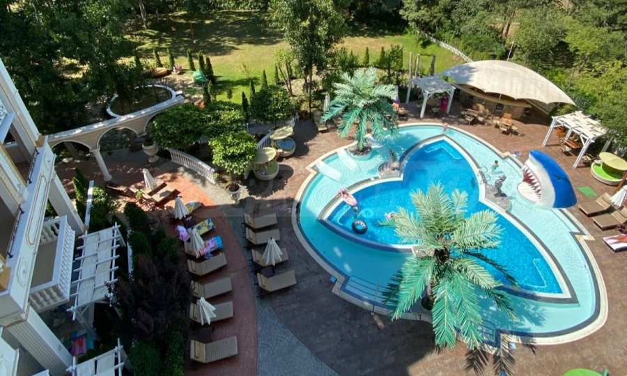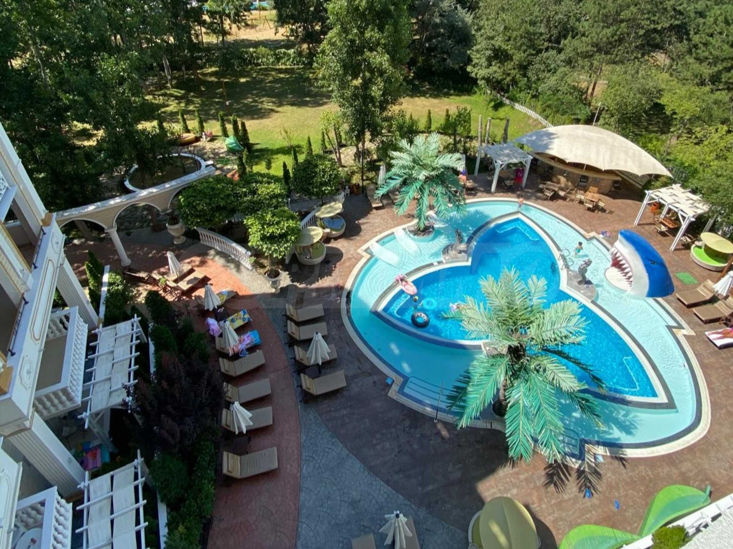 - odkryty basen z wodospadem i kącikiem dla dzieci;