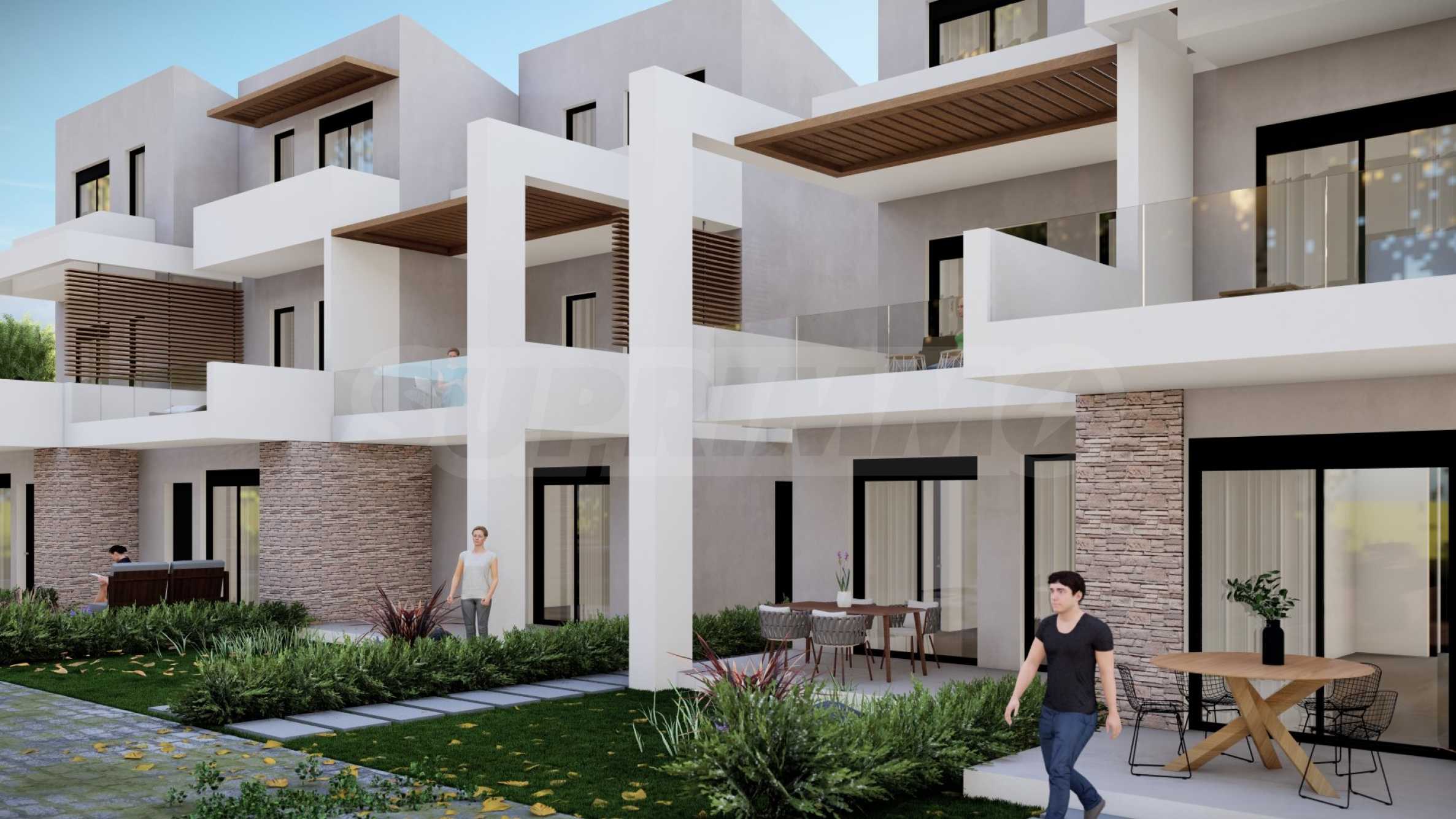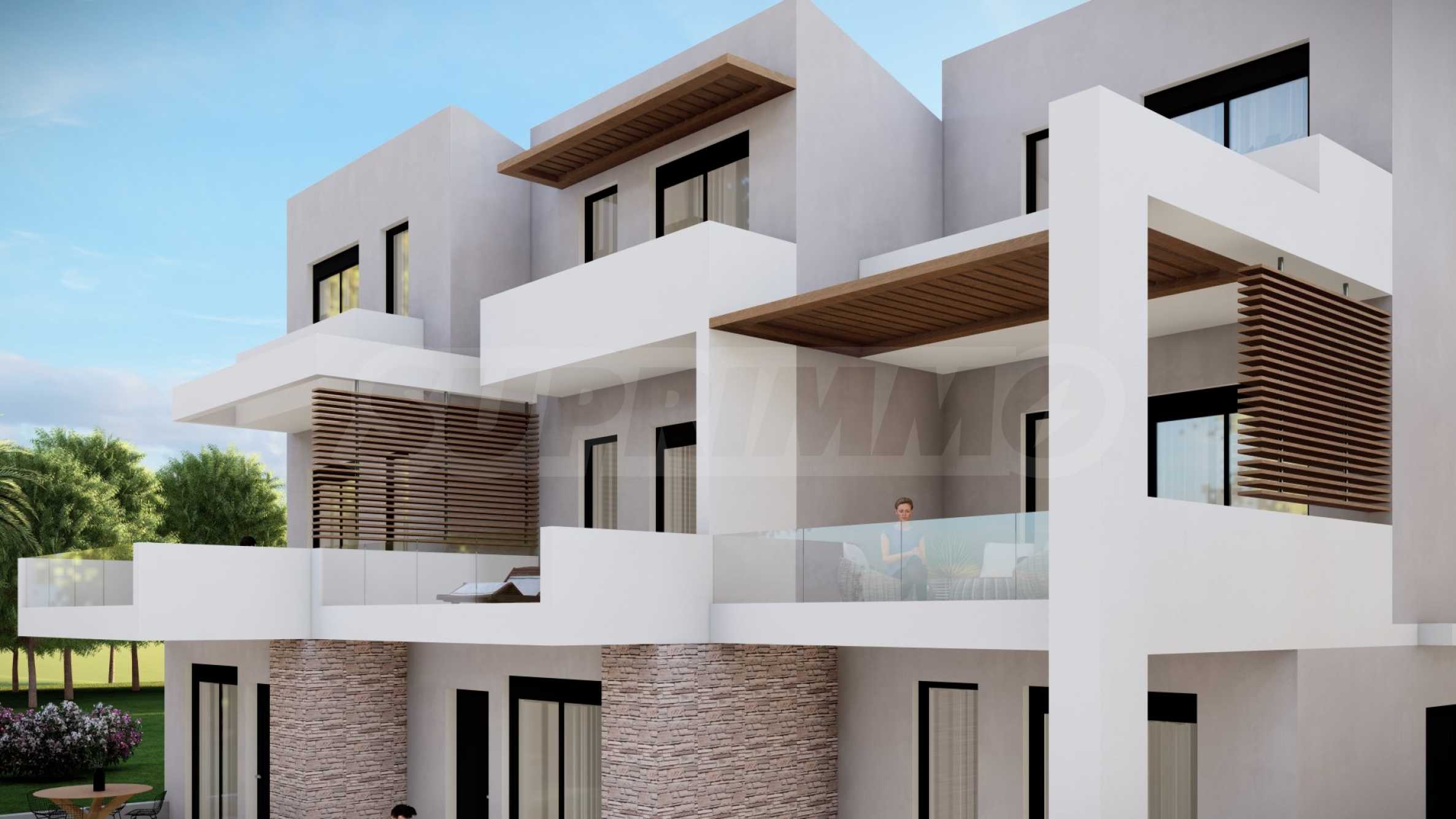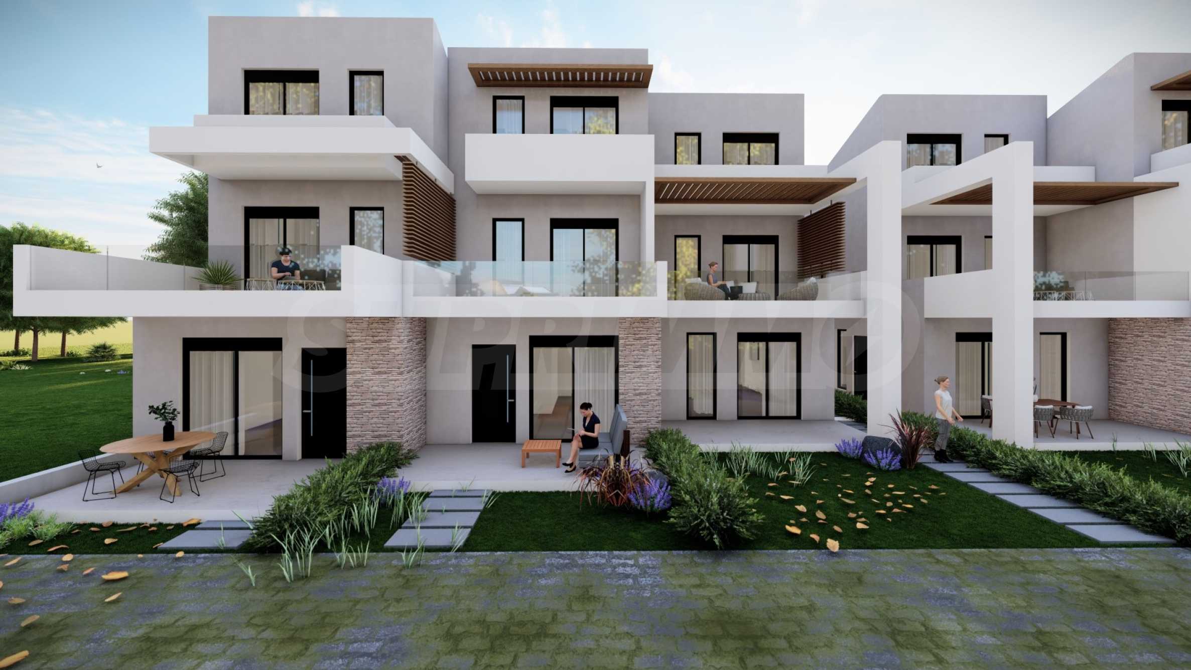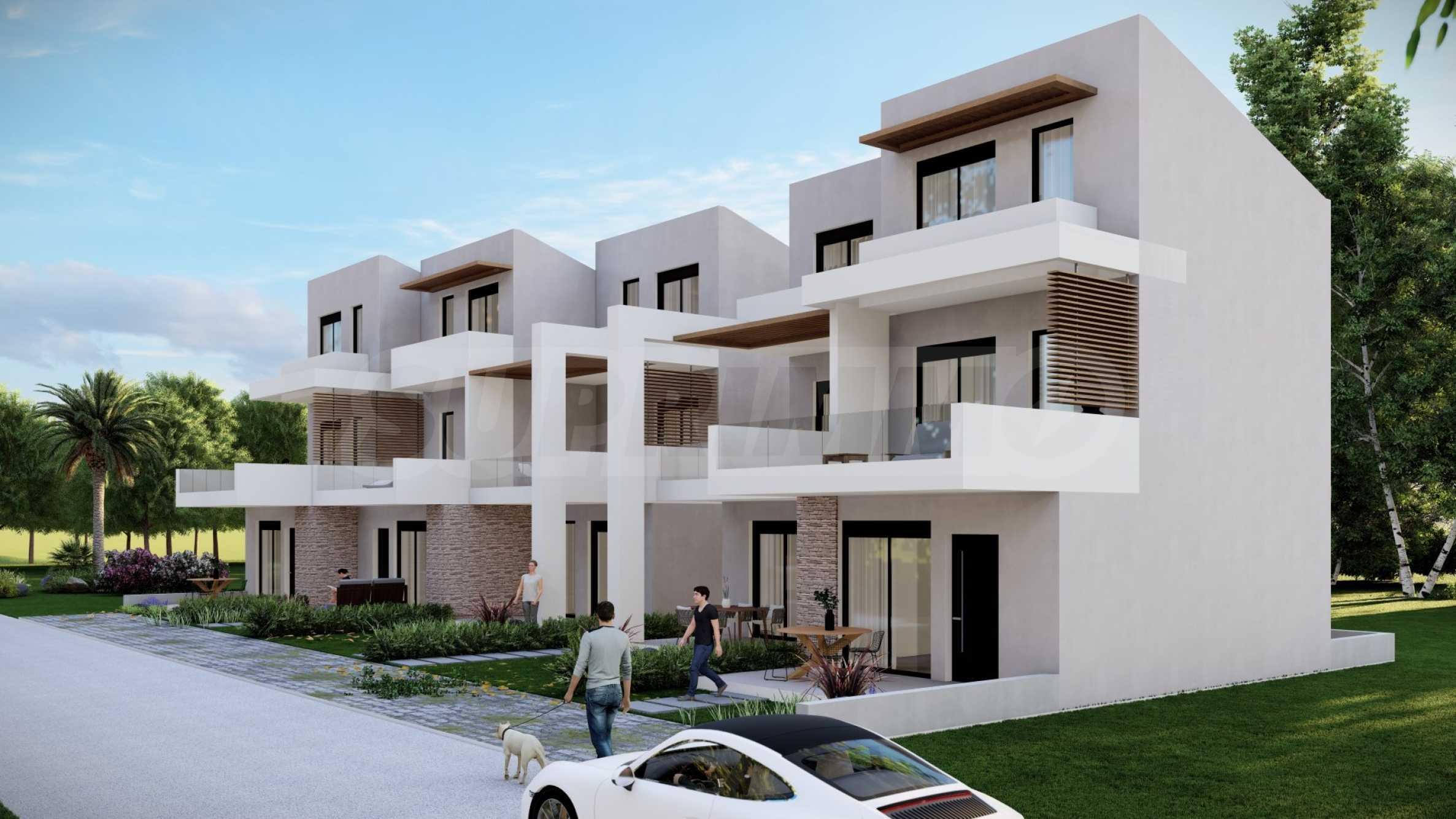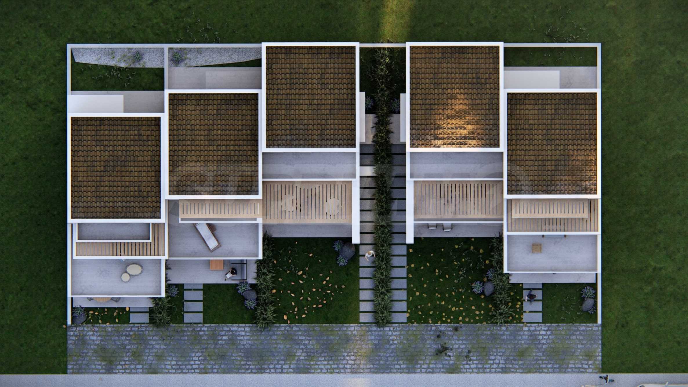 Kompleks składa się z 5 domów, zaprojektowanych z dbałością o szczegóły i z myślą o zapewnieniu wystarczającej przestrzeni do komfortowego życia. Wygląd zewnętrzny opiera się na prostych liniach i białym kolorze, jedyne co kontrastuje to okna, drzwi i bogata architektura podwórek domów. Na terenie kompleksu znajdują się także przestronne balkony, które są idealnym miejscem na relaks w ciągu dnia lub wieczorne spotkania z przyjaciółmi. Układ domów został zaprojektowany tak, aby zapewnić przestrzeń osobistą i prywatność wszystkim mieszkańcom.