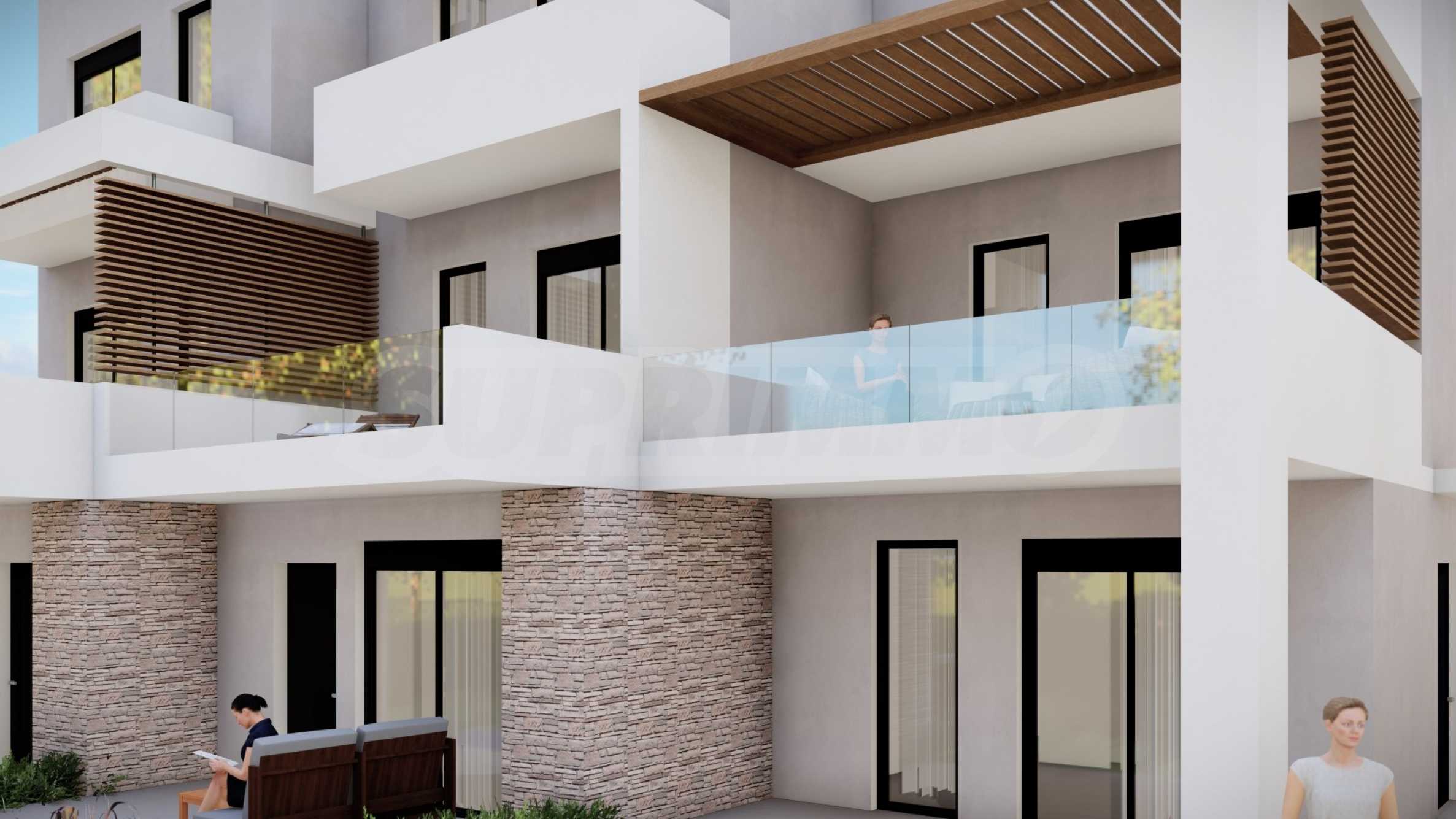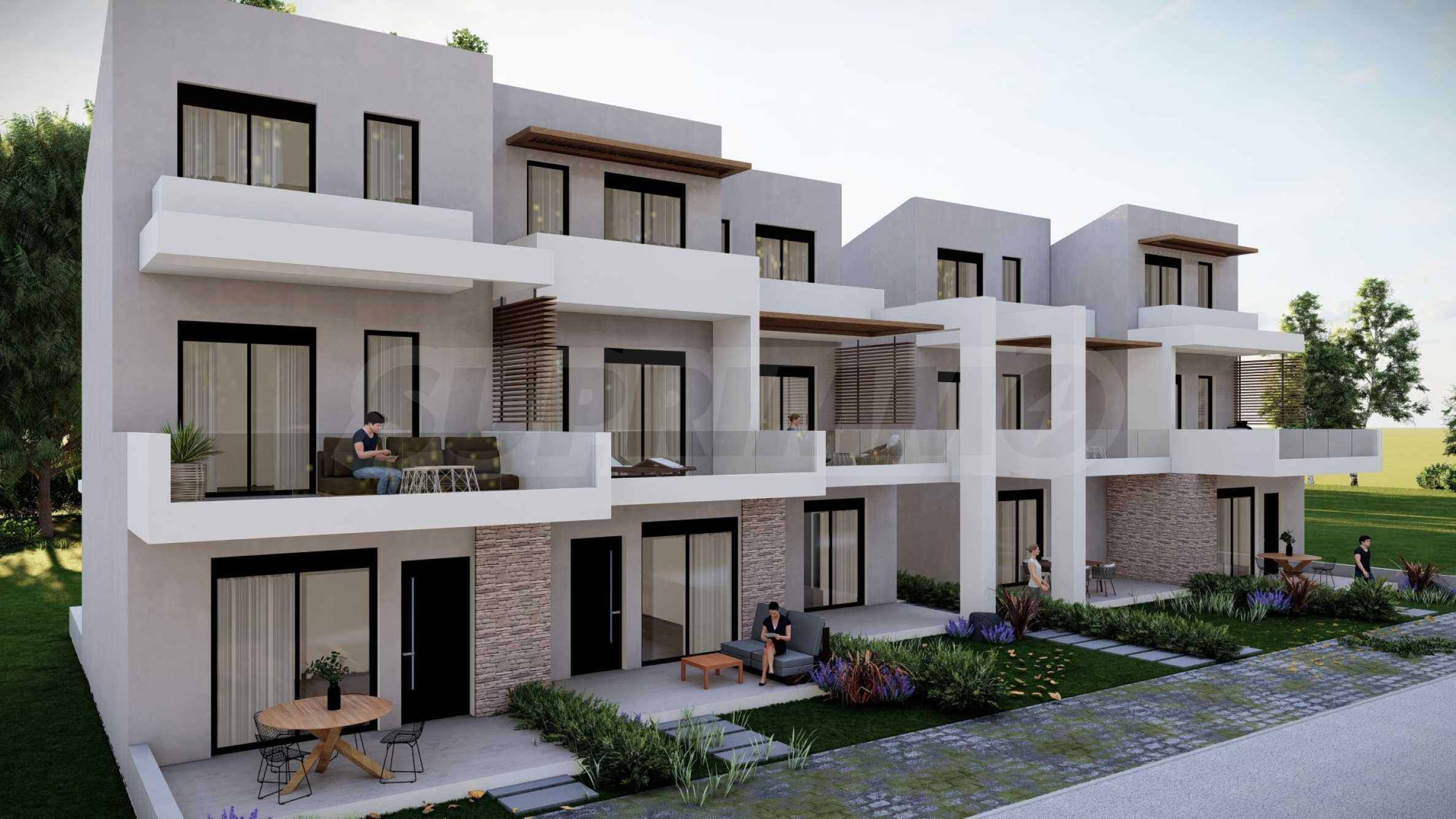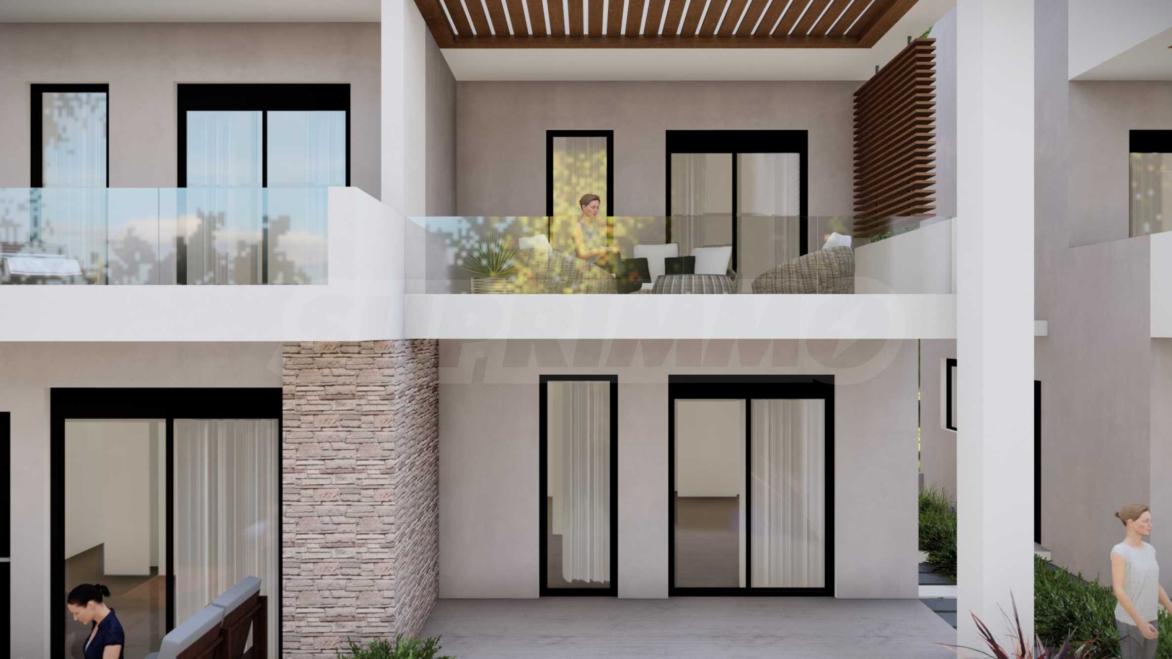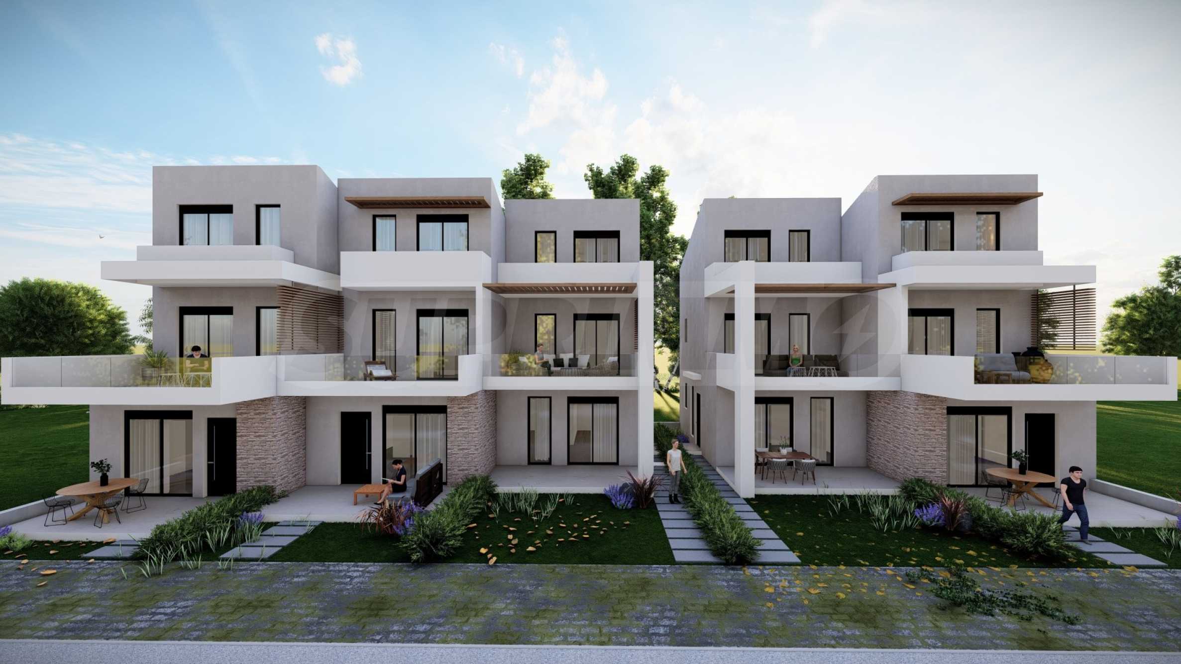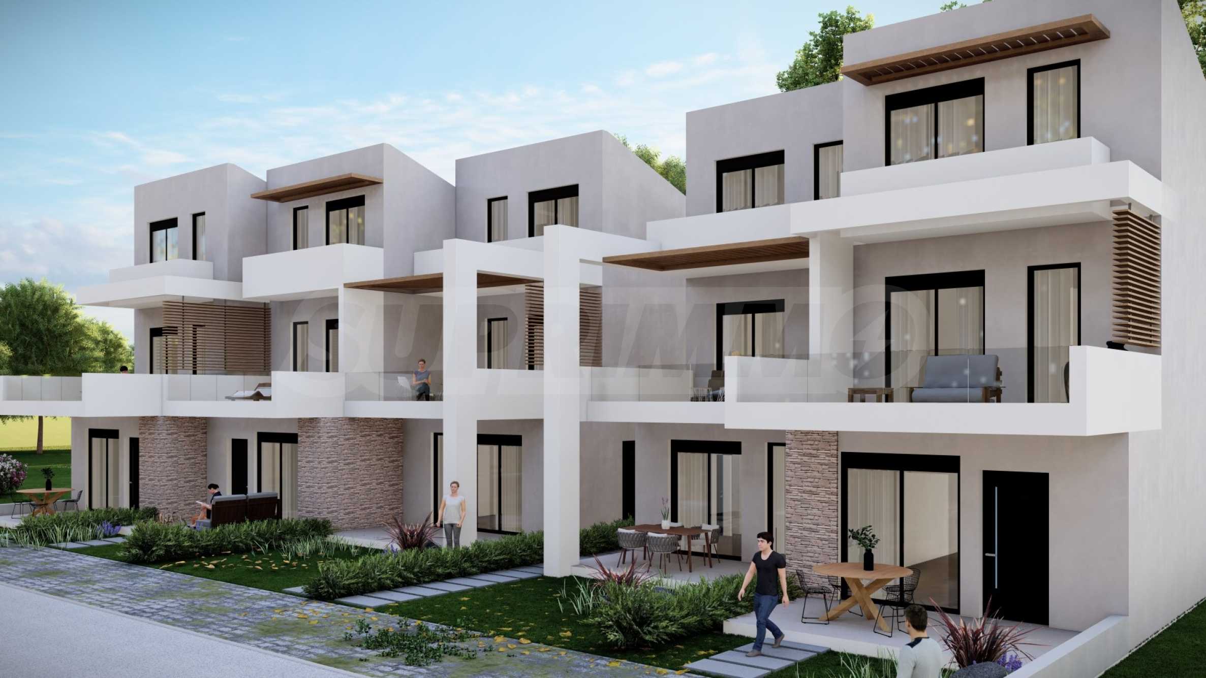 Kompleks składa się z 5 domów, zaprojektowanych z dbałością o szczegóły i z myślą o zapewnieniu wystarczającej przestrzeni do komfortowego życia. Wygląd zewnętrzny opiera się na prostych liniach i białym kolorze, jedyne co kontrastuje to okna, drzwi i bogata architektura podwórek domów. Na terenie kompleksu znajdują się także przestronne balkony, które są idealnym miejscem na relaks w ciągu dnia lub wieczorne spotkania z przyjaciółmi. Układ domów został zaprojektowany tak, aby zapewnić przestrzeń osobistą i prywatność wszystkim mieszkańcom.