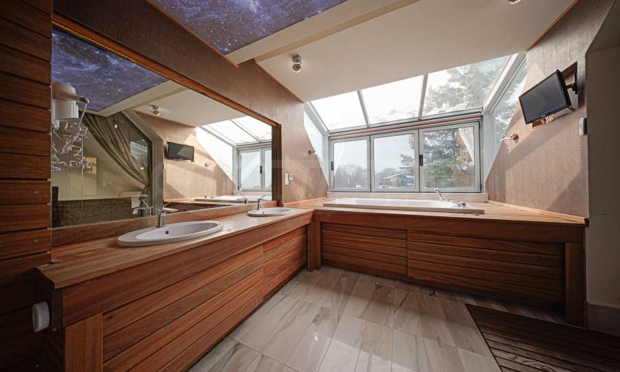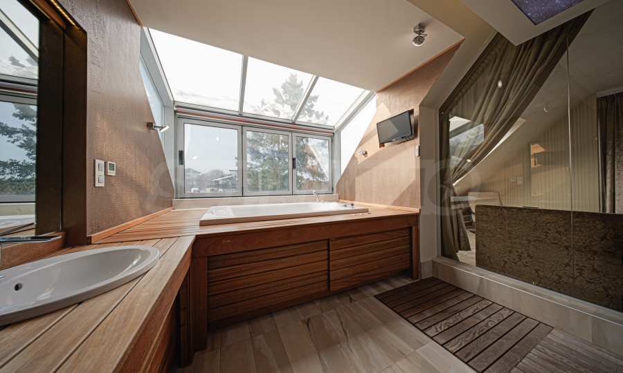 - główna łazienka z podwójną wanną, oddzielnym prysznicem i toaletą;